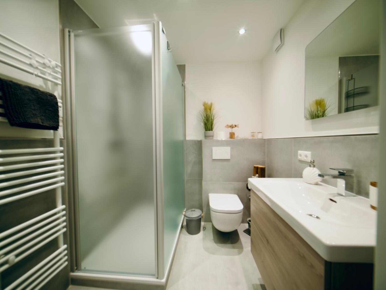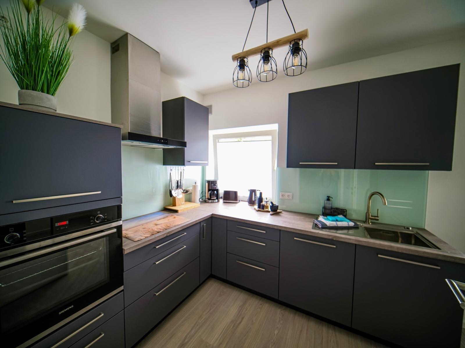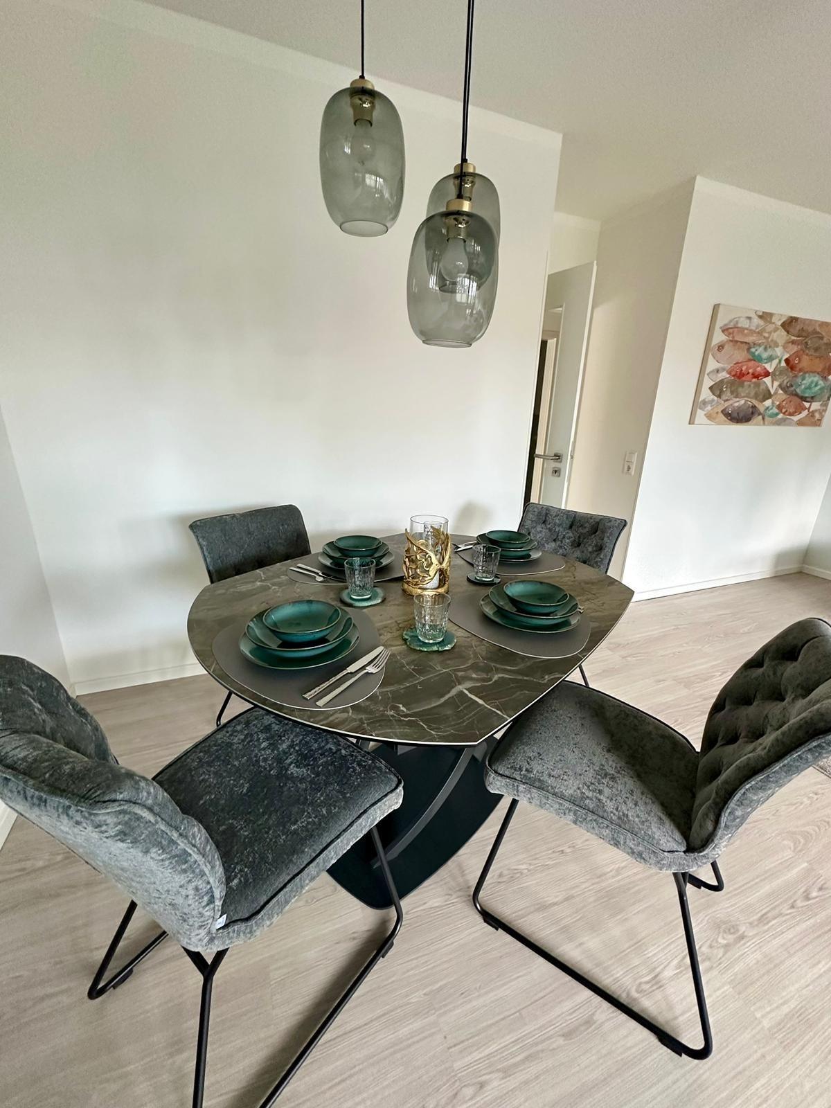 Die 3-Zimmer-Ferienwohnung ist Hochparterre und bietet Platz für max. 5 Personen. Die Wohnfläche der ca. 85 m² großen Unterkunft verteilt sich auf ein Wohnzimmer (WLAN und Sat-TV vorhanden) sowie auf zwei Schlafzimmer, einer separaten Küche, dem Badezimmer und einem Gäste-WC. Das Wohn- / Esszimmer ist mit einer großen gemütlichen Sitzecke und mit einem Esstisch versehen, von dort aus gelangt man auch in den Wintergarten, mit einem Bereich zum Relaxen und dem Tischkicker für tolle Duelle. Die separate Küche ist u.a. mit einem 4-er Induktionsherd, Backofen, Kühlschrank , Mikrowelle, Toaster und Kaffeemaschine ausgestattet. Auch dort ist noch eine kleine Sitzgelegenheit. Das erste Schlafzimmer ist mit einem Doppelbett 180 x 200 cm sowie Kleiderschrank versehen, das zweite Schlafzimmer hat ein 140 x 200 cm Bett und auch einen Kleiderschrank. Von beiden Schlafzimmern gelangt man auf den Balkon, wo auch gegrillt werden kann. Die Fenster sind mit Plissees versehen und in den Schlafzimmern sind zusätzlich mit Rollläden verdunkelbar. Das Badezimmer verfügt über Dusche, Waschbecken und WC. Das Gästebad über WC und Waschbecken.