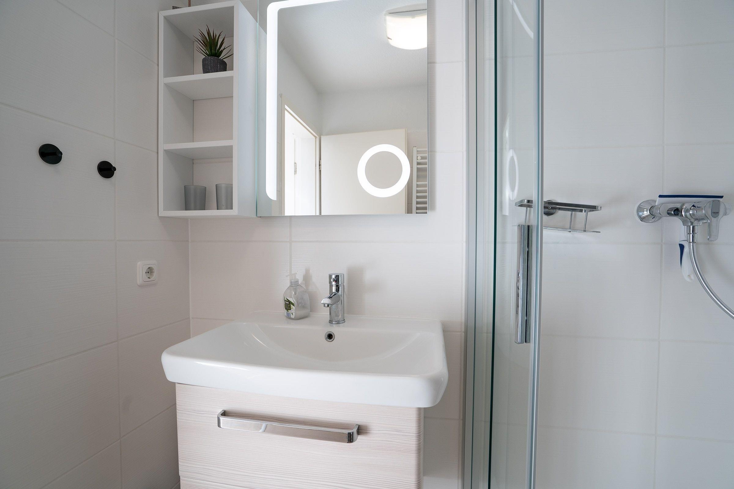 Im hellen Wohnbereich lädt das gemütliche Sofa zu Fernsehstunden vor dem UHD-Smart-TV ein. Auch Musikfans können sich freuen, denn eine Stereoanlage gehört ebenfalls zur Grundausstattung. Das Sofa bietet bei Bedarf ausreichend Platz (160x200 cm) als 3. Schlafmöglichkeit. Tolle Gerichte lassen sich in der offen gestalteten Küche zubereiten, die mit allen Annehmlichkeiten ausgestattet ist. Für den besonderen Kaffeegenuss steht sogar eine Nespresso-Maschine bereit. Der gleich angrenzende Esstisch bietet sich perfekt an für gemeinsames Essen, Spiele-Abende oder einfach nur zum Klönen. Vom Wohnbereich aus gelangt man auf die möblierte Südwest-Terrasse mit Blick auf den schönen Yachthafen. Hier können Sie ungestörte Urlaubsstunden verbringen, sonnenbaden und entspannen. Im separaten Schlafzimmer mit Komfort-Boxspring-Bett (2x90x200 cm) lässt es sich hervorragend schlafen und Sie können ausgeruht und frisch in den neuen Tag starten. Das moderne Duschbad ist mit praktischer Handtuchheizung ausgestattet. Ein WLAN-Anschluss ist inklusive.