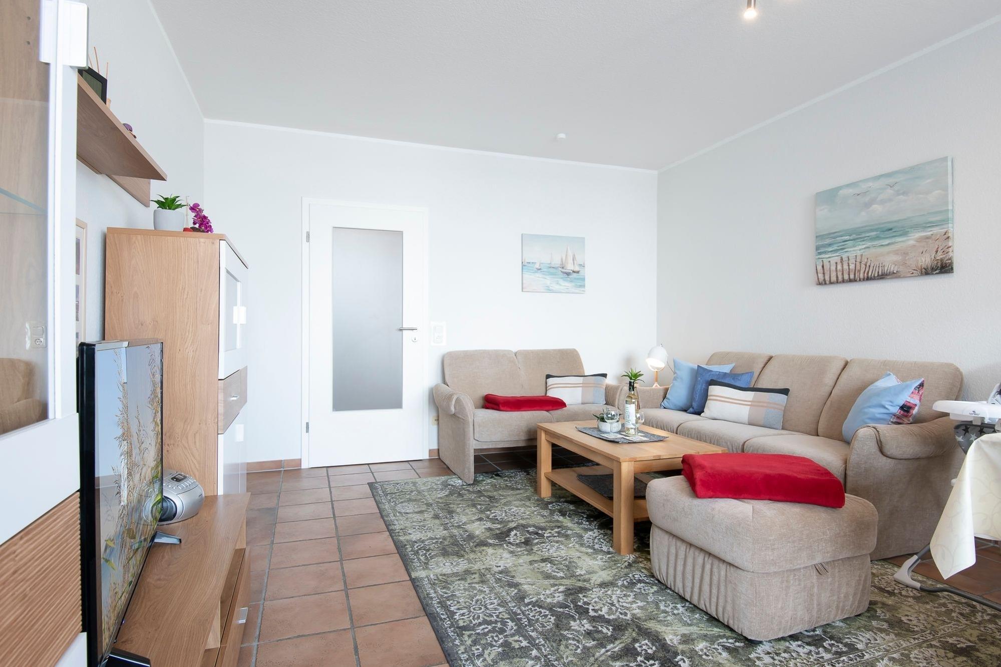Die Wohnung ist modern und geschmackvoll eingerichtet. In der komfortablen Küche bleiben keine Wünsche offen. Von Spülmaschine, Eierkocher und Toast-/Pizzaofen bis hin zum Toaster ist alles für Ihr perfektes Dinner vorhanden. Im Wohnzimmer erwartet Sie eine gemütliche Sofaecke mit modernem Flachbildfernseher. Im angrenzenden Essbereich trifft sich die ganze Familie um schöne Abende zu verbringen. Im hellen Duschbad wird Ihnen an nichts fehlen. Vom Balkon können Sie die Boote auf der Ostsee mit einem Fernglas beobachten. Nach einem erlebnisreichen Urlaubstag sorgt das Elternschlafzimmer mit einem Doppelbett (2 Matratzen à 90x190 cm), sowie ein Etagenbett (90x200 cm) in einem separatem Schlafzimmer für Entspannung und Ruhe.