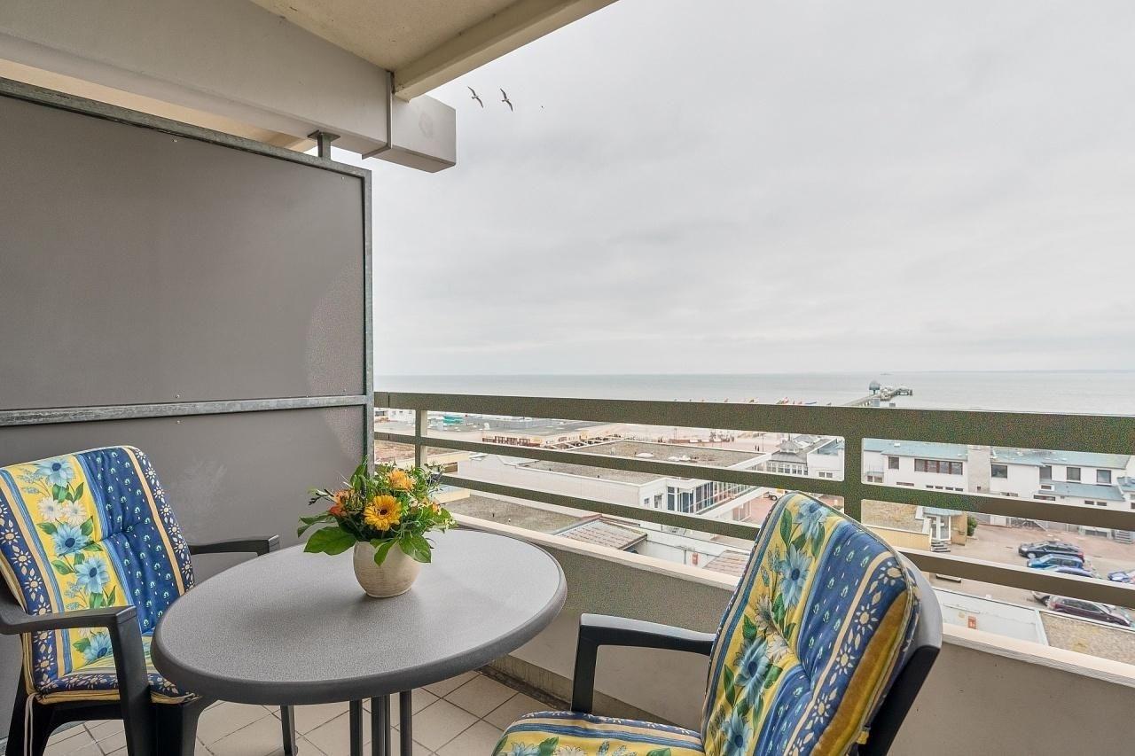 Das ist ein Blick! Die Ostsee liegt Ihnen zu Füßen. Der große, Richtung Seebrücke gerichtete, Balkon mit Gartenmöbeln lädt zum Verweilen in der Sonne ein. Verfolgen Sie die Schiffe am Horizont - Fernglas nicht vergessen!