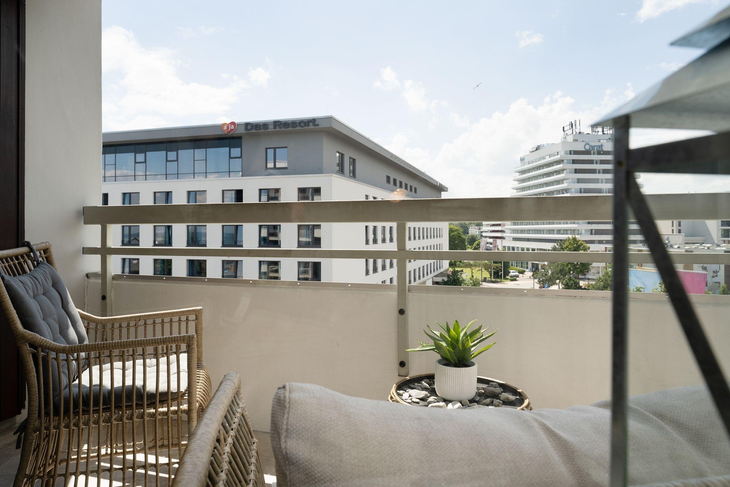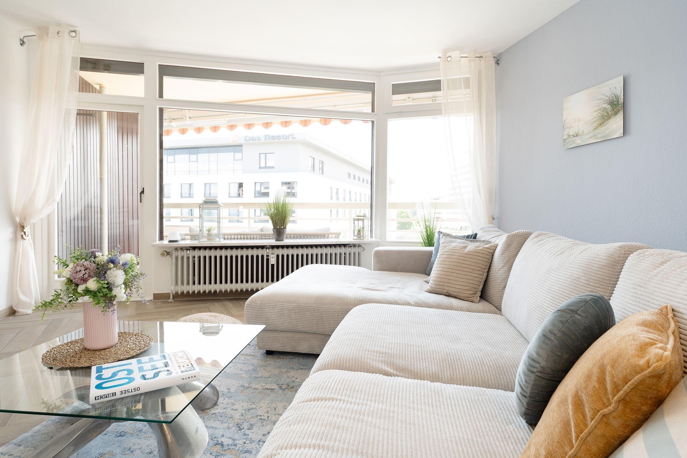 Moderne Ferienwohnung mit Balkon und seitlichem Meerblick im Zentrum von Grömitz.