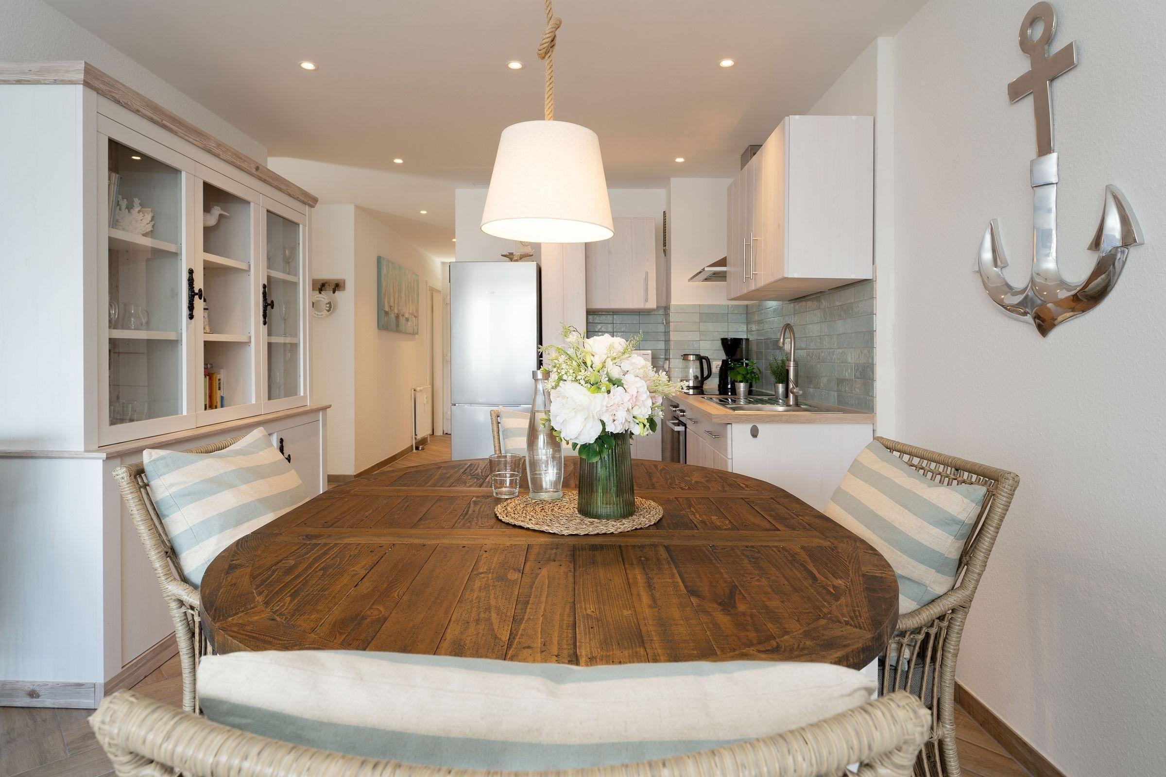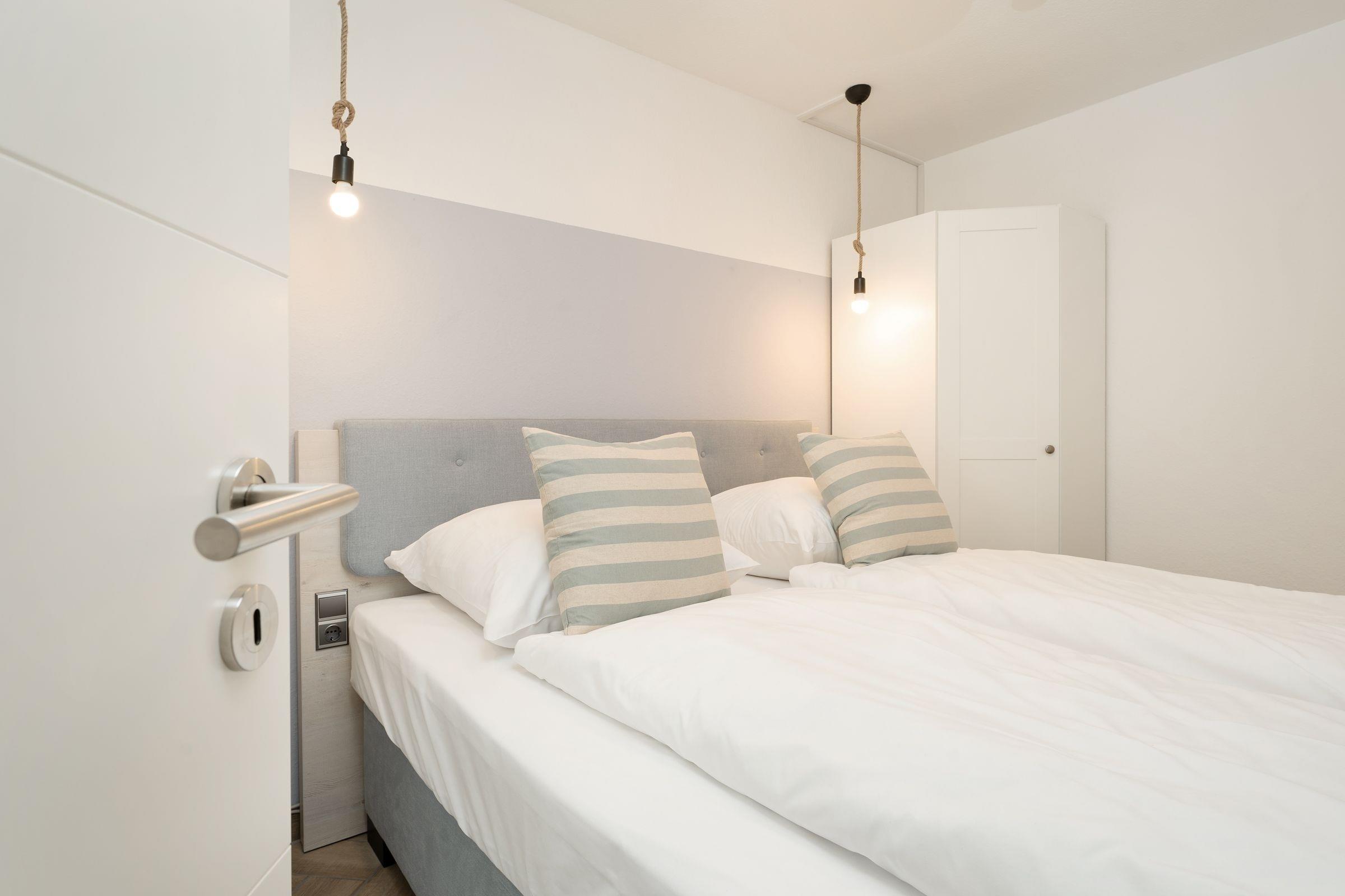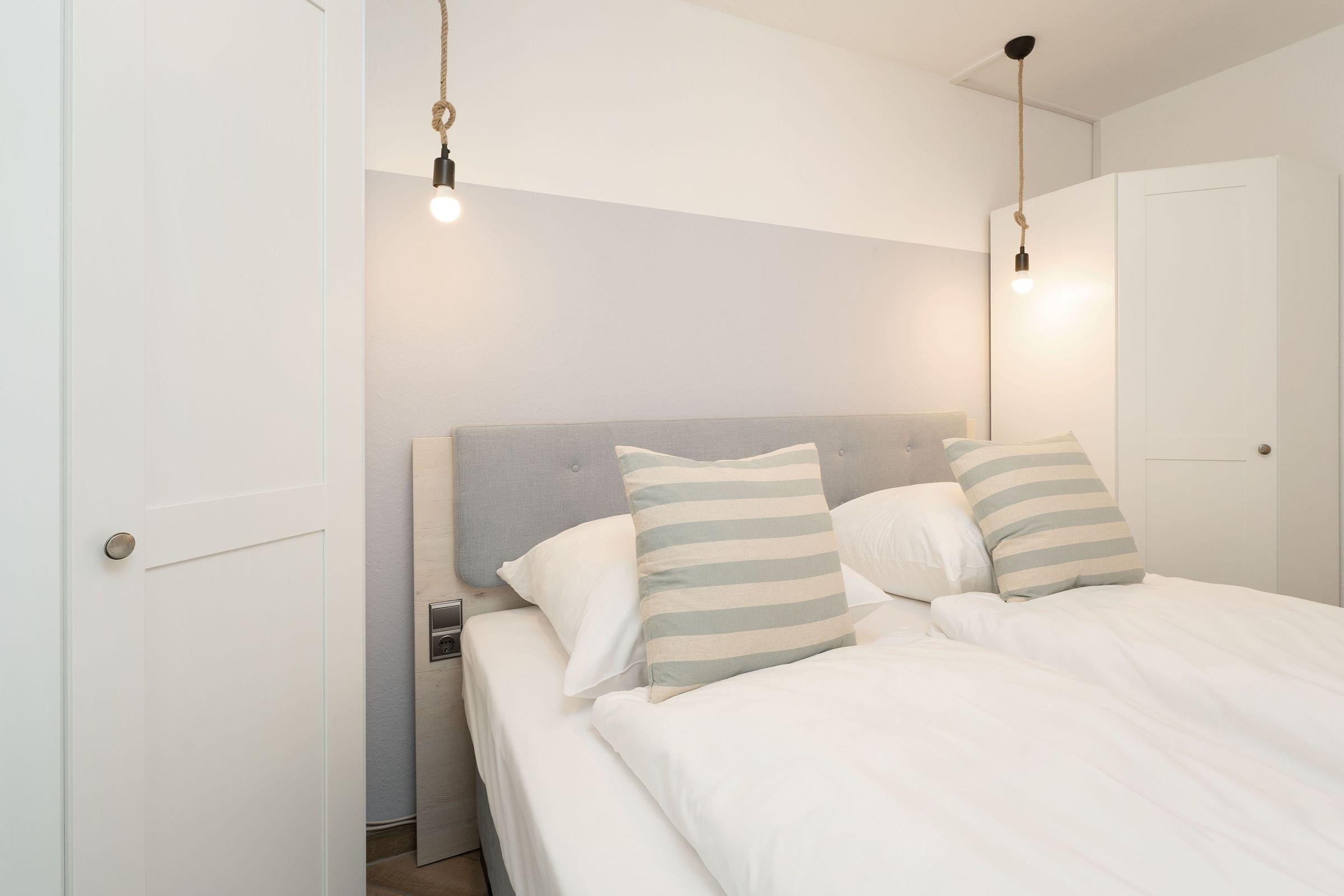 Ihr Traumurlaub kann beginnen: Genießen Sie auf dem möblierten Balkon zahlreiche Sonnenstunden mit Blick auf die Ostsee. Oder machen Sie es sich auf der kuscheligen Sofalandschaft gemütlich. Auch die Essecke lädt zum Verweilen ein, in der offenen Küche finden Sie Annehmlichkeiten wie Senseo-Espressomaschine, Airfryer und Geschirrspüler, die eine Selbstverpflegung angenehm gestalten. Das Schlafzimmer mit einem Doppelbett (2x 90x200 cm) sowie das zweite Zimmer mit Etagenbett (1x 140x200 und 1x 90x200 cm) versprechen traumhafte Nächte. Alle Räume lassen sich durch elektrische Außenjalousien angenehm abdunkeln. Das moderne Duschbad ist hell gefliest.