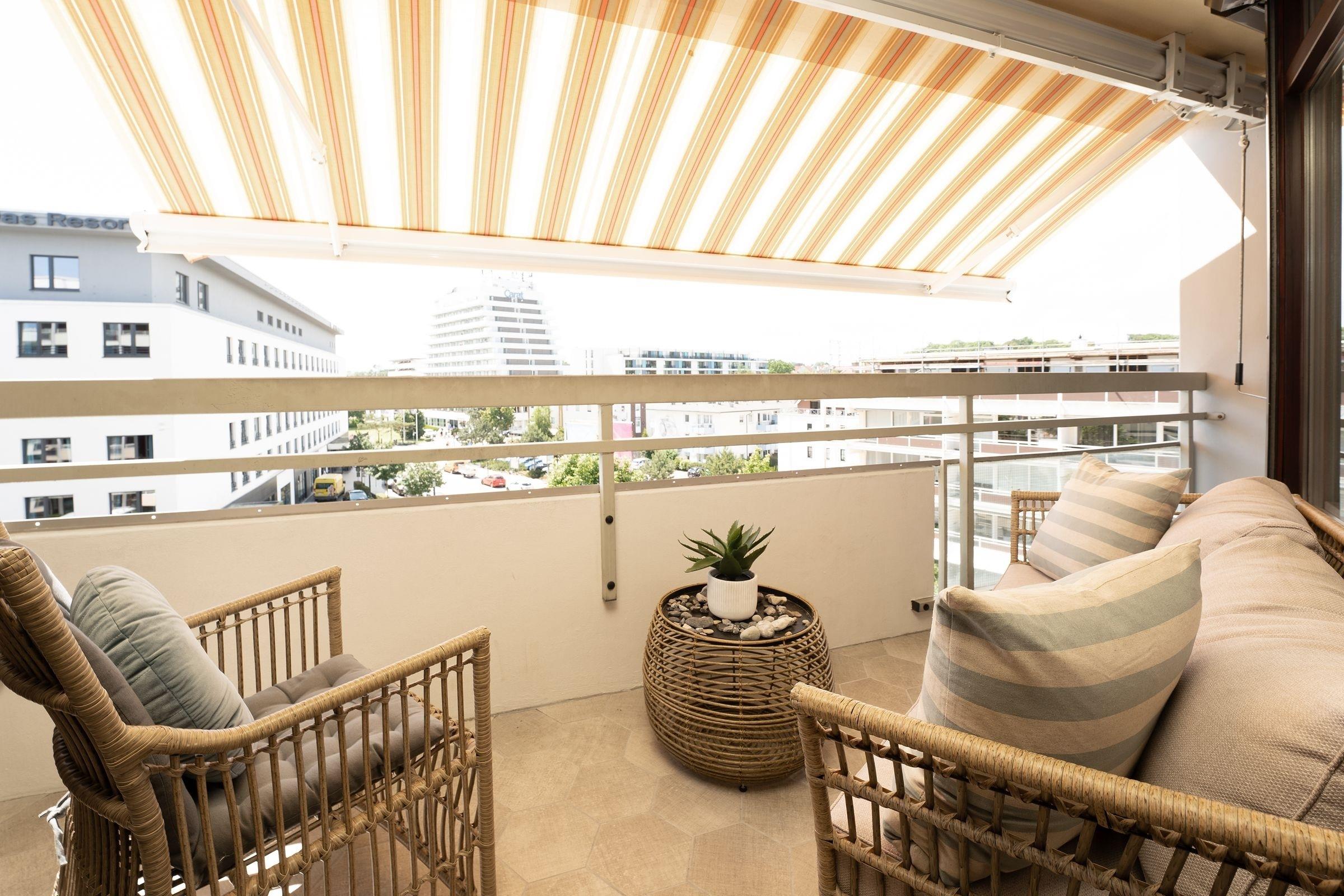 Von Ihrem Balkon, mit einer Markise ausgestattet, haben sie einen Teilmeerblick.