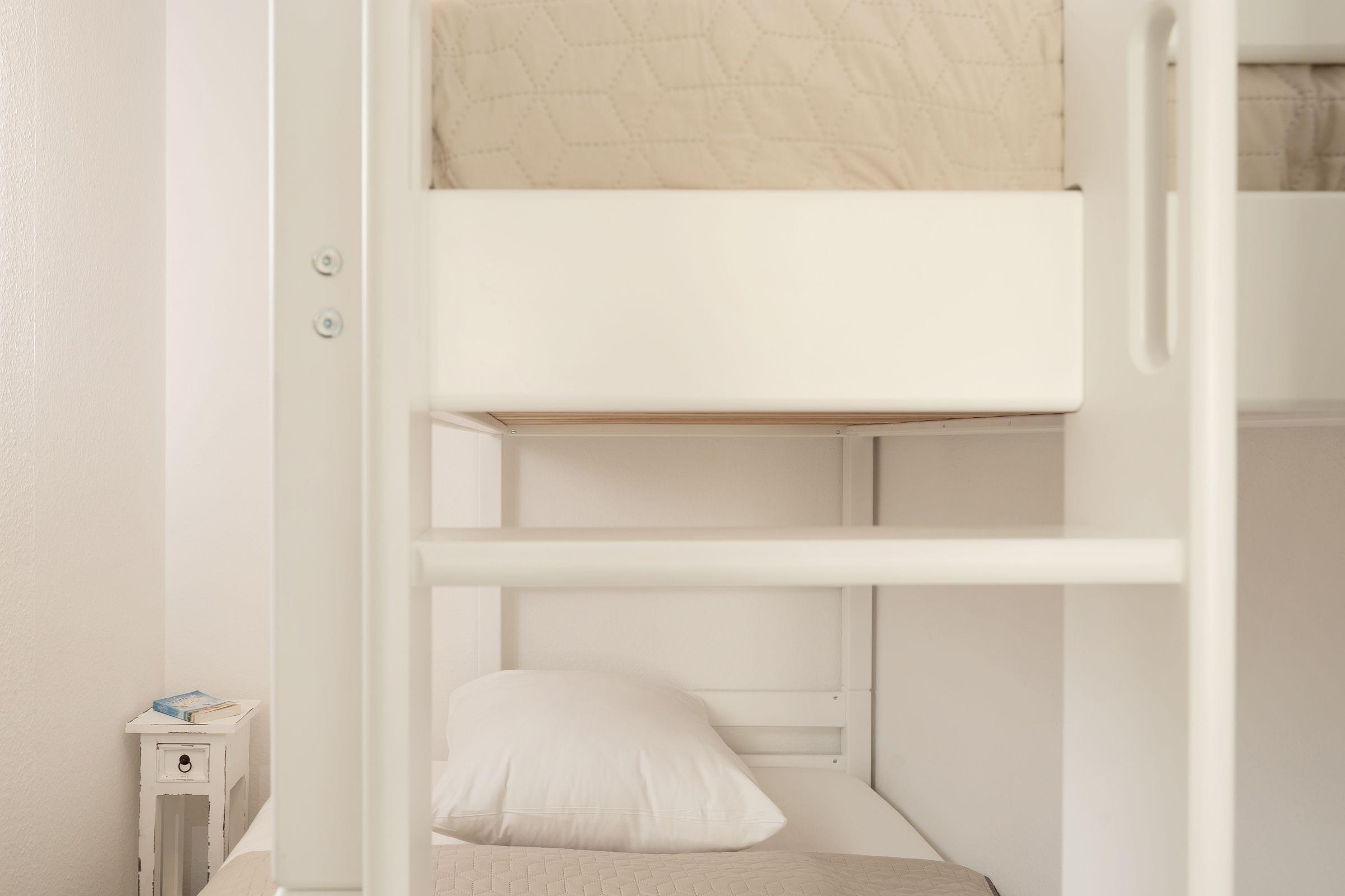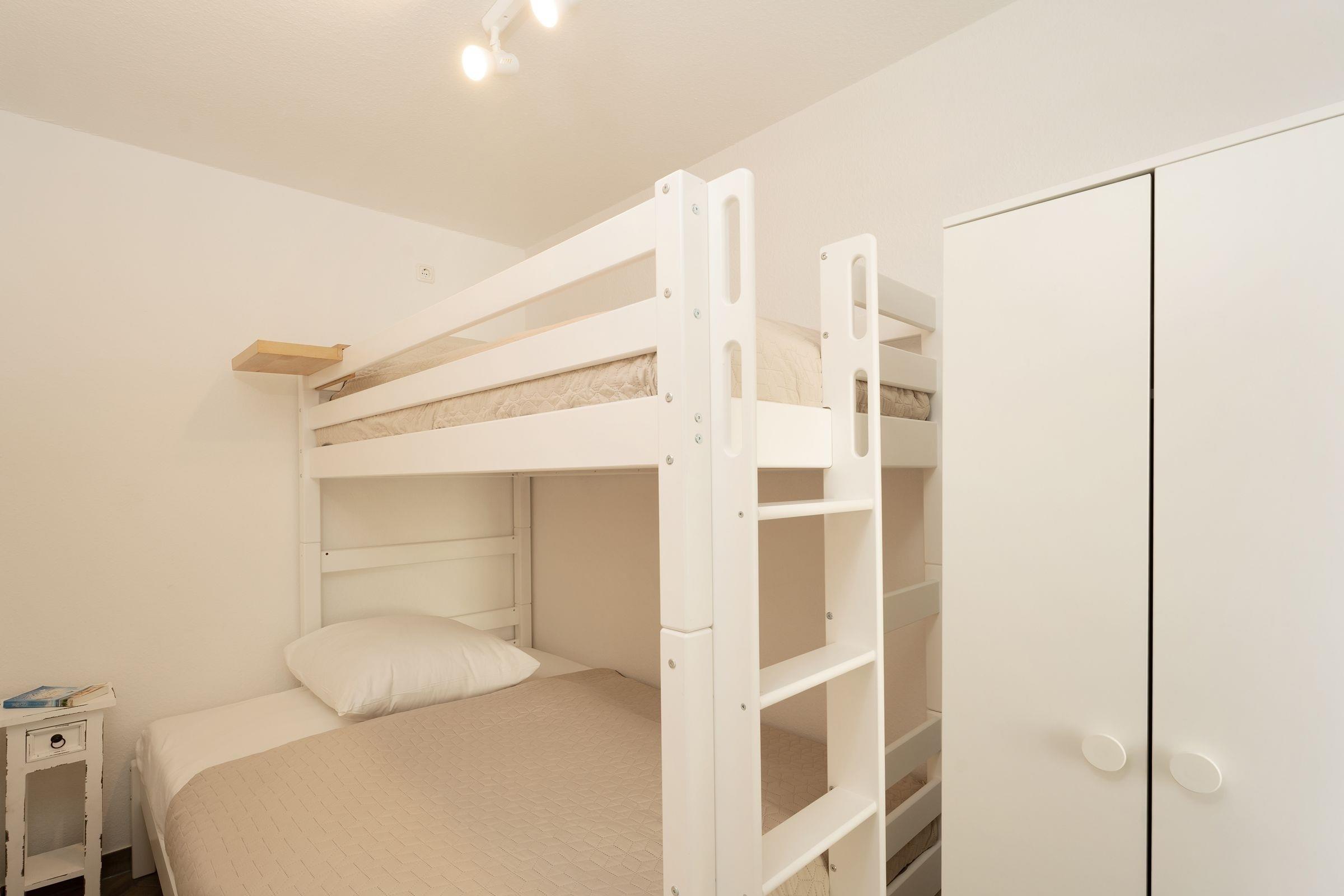 Schlafzimmer 2: 1 Etagenbett (1x 90x200 cm und 1x 140x200 cm), Verdunklungsmöglichkeit: Außenjalousien, TV