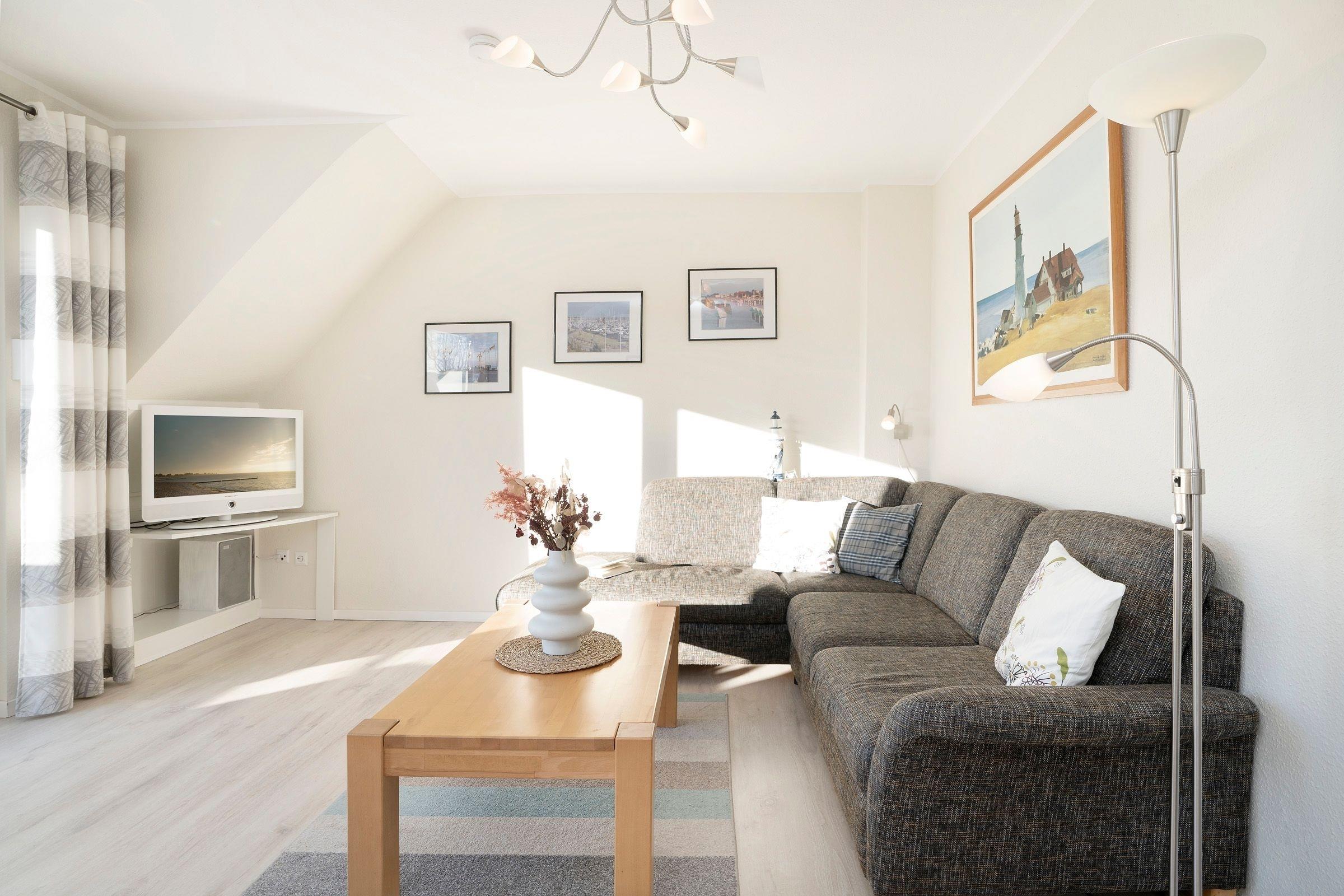 Vorbei an der offenen Küchenzeile gelangen Sie in das freundliche Wohn- und Esszimmer, eine herrlich große Fensterfront und der direkte Balkonzugang sorgen für einen lichtdurchfluteten Raum. Der integrierte Essbereich bietet Platz für gesellige Mahlzeiten. Machen Sie es sich auf dem großzügigen Ecksofa nach einem schönen Strandtag bequem und entspannen auch an Regentagen bei Unterhaltung vom modernen Flachbildfernseher oder genießen Sie die ersten oder die letzten Sonnenstrahlen auf Ihrem möblierten Balkon mit Südostausrichtung und schnuppern die wunderbare Ostseeluft, hier ist pures Urlaubsgefühl garantiert!
