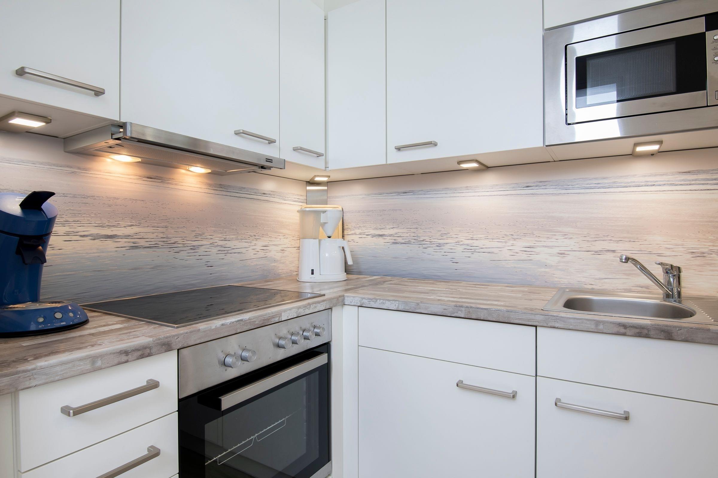 Wir haben eine gut ausgestattete und modern eingerichtete Wohnung vorgefunden mit direktem Blick auf die Ostsee. Die Küche verfügt über viel Inventar. Die Abstellkammer bietet genug Platz für Schuhe, Koffer etc. Praktisch ist auch die dazugehörige Einzelgarage und der Fahrrad-Stellplatz.