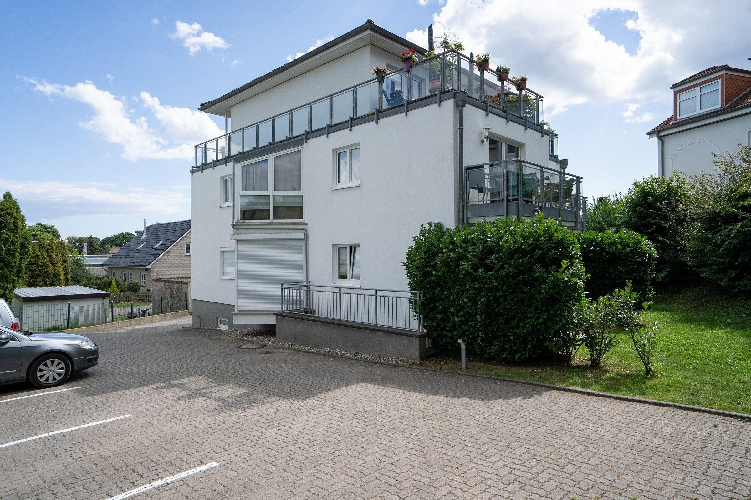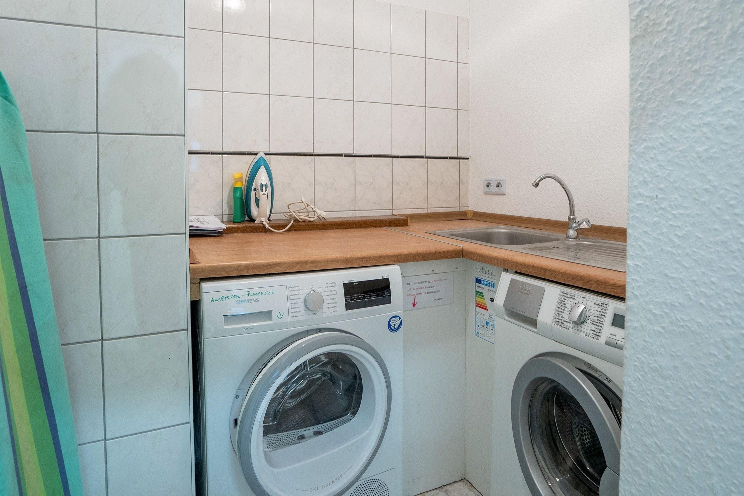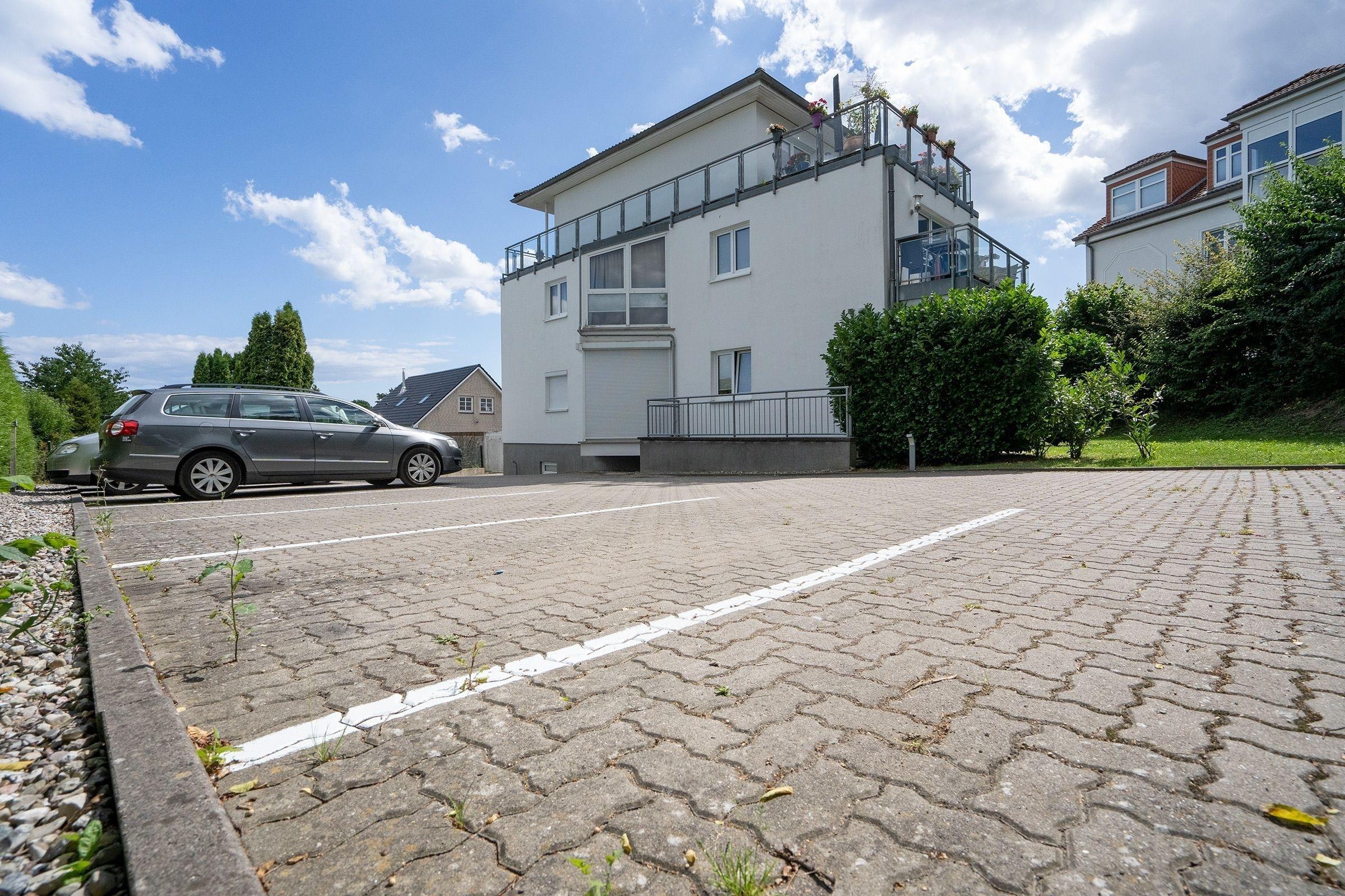 Ein PKW-Außenstellplatz direkt vor der Haustür ist für Sie reserviert. Für mitgebrachte Fahrräder ist ein gemeinschaftlicher Fahrradkeller vorgesehen. Wichtig: Der Fahrradkeller kann nur über eine Treppe (10 Stufen) erreicht werden. Im Keller befindet sich auch ein Gemeinschaftswaschraum mit Waschmaschine und Trockner.