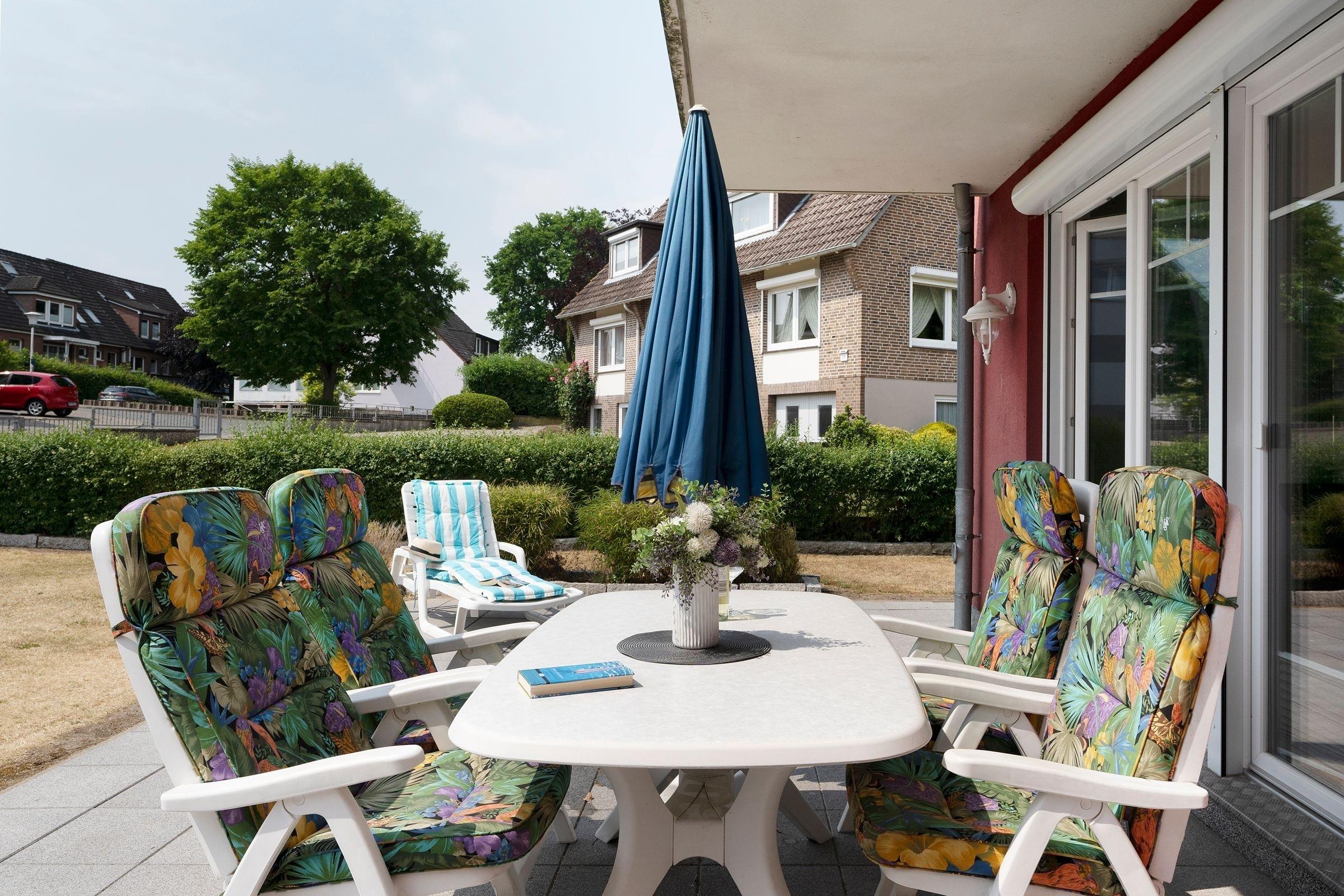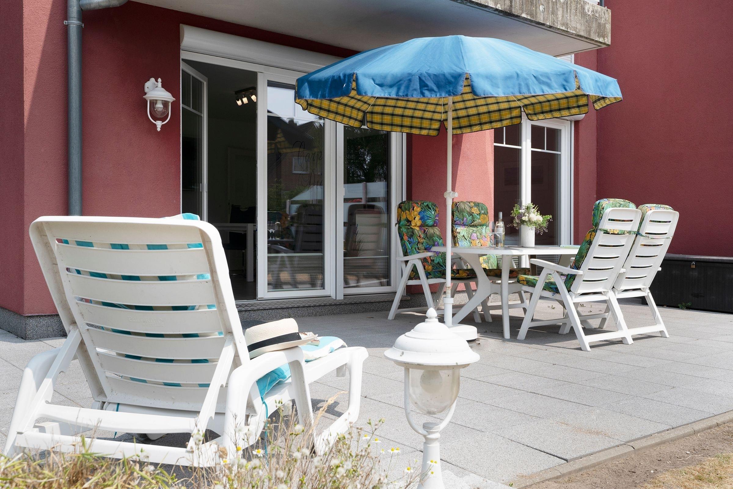 Moderne Erdgeschoss-Ferienwohnung in Grömitz mit Terrasse, Fußbodenheizung und WLAN, nahe dem Strand und Ortskern.