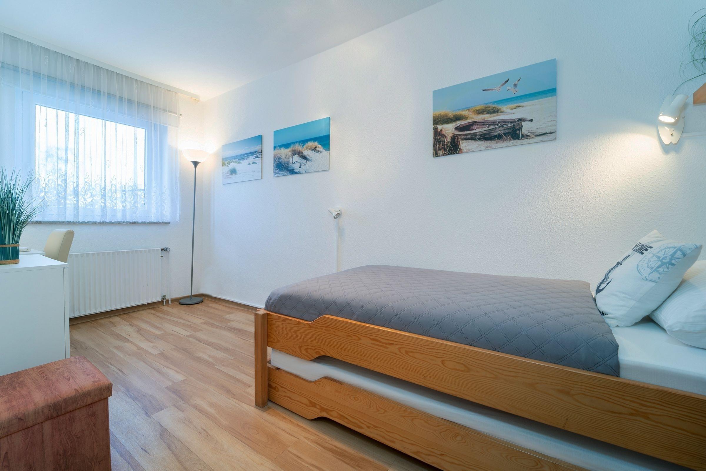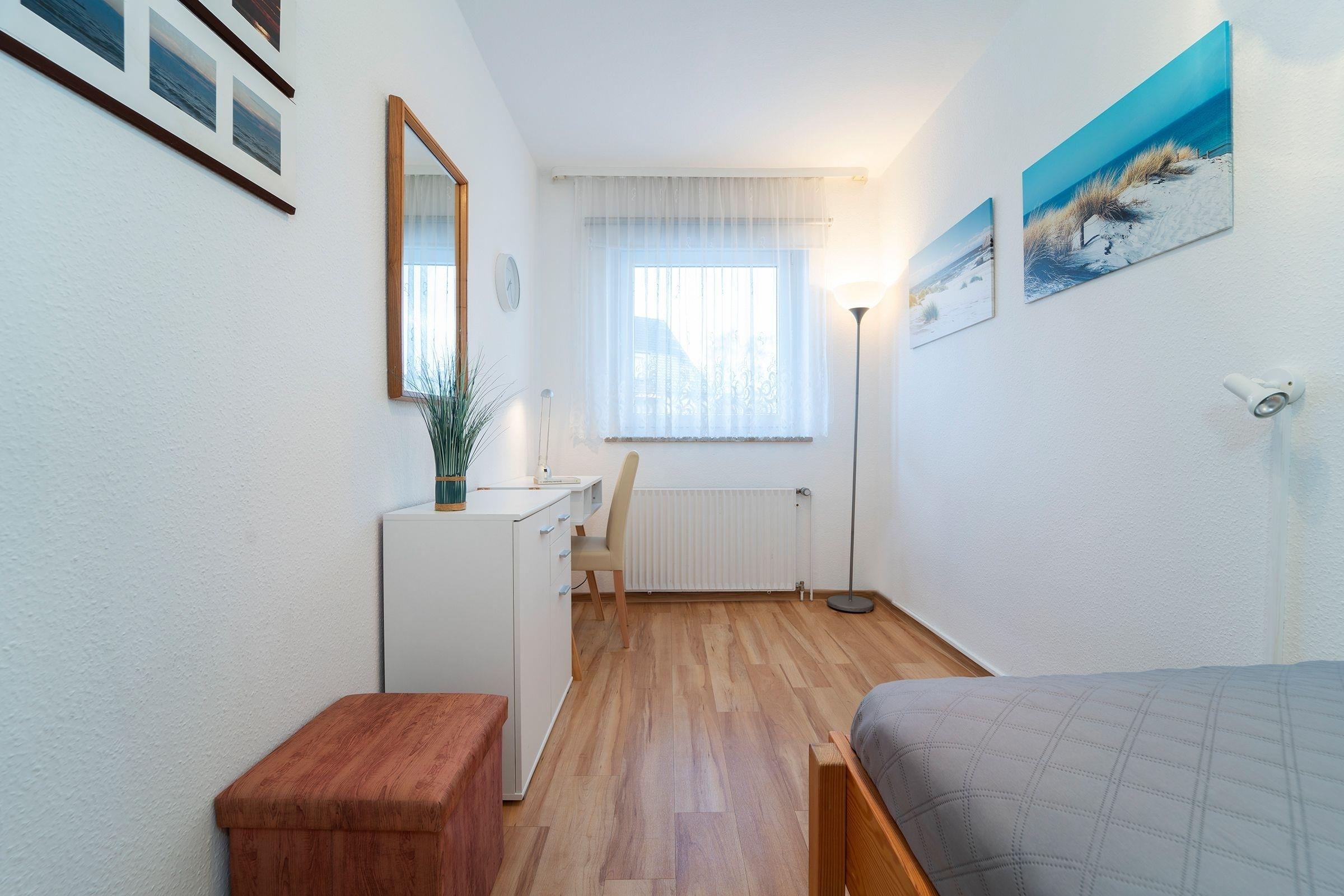 Schlafzimmer 2: 2 Einzelbetten (2x 90x200 cm), Verdunkelungsmöglichkeit (Rollo)