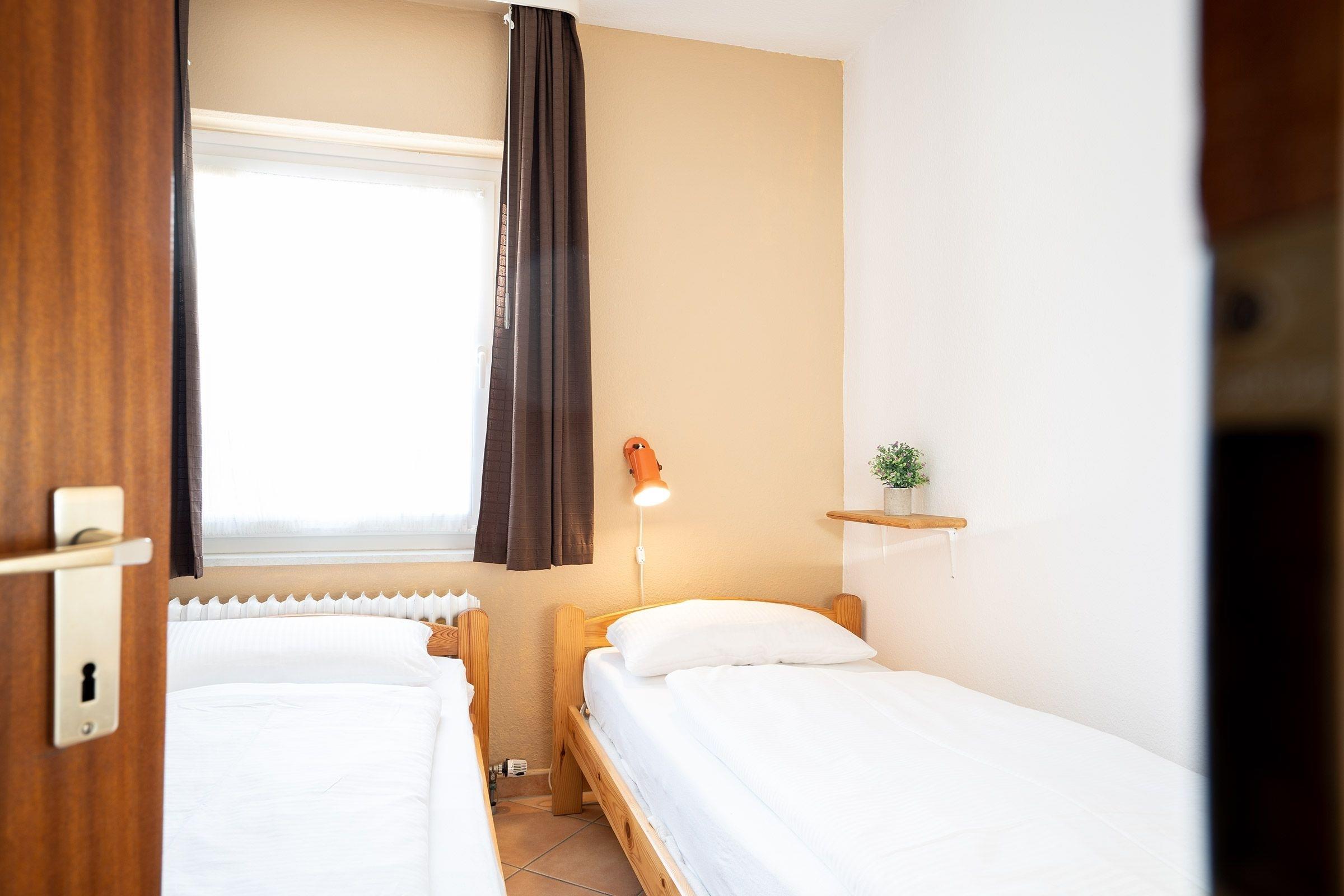 Schlafzimmer 2: 2 Einzelbetten (2x 90x200 cm), Verdunkelung: Vorhänge