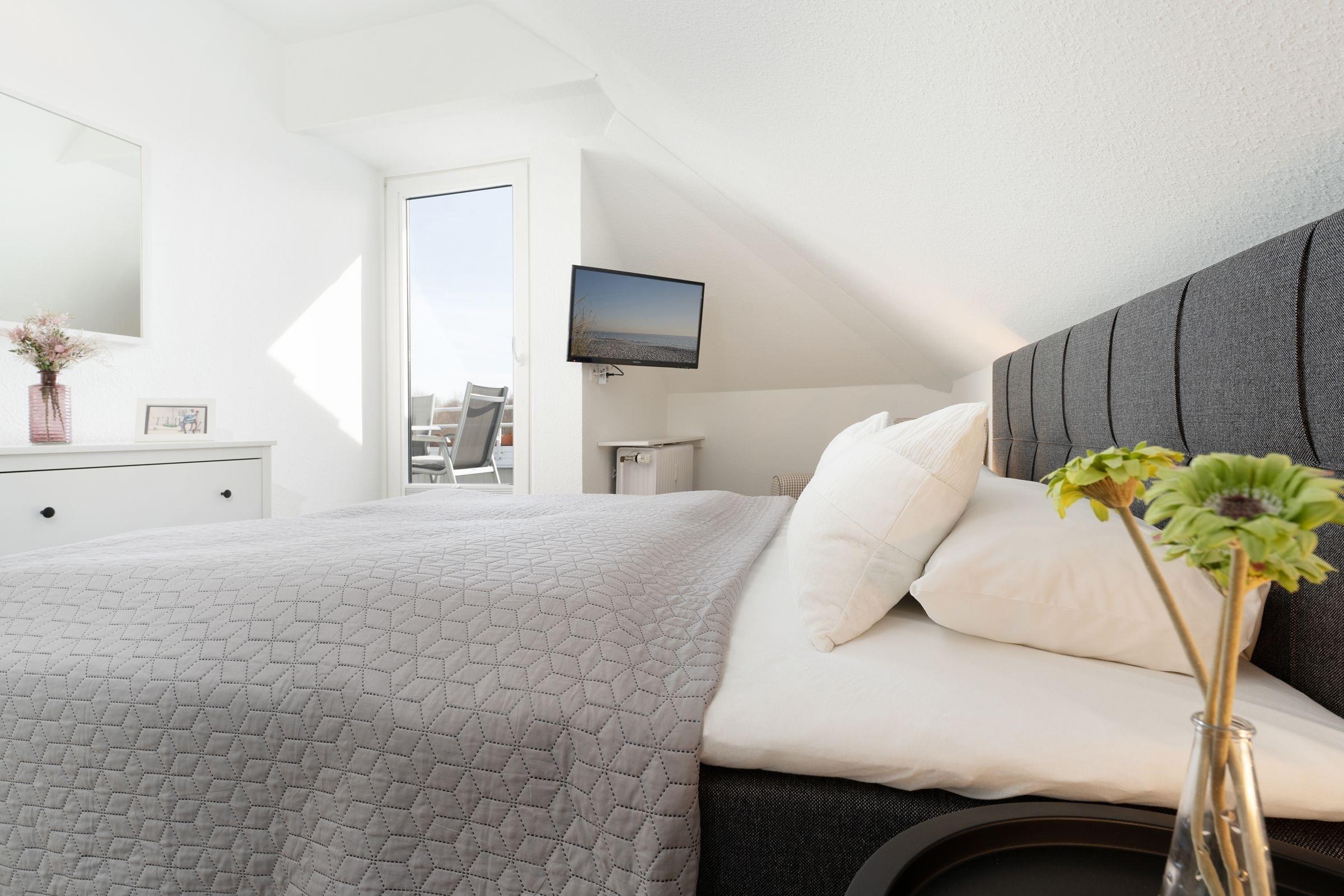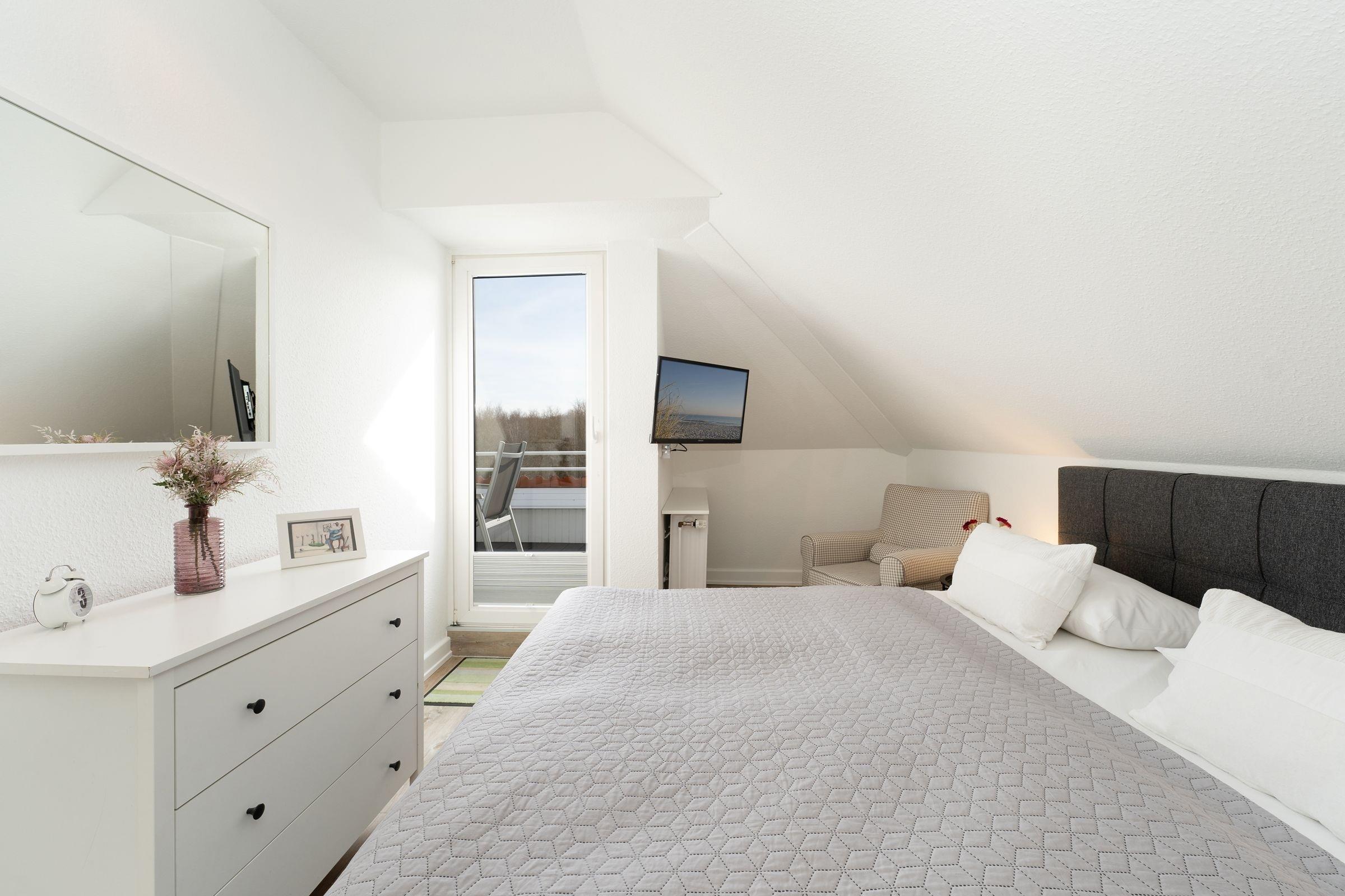 Schlafzimmer: 1 Doppelbett (180x200 cm), TV