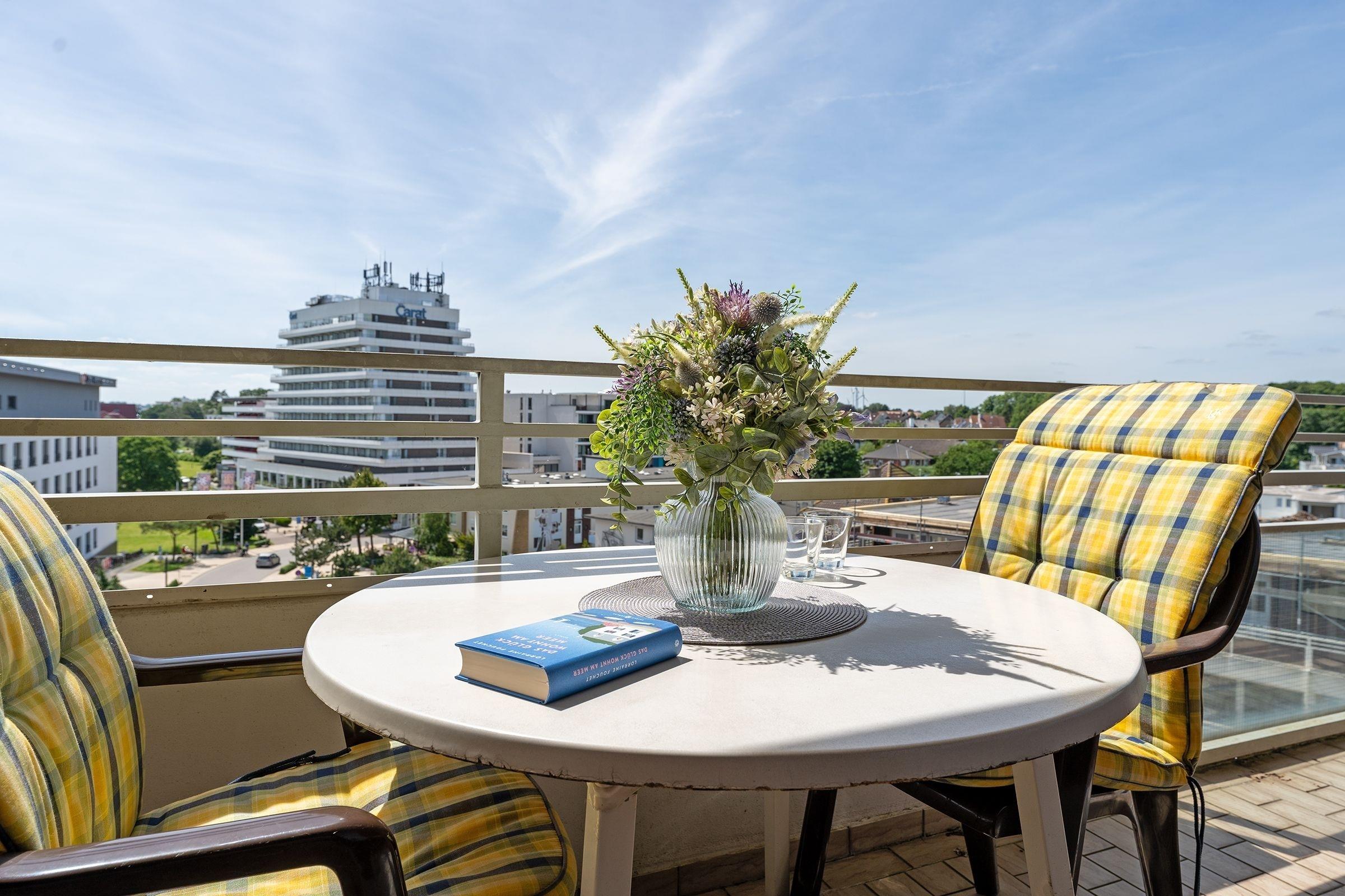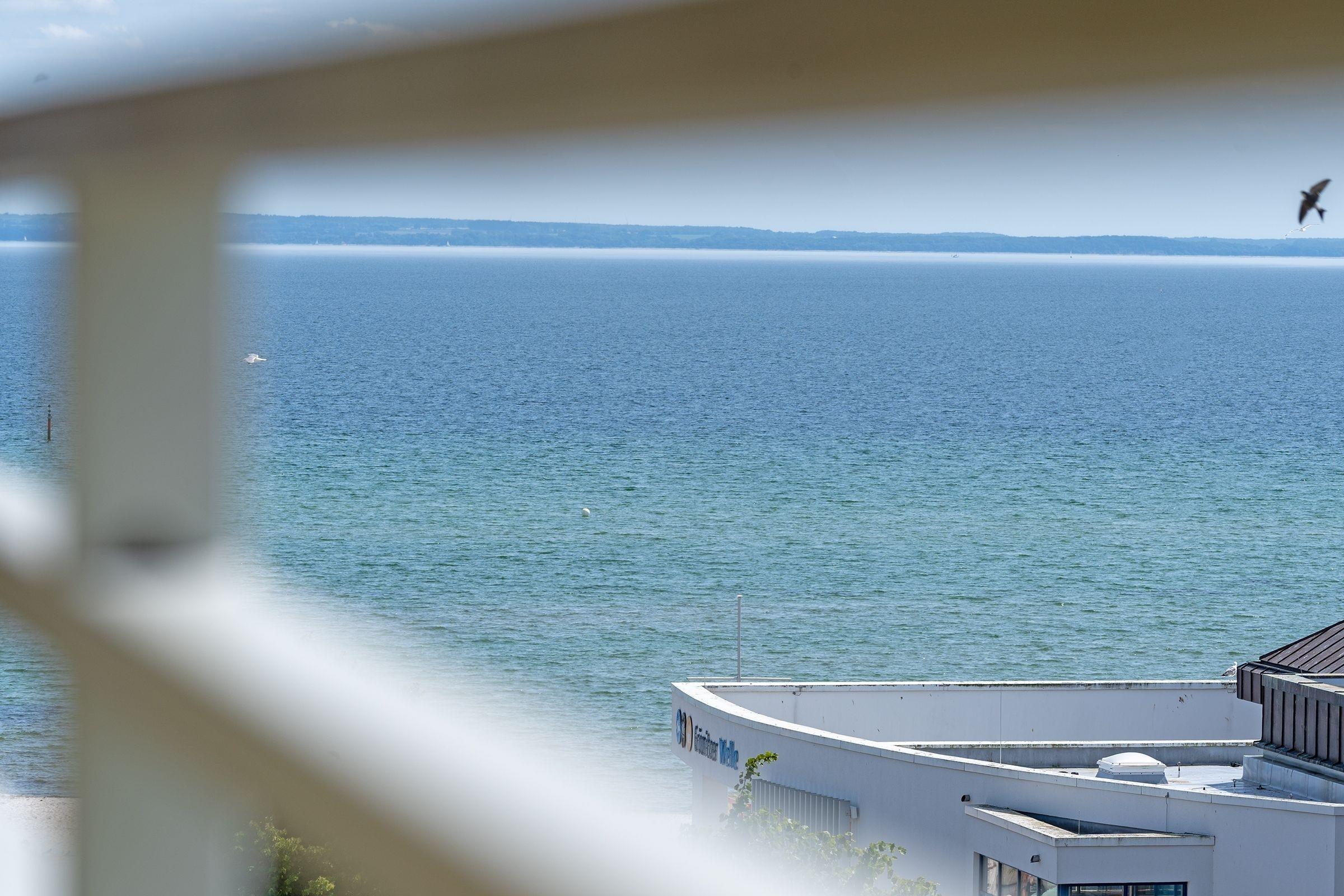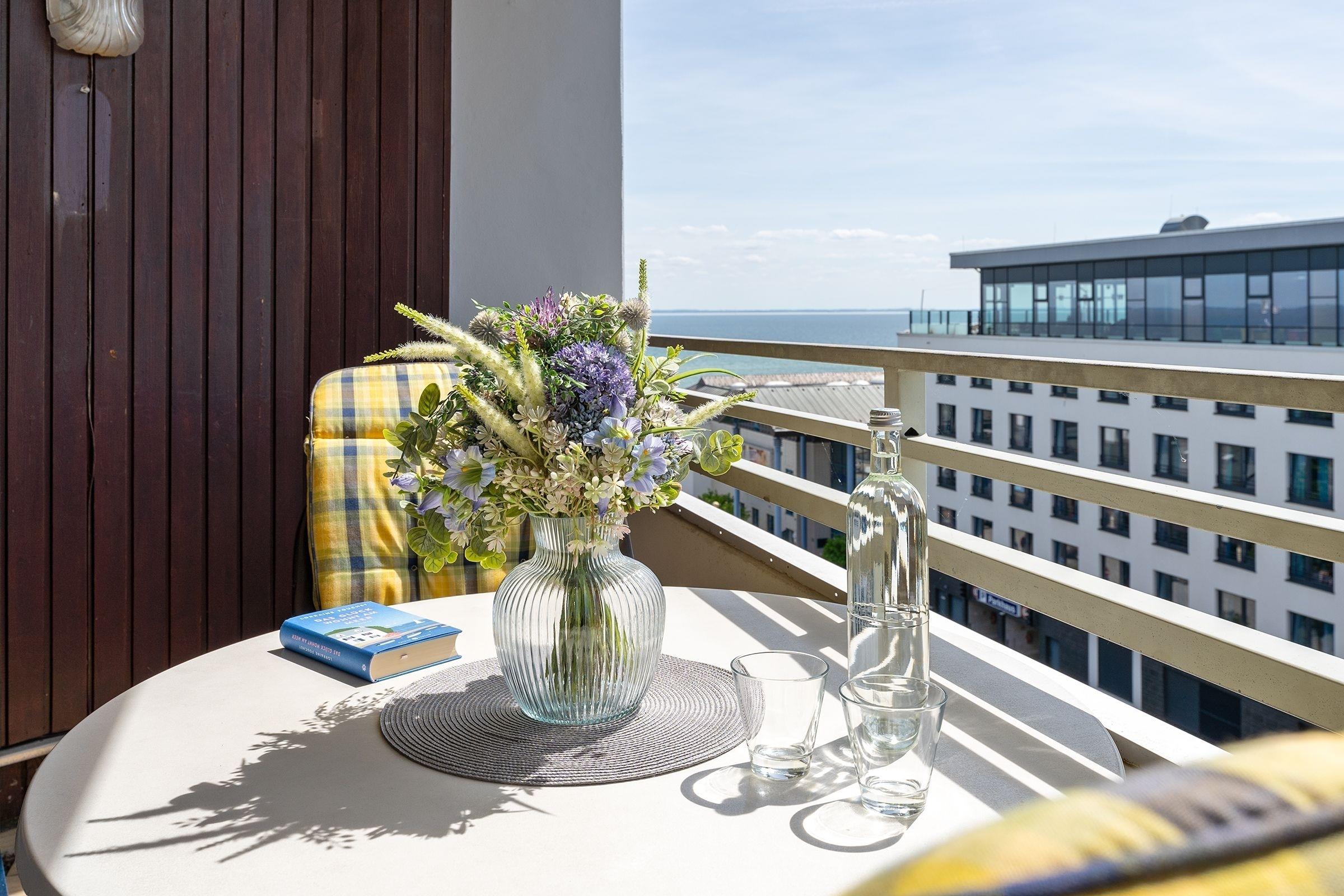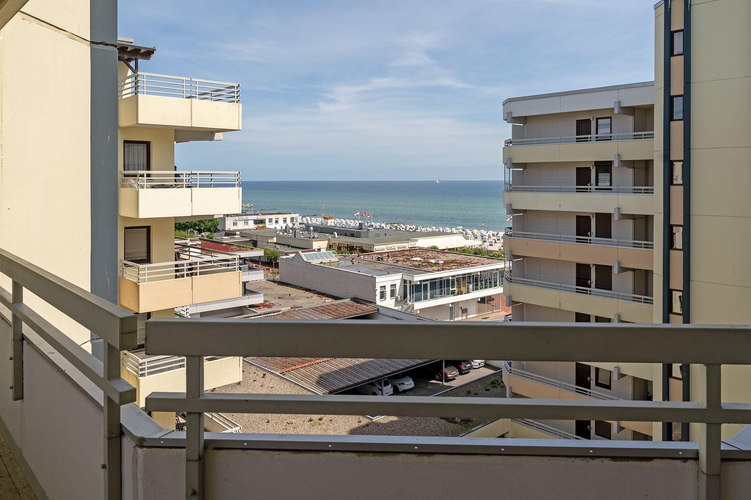 Charmante Ferienwohnung mit Balkon und seitlichem Meerblick in Grömitz, ideal für erholsame Strandtage.