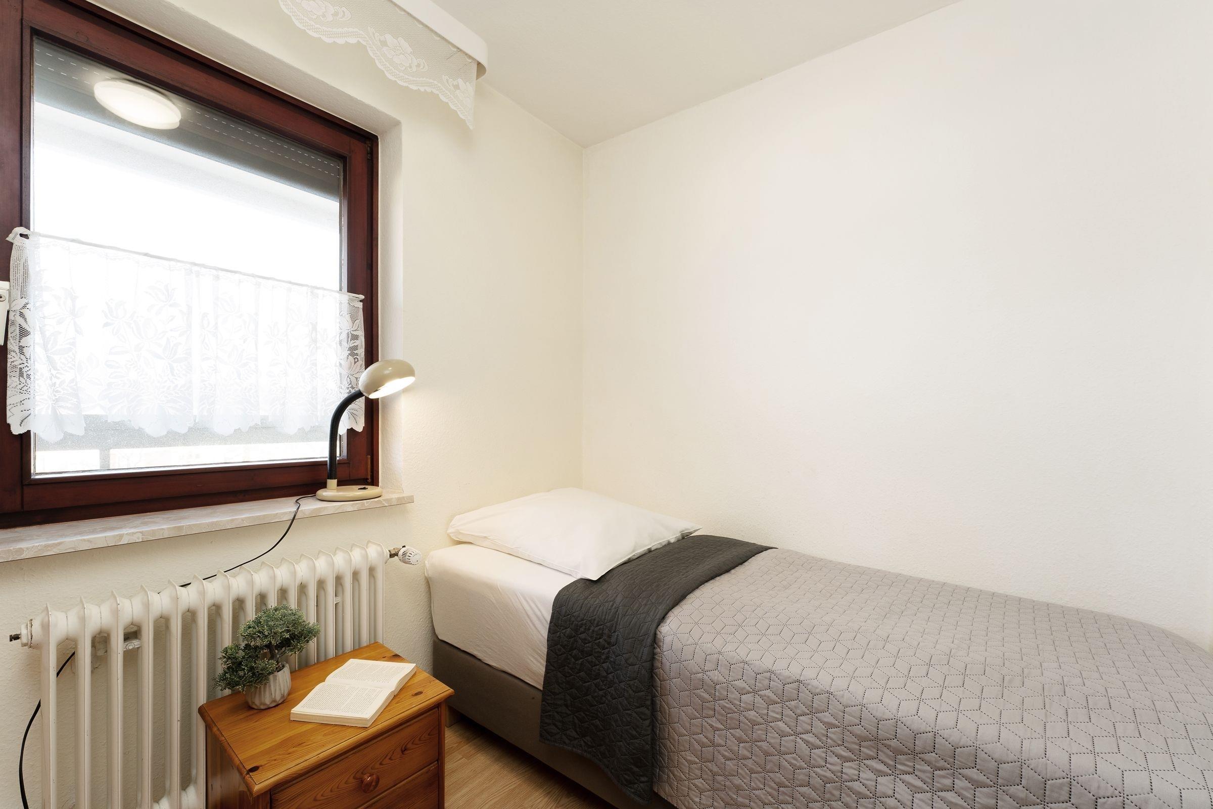Schlafzimmer 2: 1 Einzelbett (90x200 cm), Verdunkelung (Außenjalousien)