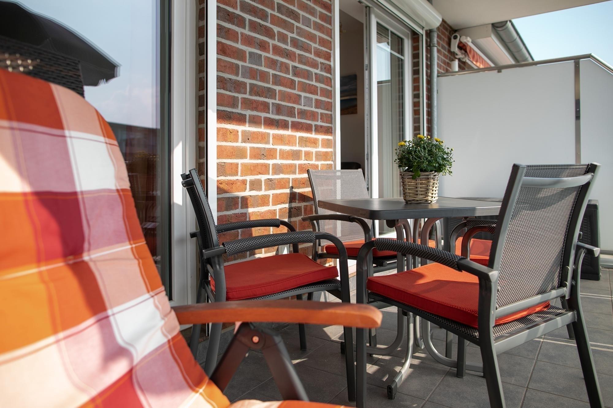 Ihr Balkon mit Südausrichtung ist mit hochwertigen Balkonmöbeln ausgestattet. Sie erreichen den Balkon direkt vom großzügig geschnittenen Wohnzimmer aus, alles harmonisch aufeinander abgestimmt - mit Flat-TV, komfortabler Schlafcouch (160x200), gemütlichem Essplatz und voll ausgestatteter Küche, die gekonnt in den Wohnraum integriert ist. Das separate Schlafzimmer mit Doppelbett (2x 90x200 cm) empfängt Sie für erholsame Nächte und der geräumige Kleiderschrank nimmt problemlos Ihre Ferienkleidung auf. Ein modernes und helles Duschbad mit WC wird Sie begeistern, hier startet man gern in den Urlaubstag!