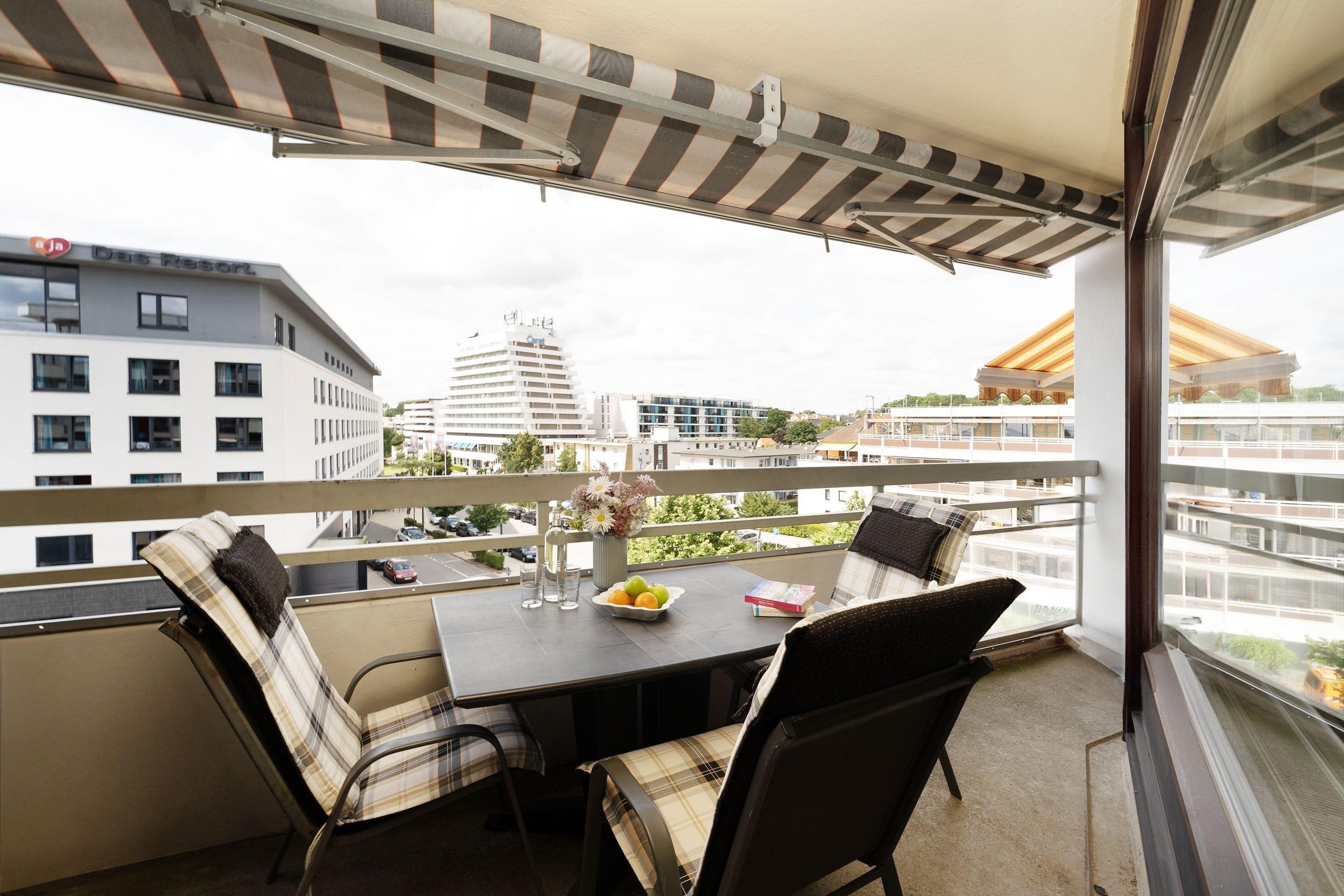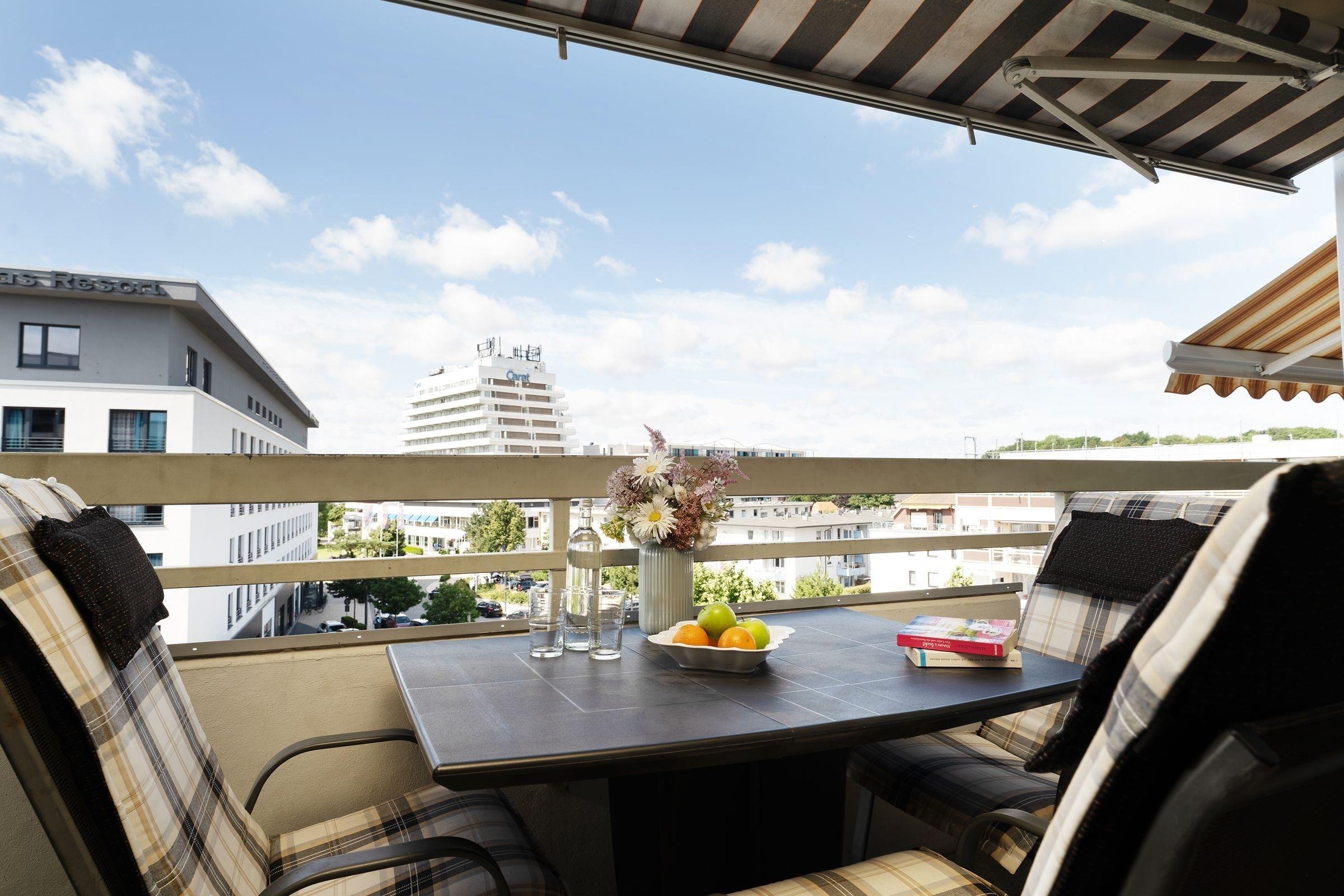 Moderne Ferienwohnung mit Balkon und seitlichem Meerblick im Grömitz Center, strandnah und komfortabel für erholsame Urlaubstage.