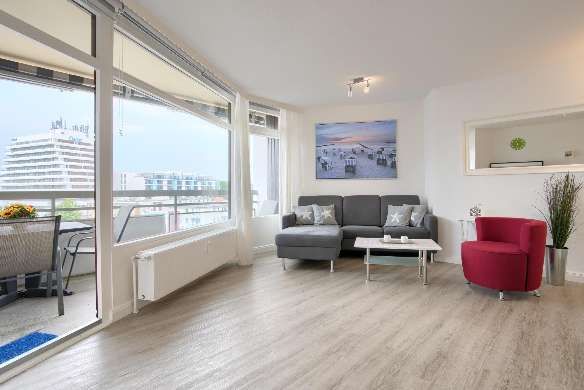 Verbringen Sie Ihre schönsten Tage des Jahres in dieser liebe- und geschmackvoll eingerichteten 3-Zimmer-Ferienwohnung im 5. Stock mit Balkon und seitlichem Meerblick. Auf ca. 63 m² haben Sie mit bis zu 2 Erwachsenen und 2 Kindern reichlich Platz zum Erholen.