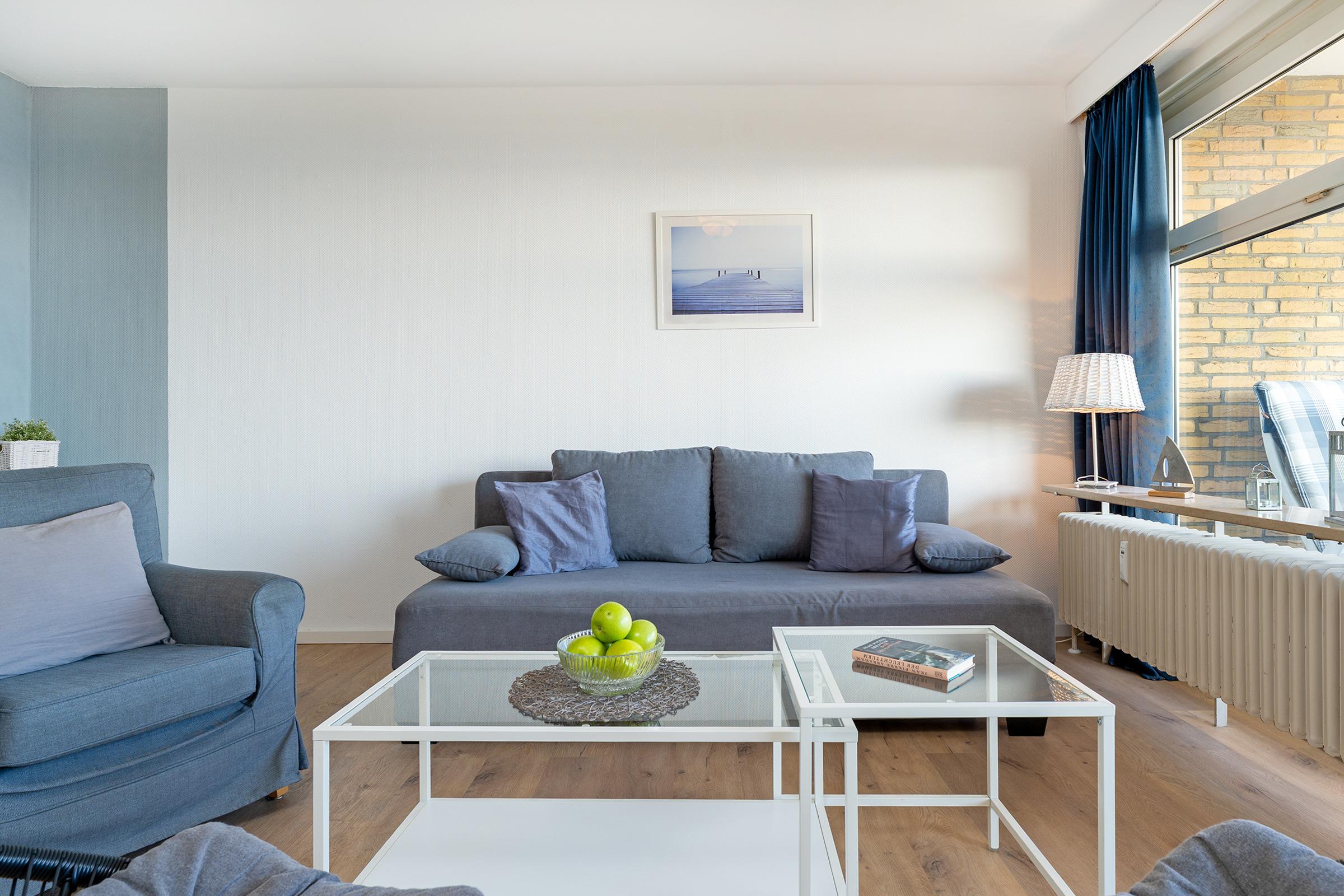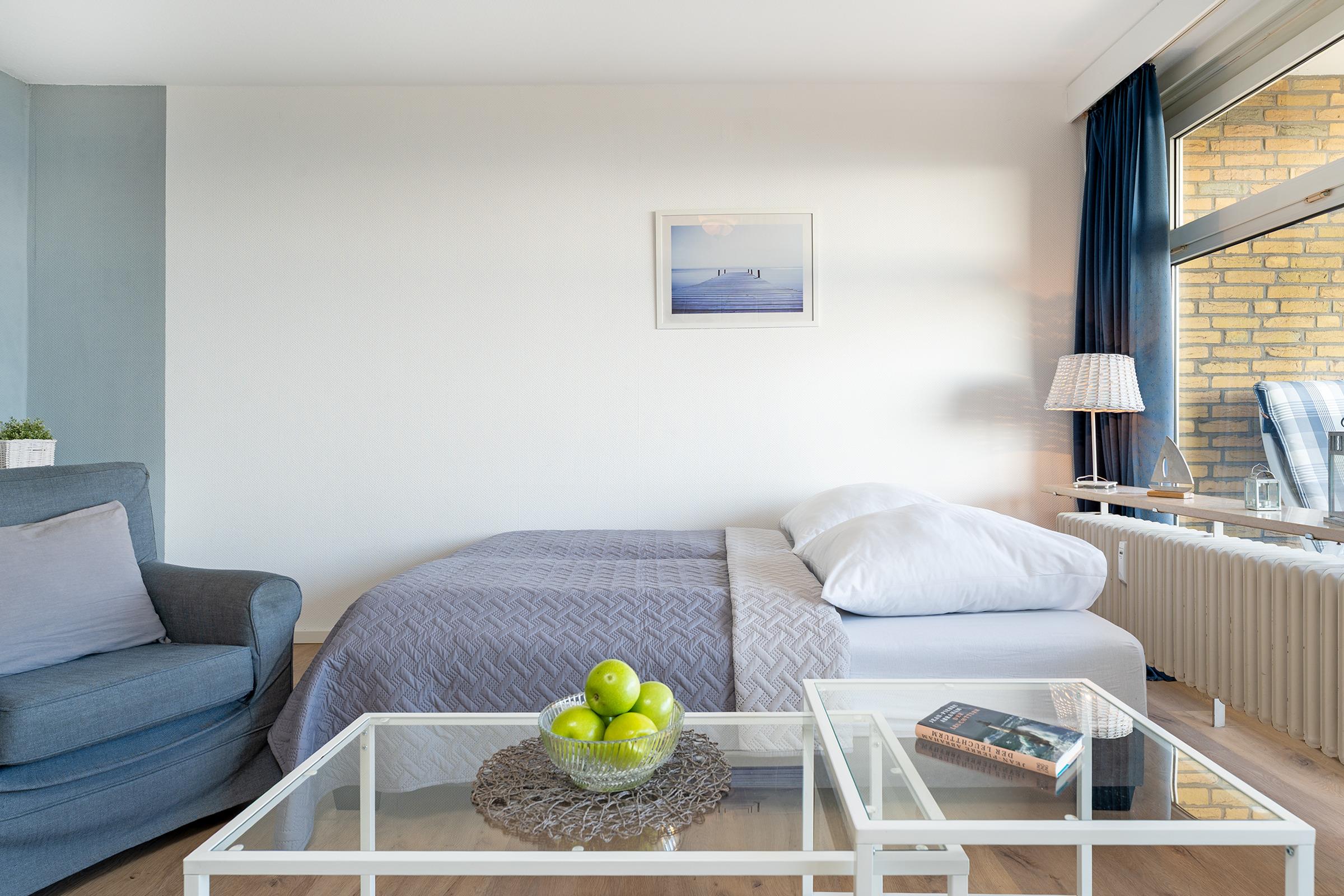 Diese 2-Zimmer-Ferienwohnung mit ca. 53 m² bietet bis zu 4 Gästen eine traumhafte Aussicht sowie eine strandnahe und zentrale Lage.