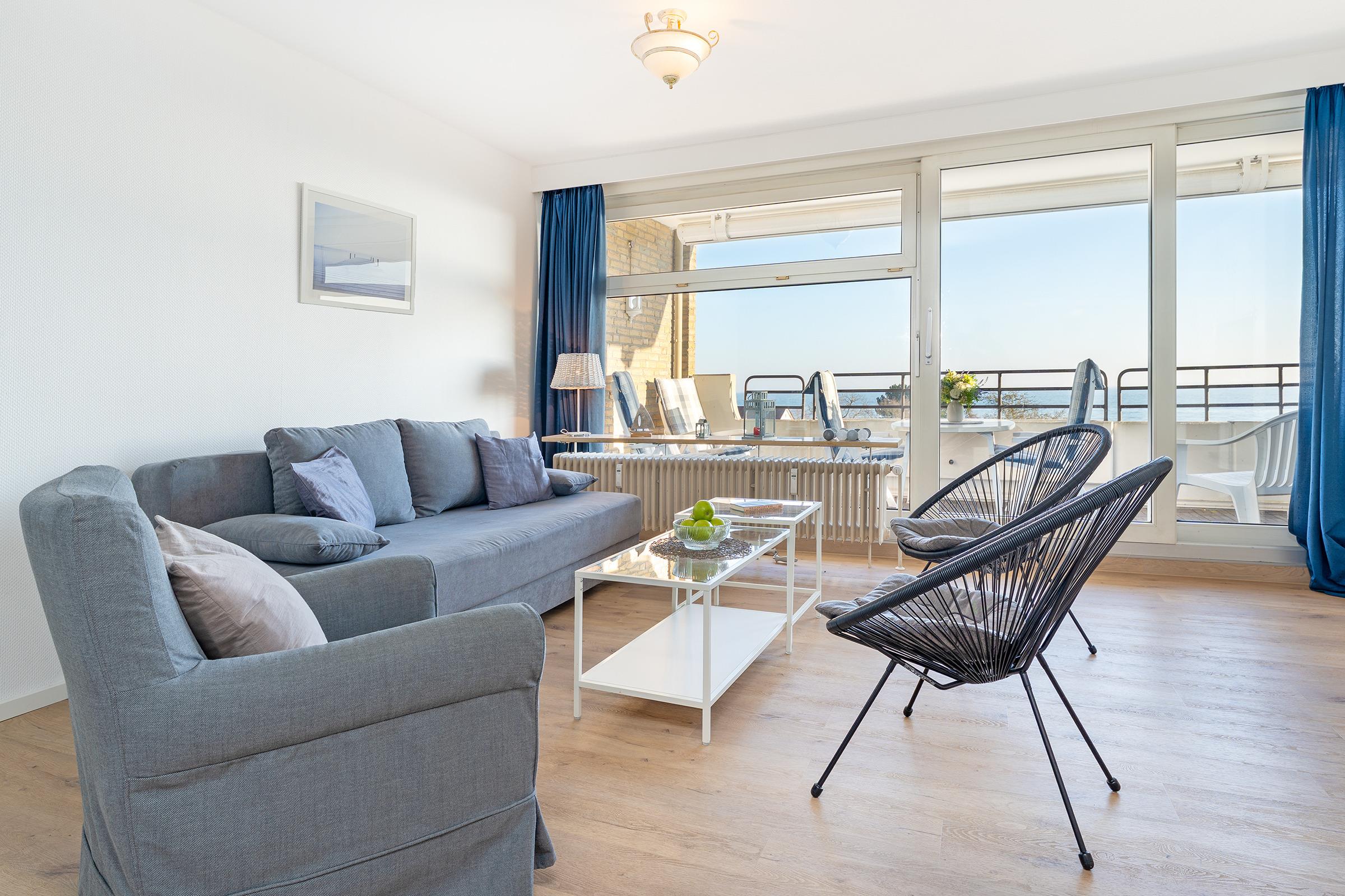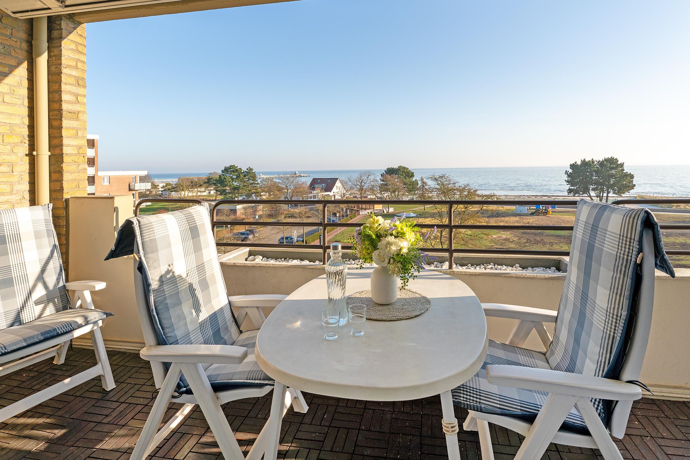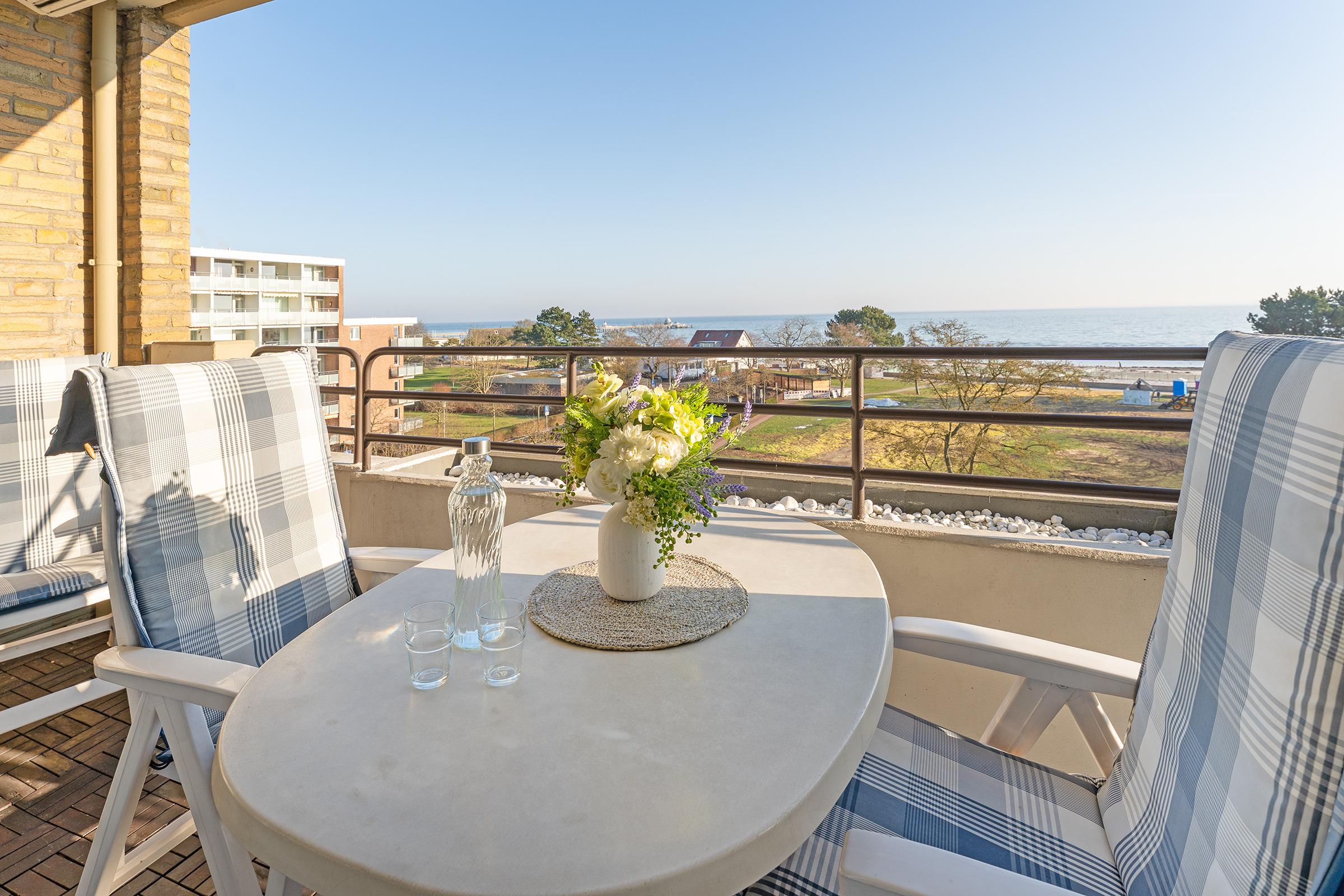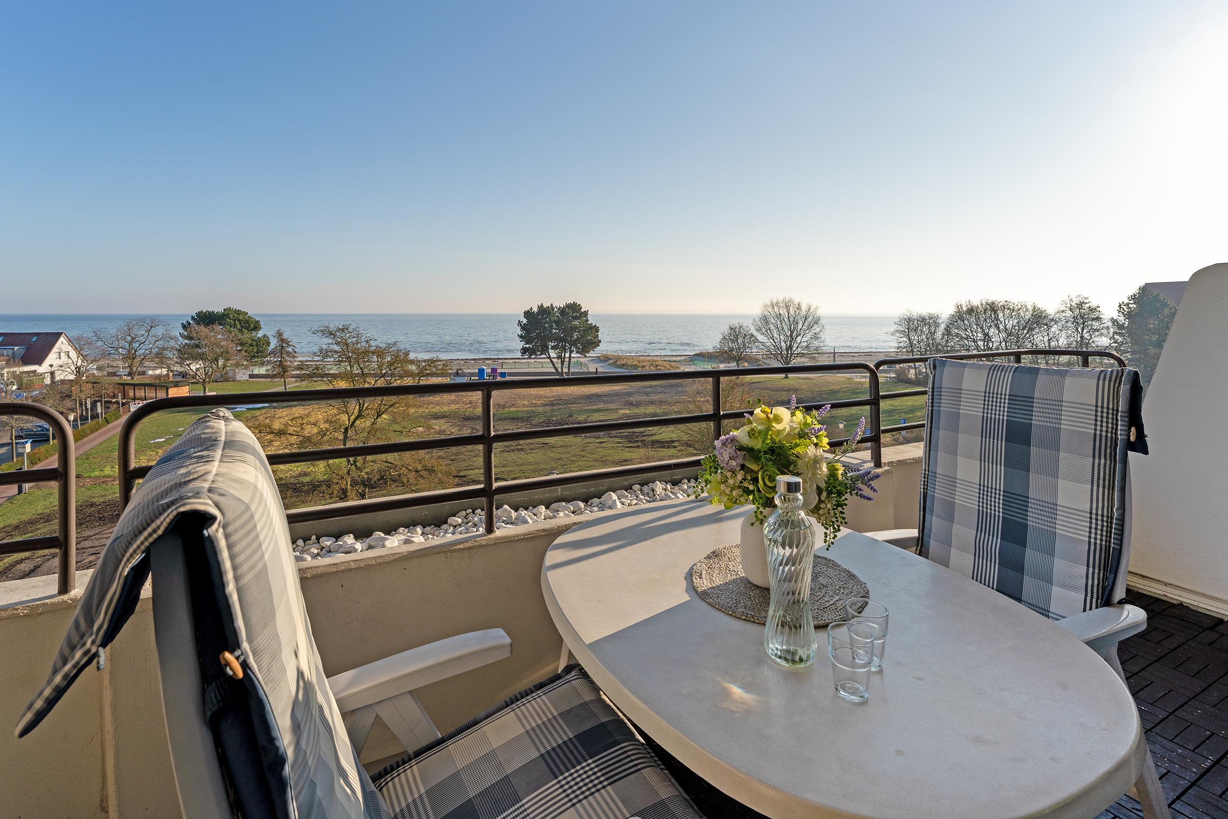 Moderne 2-Zimmer-Ferienwohnung in Grömitz mit Balkon und direktem Meerblick, strandnah und zentral gelegen.