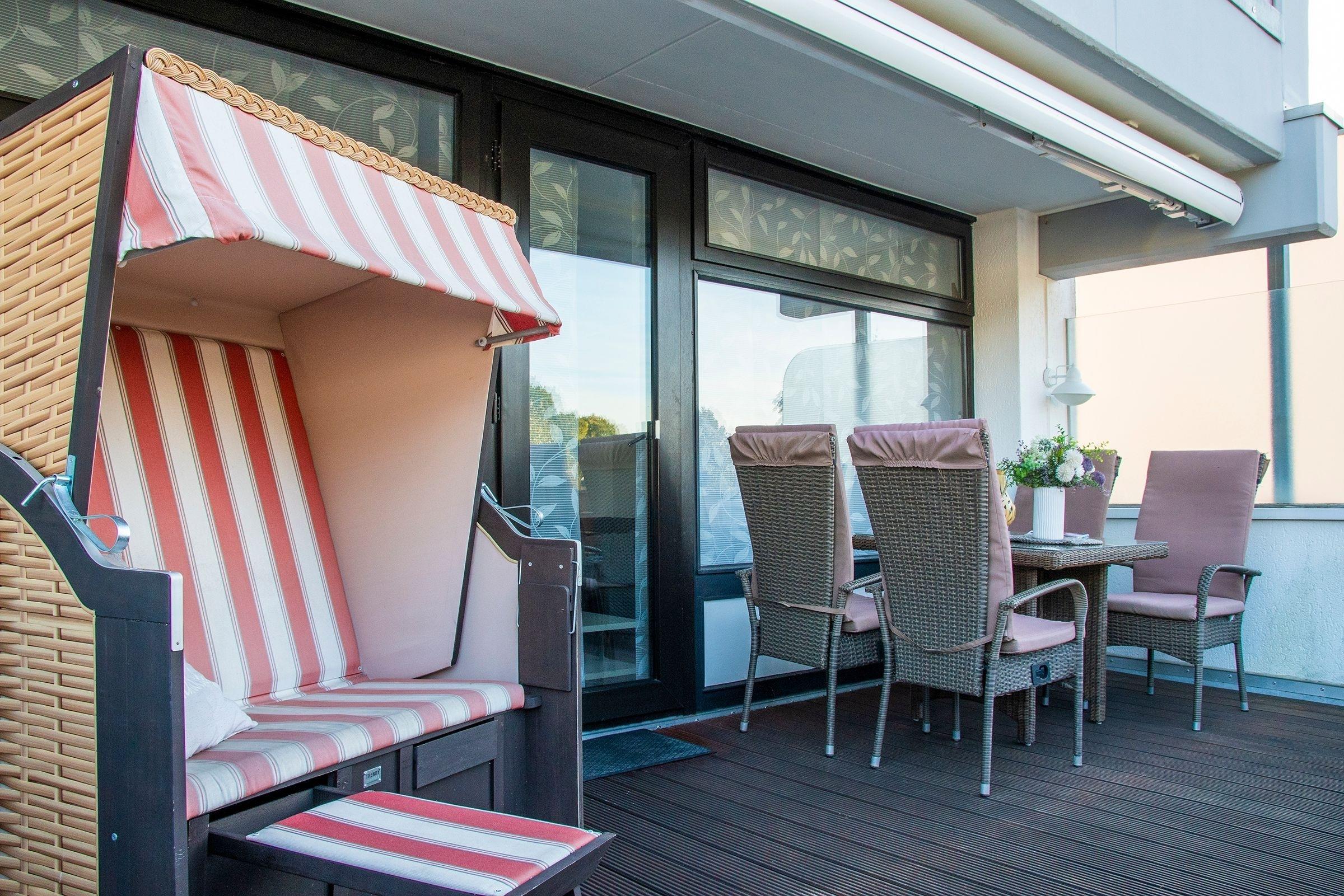 Moderne Ferienwohnung mit Terrasse und Strandkorb