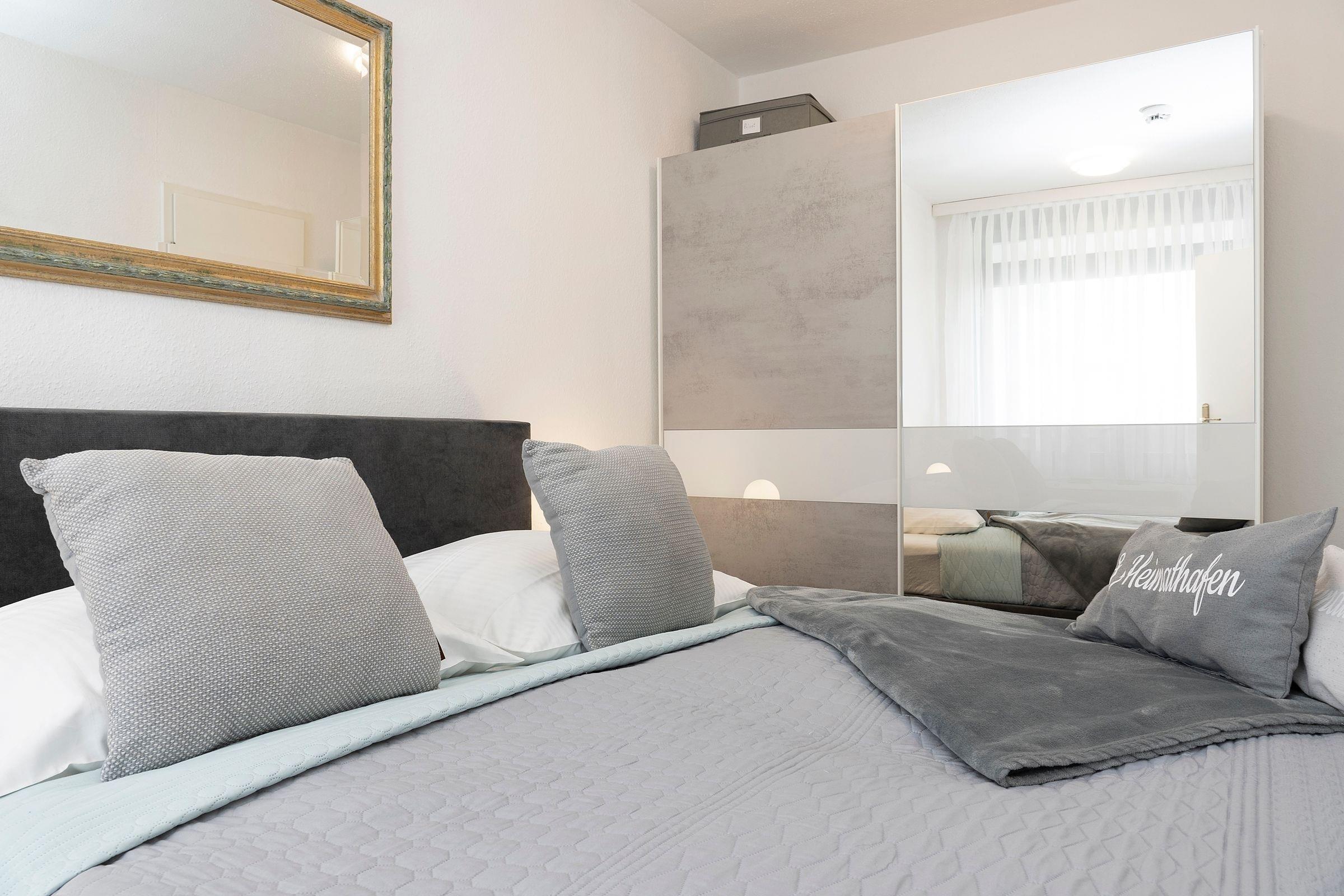 Schlafzimmer 1: 1 Doppelbett (2x 80x200 cm), Kleiderschrank, Verdunkelungsmöglichkeit, Kinderbett passt nicht rein