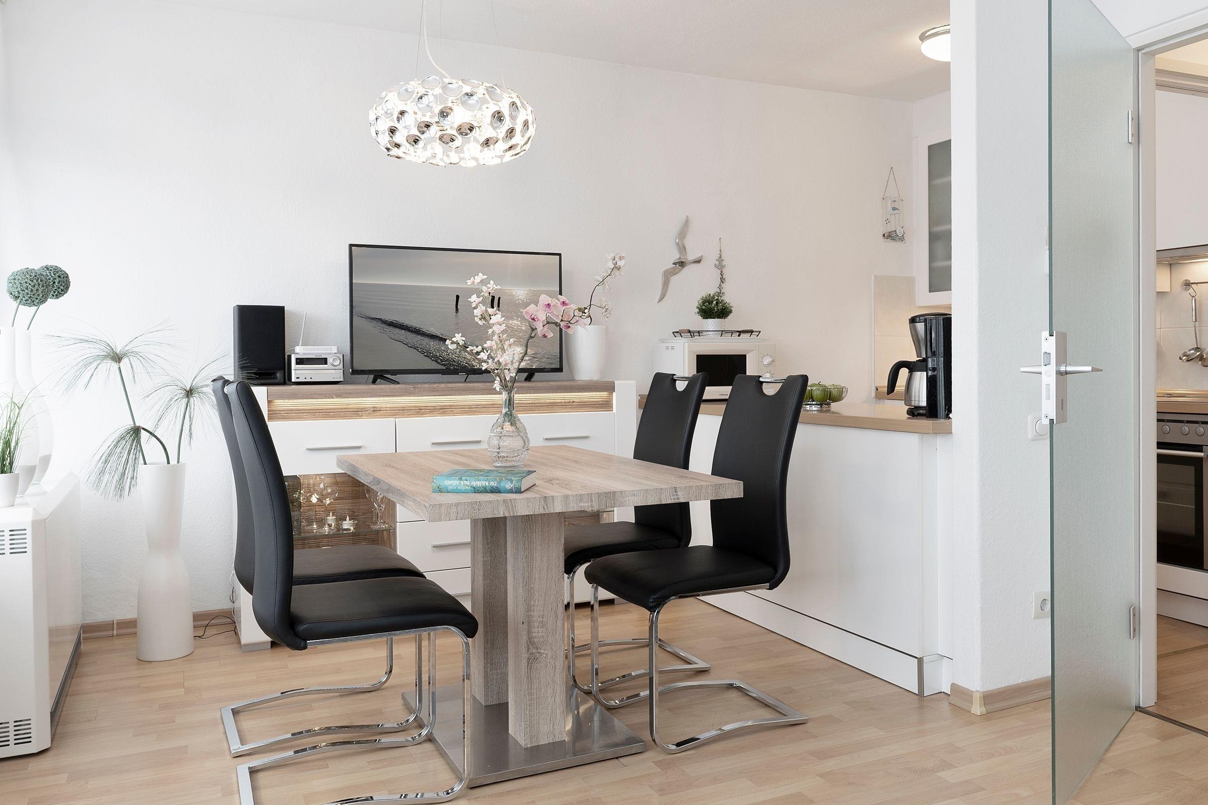 Es begrüßt Sie ein geräumiger Wohn- und Essbereich mit offener, voll ausgestatteter Küche. Die zwei separaten Schlafzimmer sind mit einem Doppelbett (2x 80x200 cm) bzw. einem Etagenbett (je 90x190 cm) ausgestattet. Das innenliegende Badezimmer erwartet Sie mit Dusche und WC. Dieses Feriendomizil liegt in erstklassiger Lage - nur 5 Fußminuten von der Innenstadt, 8 Minuten vom Kurpark und 12 Minuten von der Promenade entfernt. Erleben Sie erholsame Stunden in dieser wunderschönen Ferienwohnung. Der WLAN-Anschluss ist inklusive.