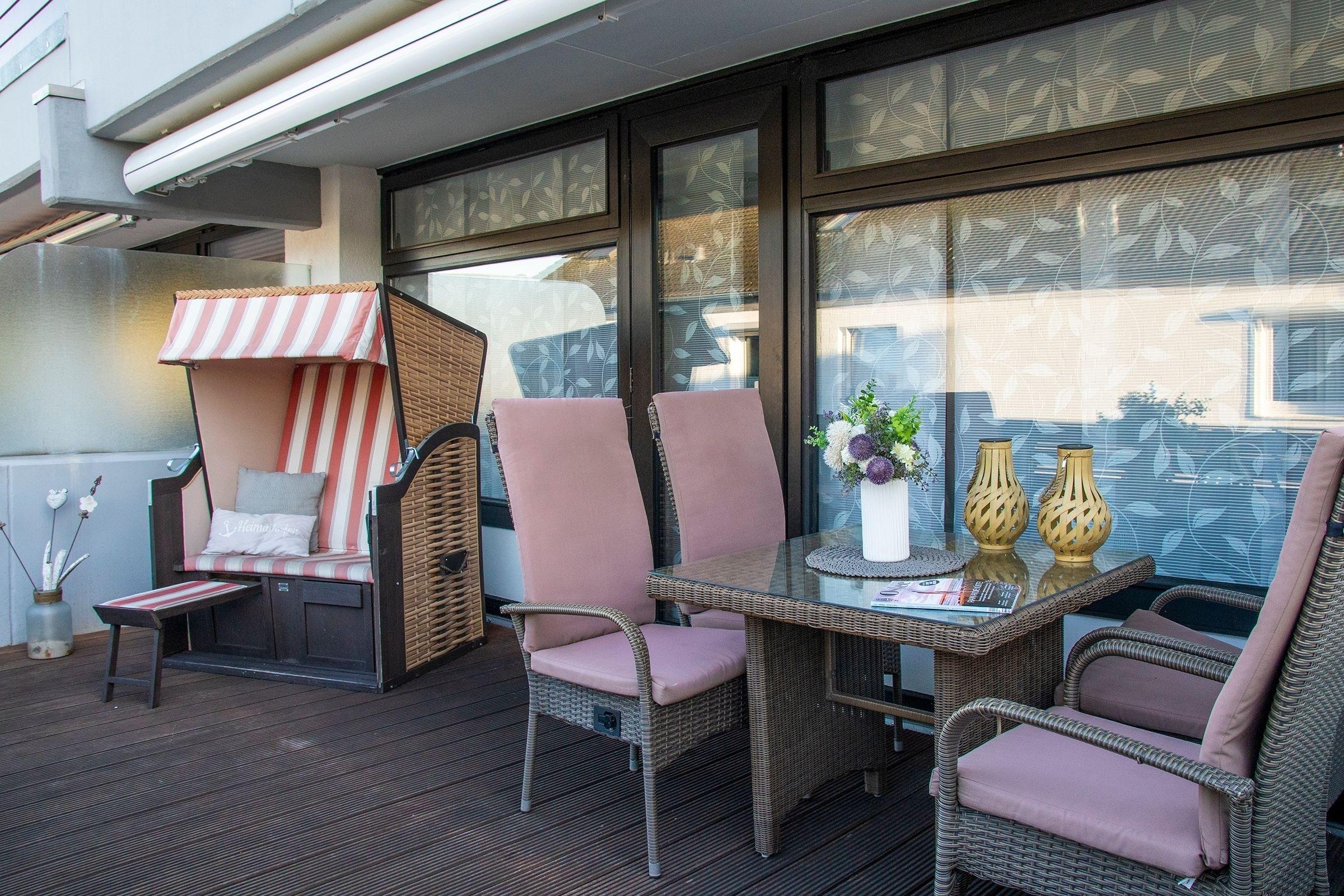 Moderne Ferienwohnung in Grömitz mit Terrasse, Strandkorb und WLAN, nur wenige Minuten vom Strand und Innenstadt entfernt.