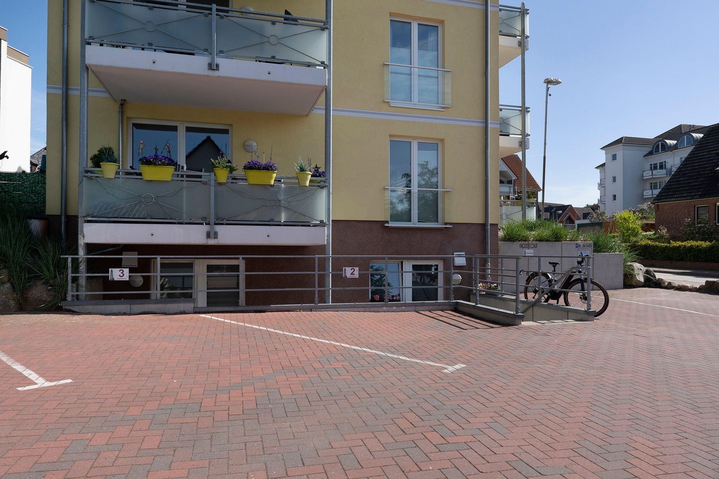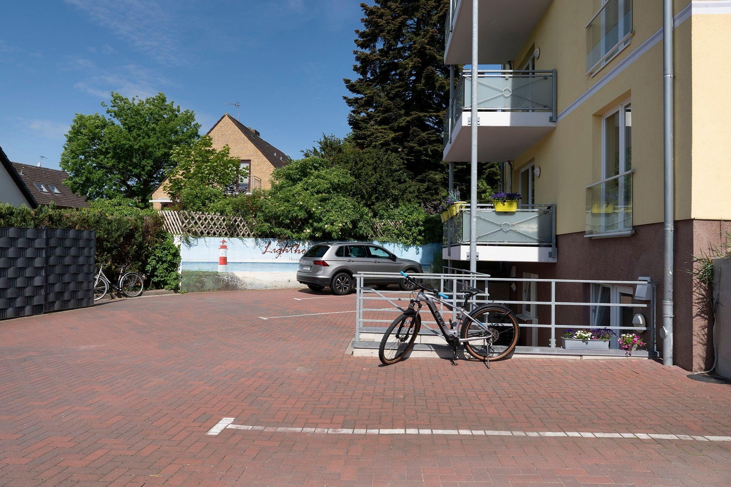 Ein PKW-Außenstellplatz ist für Sie reserviert. Für mitgebrachte Fahrräder ist ein Fahrradkeller vorgesehen. Waschmaschine und Trockner stehen zur gemeinschaftlichen Nutzung zur Verfügung. Ebenfalls steht für die Gäste ein Holz-Bollerwagen bereit.