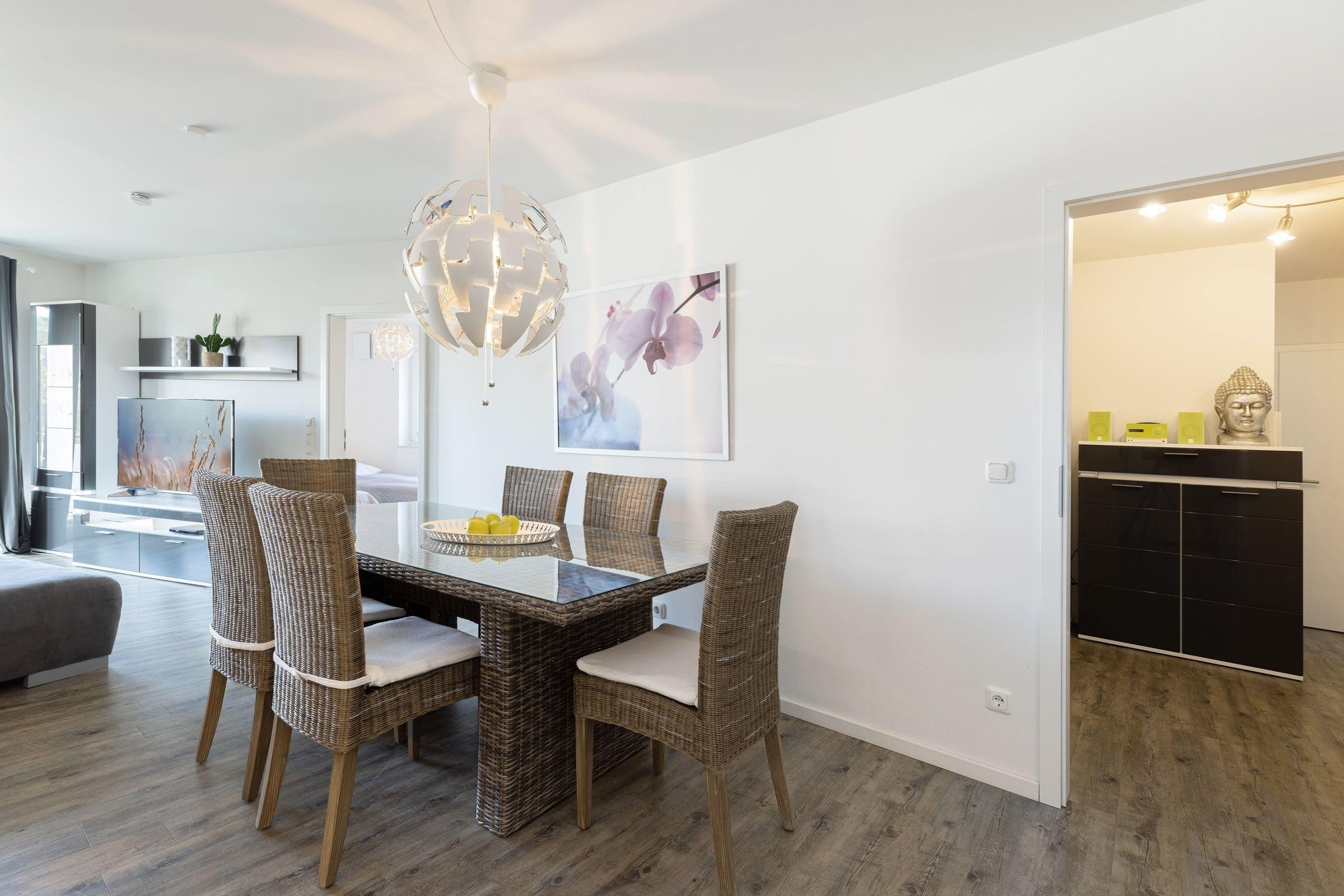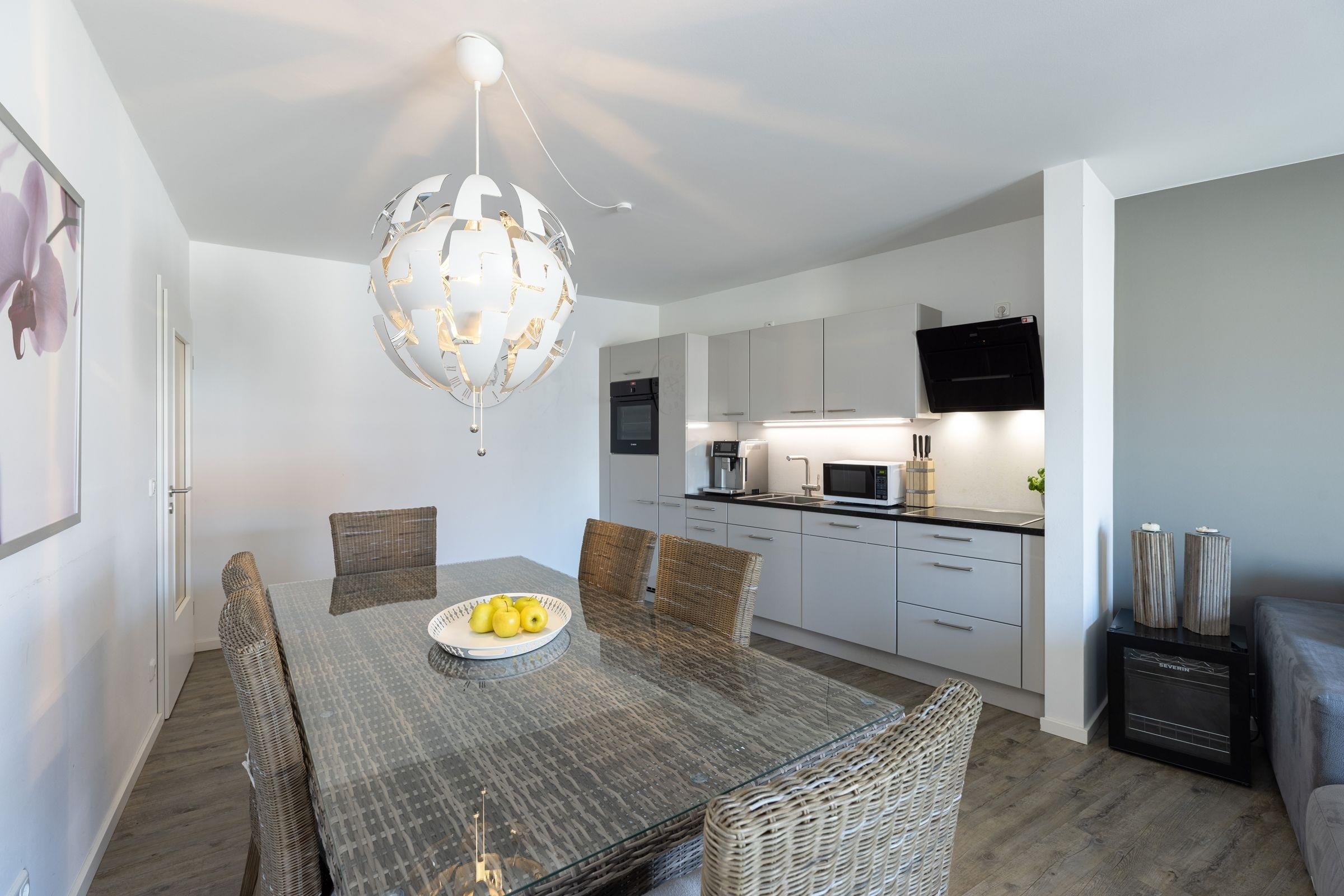 Ihr Feriendomizil wird - abseits vom Trubel - durch seine tolle Ausstattung und eine raffinierte Raumaufteilung überzeugen. Einkaufsmöglichkeiten und Bäcker, verschiedenen Restaurants und Geschäfte sind fußläufig schnell erreicht. Die Grömitzer Seebrücke mit ihrer bekannten Tauchgondel sowie der feinsandige Grömitzer Badestrand sind nur ca. 1400 m entfernt.