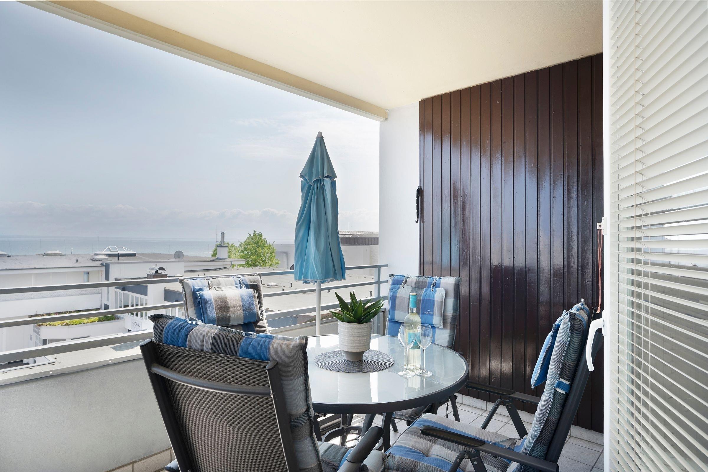 Moderne Ferienwohnung in Grömitz mit Balkon und Meerblick, nur wenige Gehminuten vom Strand entfernt.