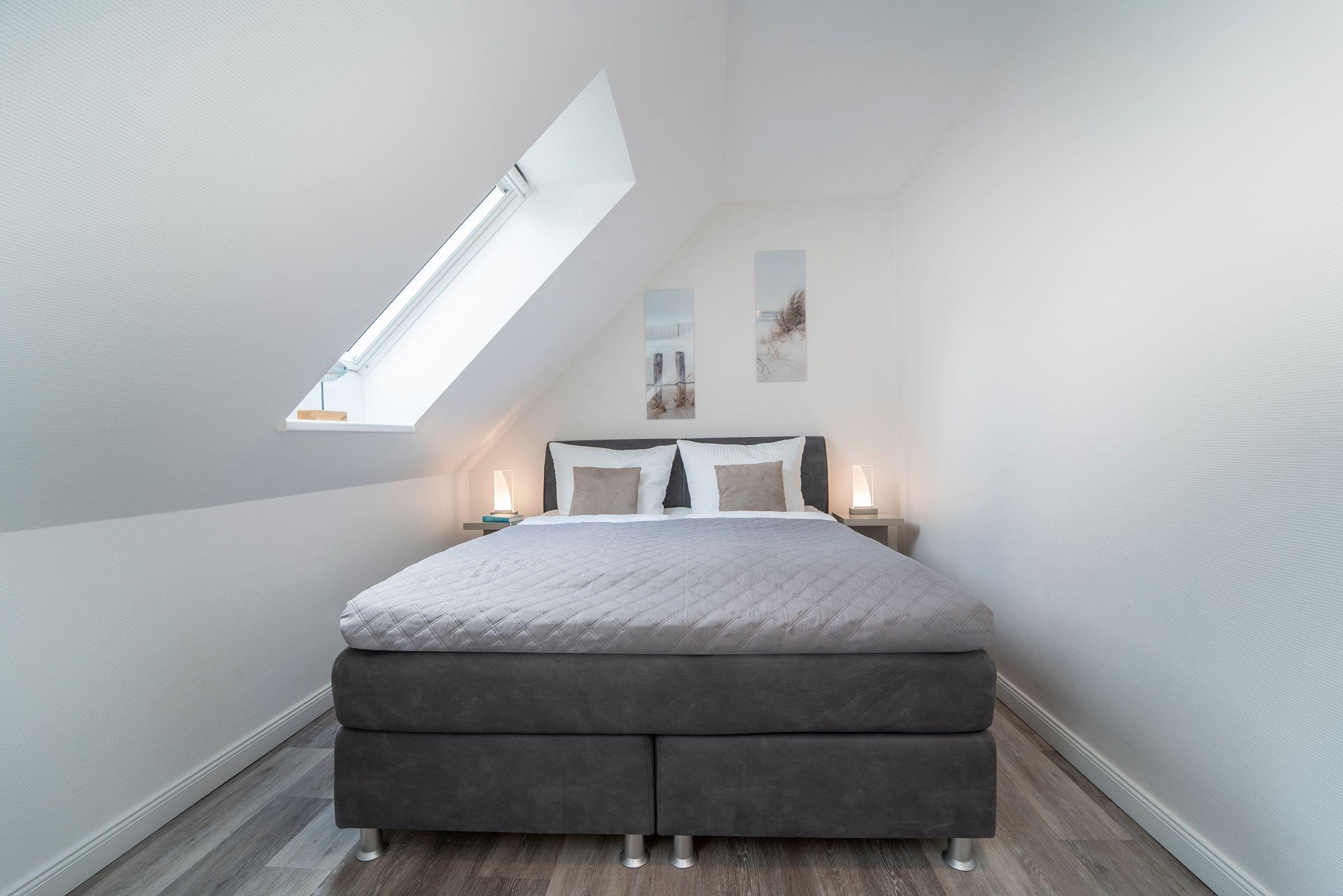 Im Erdgeschoss finden Sie ein helles, lichtdurchflutetes Wohnzimmer mit einer gemütlichen Sofalandschaft und einem modernen Flachbildfernseher. Im angrenzenden Essbereich trifft sich die ganze Familie um schöne Abende zu verbringen. In der komfortablen Küche bleiben keine Wünsche offen. Von der Spülmaschine, der Mikrowelle, einem Kühlschrank mit Gefrierfach und Backofen bis hin zum Wasserkocher und Toaster ist alles für Ihr perfektes Dinner vorhanden. Im Erdgeschoss steht ein Gästezimmer mit einem Einzelbett (Federkernmatratze, 90x200 cm) zur Verfügung. Auf gleicher Etage befindet sich ein Duschbad mit Waschbecken, WC und Waschmaschine gegen Gebühr. Das Haus verfügt über ein zweites, geräumiges Badezimmer mit Dusche und Sauna in der 1. Etage. Ebenfalls in der 1. Etage befinden sich zwei komfortable Schlafzimmer. Nach einem erlebnisreichen Urlaubstag finden Sie mit den hochwertigen Original ORTHOPÄDIKA Boxspring-Doppelbetten (180x200 cm bzw. 160x200 cm) problemlos Entspannung und Ruhe. In jedem Schlafzimmer befindet sich ein Einbauschrank und ein Flachbild-TV sowie Verdunklungsrollos.