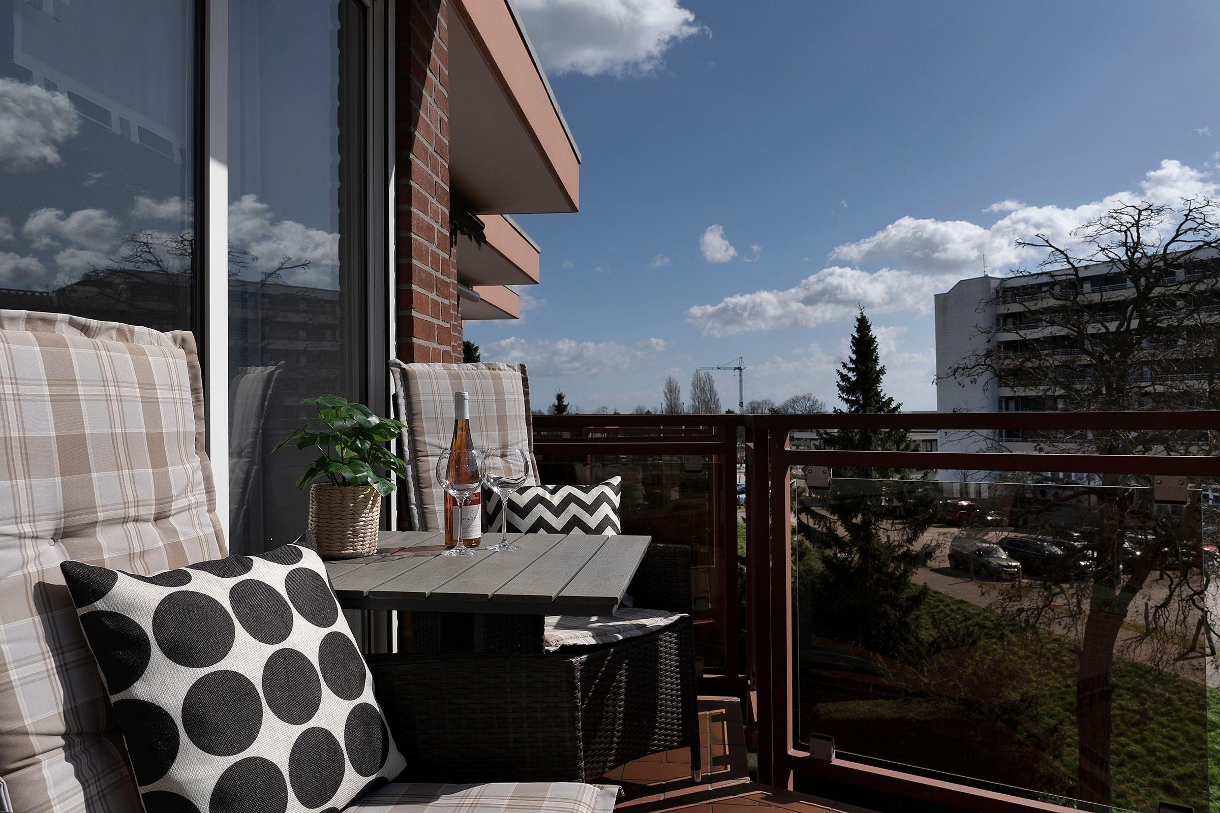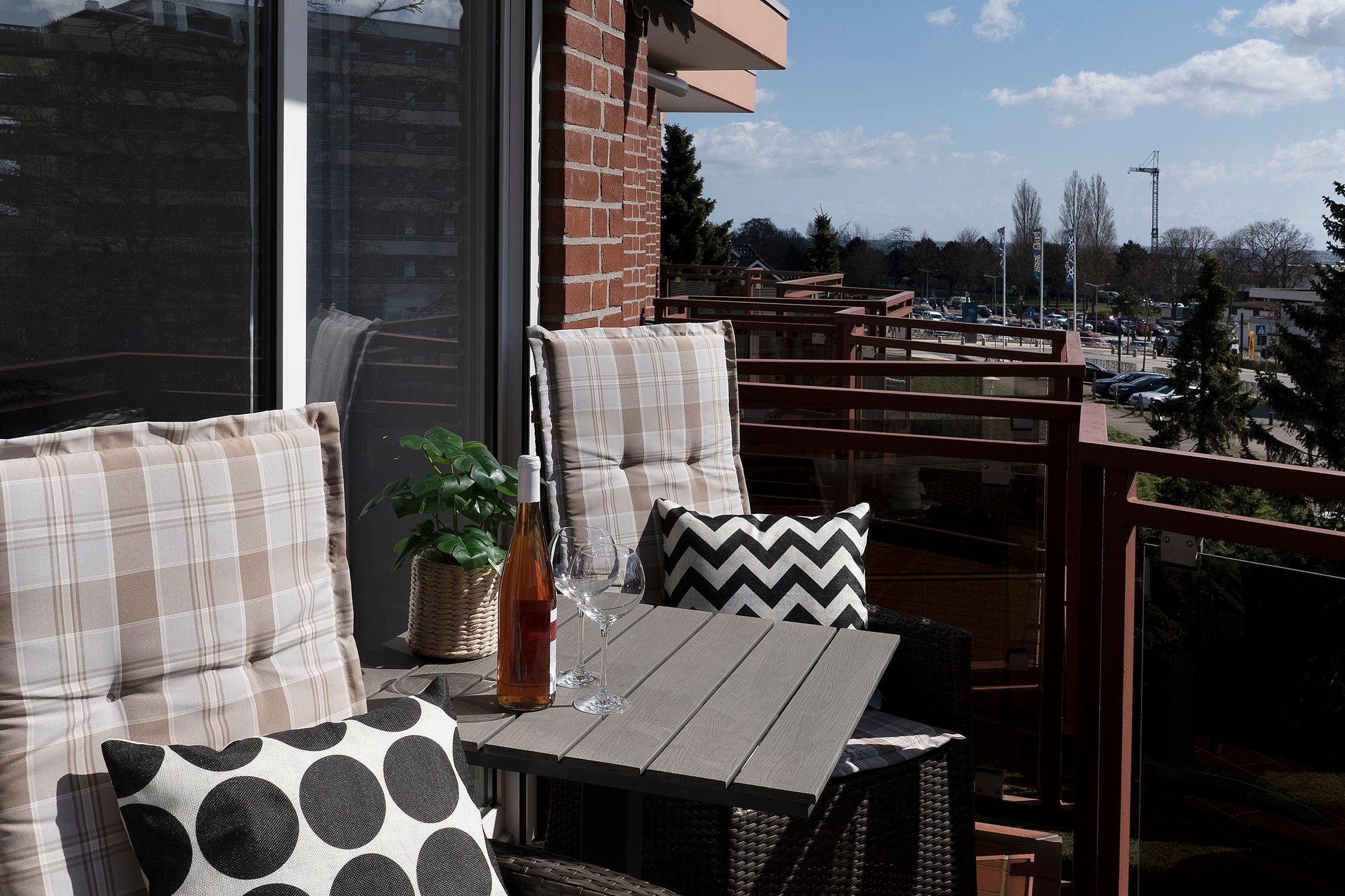 Charmante 2-Zimmer-Ferienwohnung mit zwei Balkonen und Meerblick in Grömitz, nur wenige Minuten vom Strand entfernt.