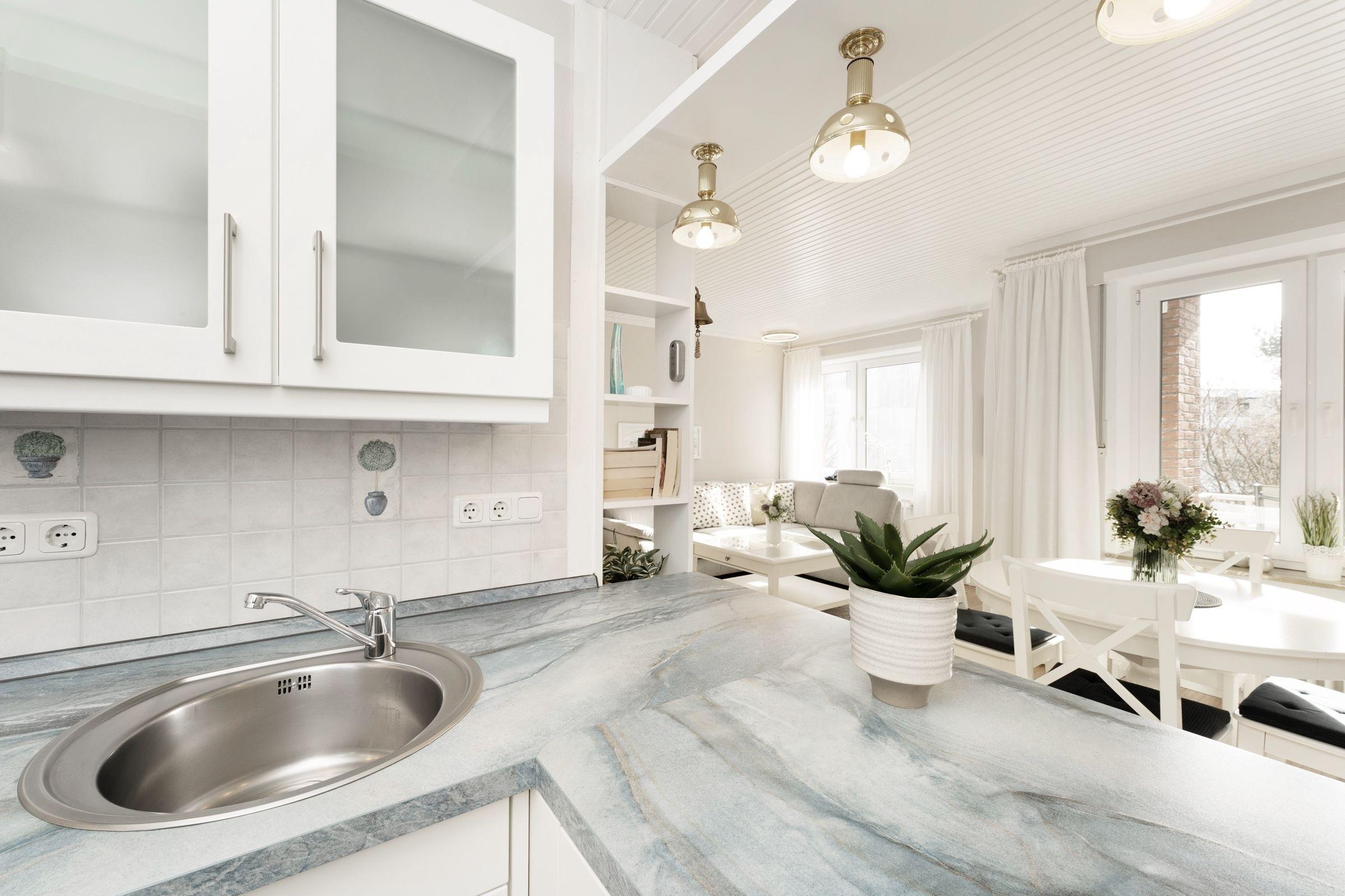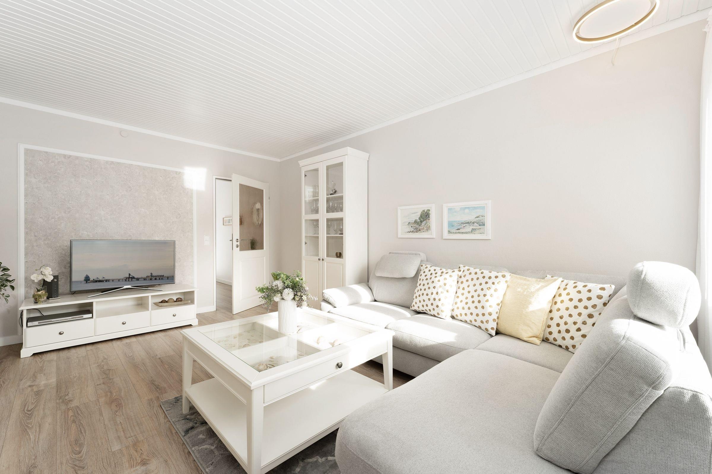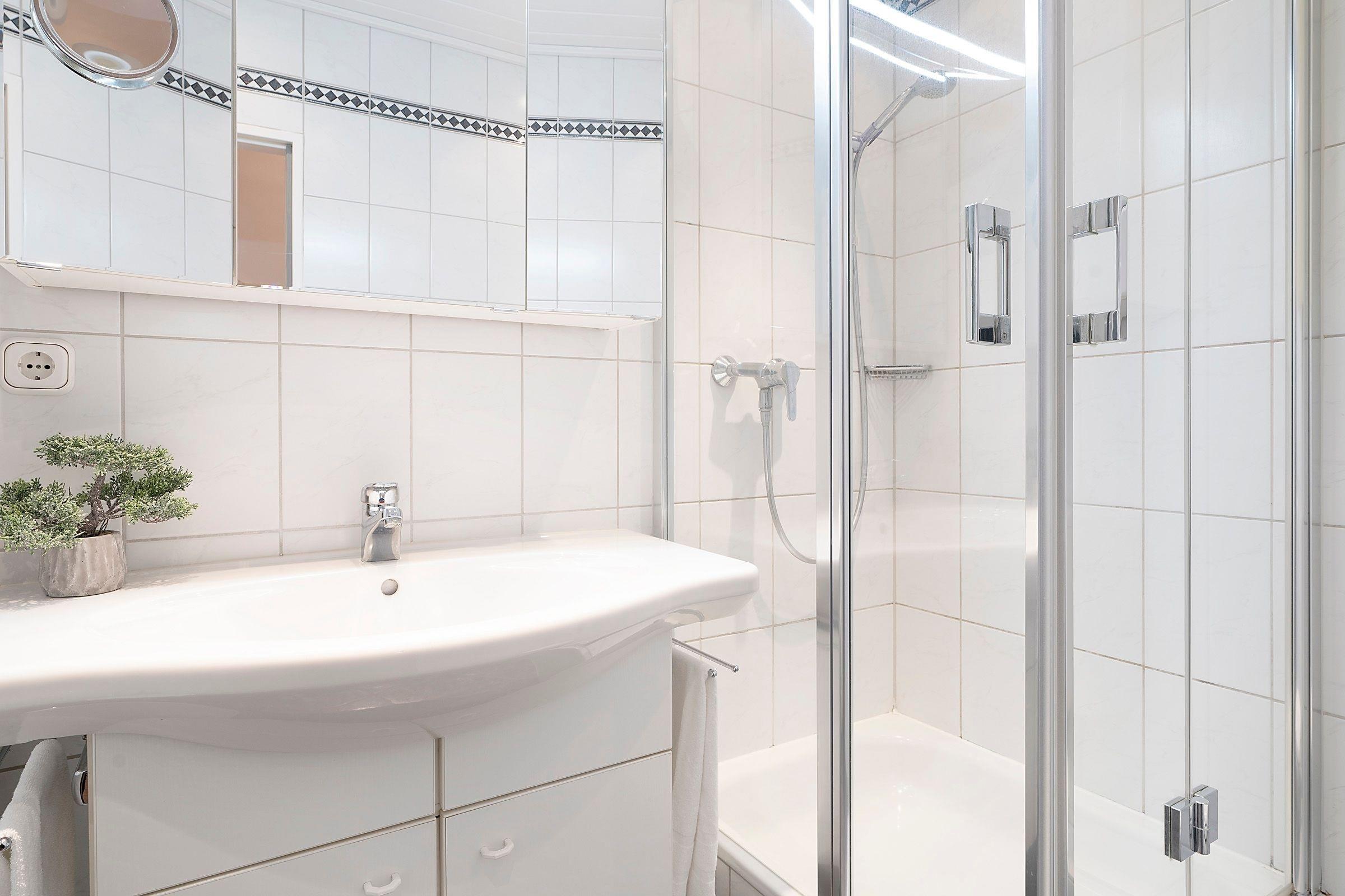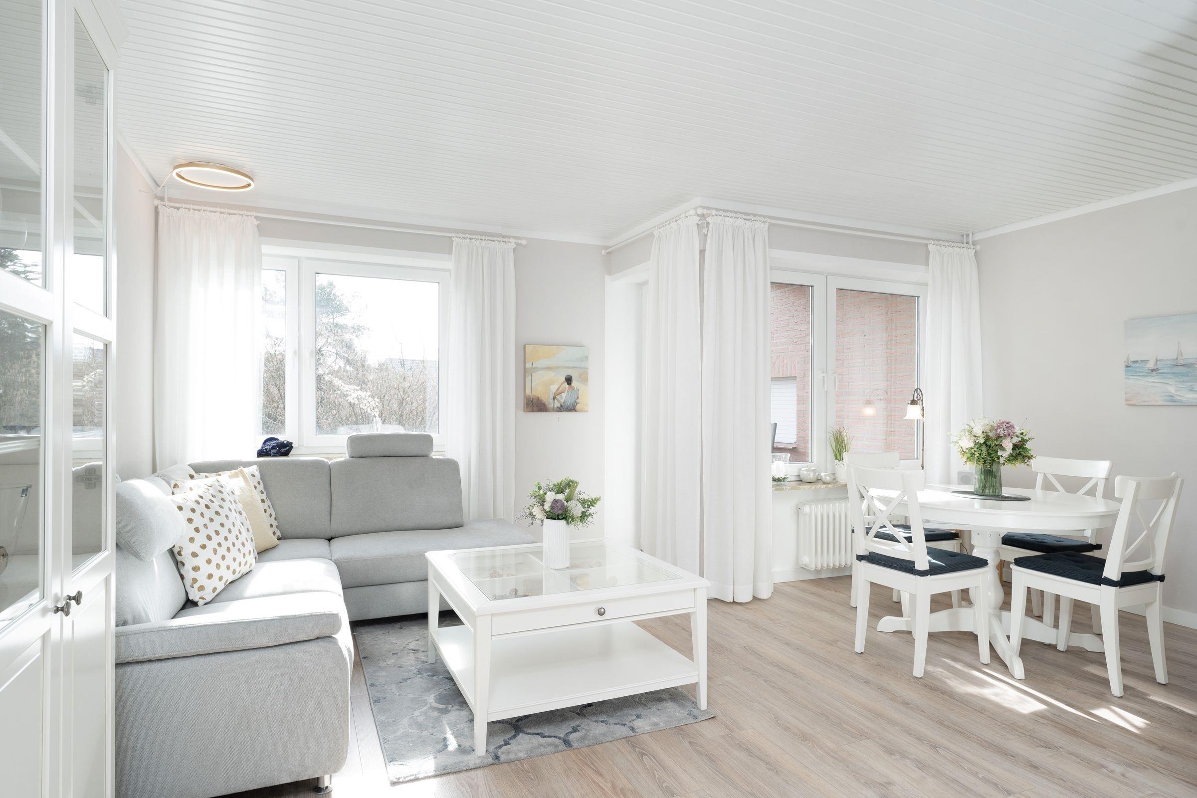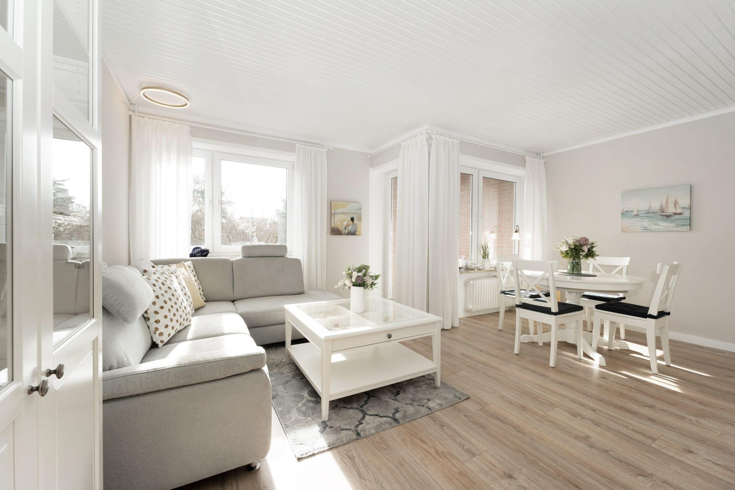 Im Wohnzimmer befindet sich zusätzlich zur hochwertigen, gemütlichen Sofalandschaft eine schöne Essecke. Offen zum Wohnbereich steht Ihnen eine gut ausgestattete Küche zur Verfügung. Das Schlafzimmer verfügt über ein Doppelbett (2x 90x200 cm) und einen geräumigen Kleiderschrank mit Spiegeltüren. Alles Räume sind mit Außenrollos zu verdunkeln. Das moderne Bad ist ausgestattet mit Dusche, beheizbaren Handtuchhalter und WC. Die gesamte Wohnung ist mit hochwertigem Laminat ausgelegt.