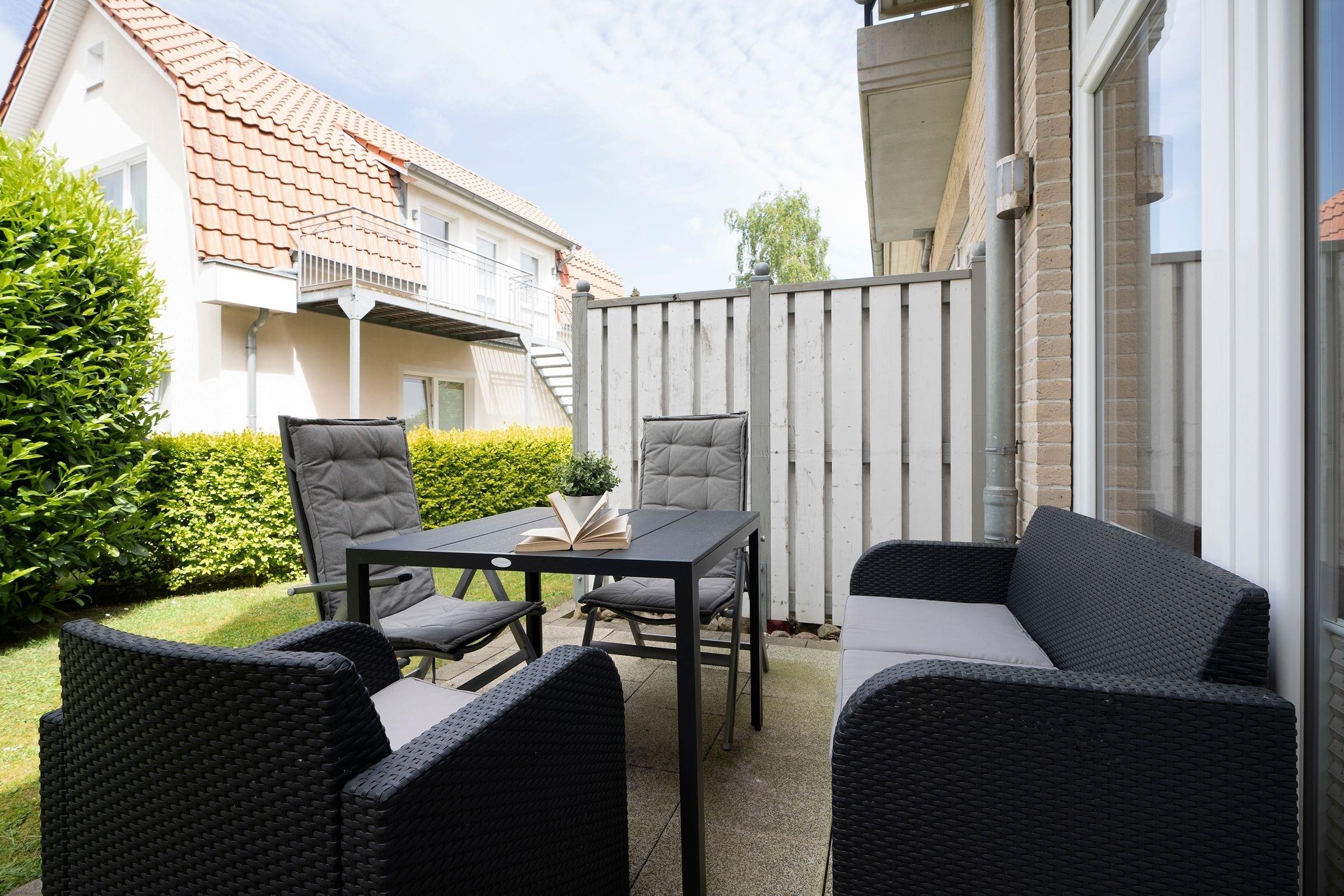 Barrierearme Ferienwohnung in Grömitz mit Terrasse, Fahrstuhl und strandnaher Lage für erholsamen Urlaub.