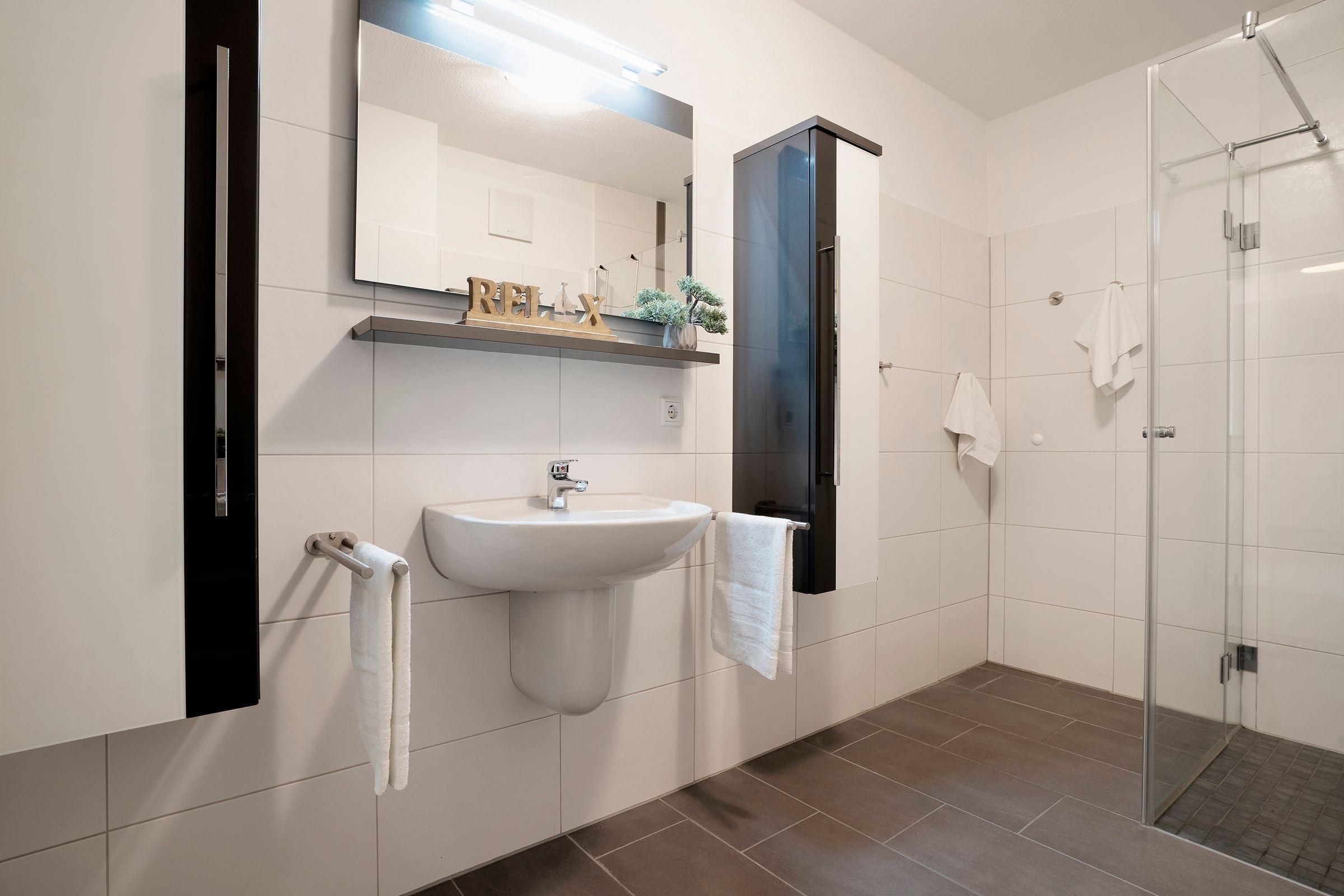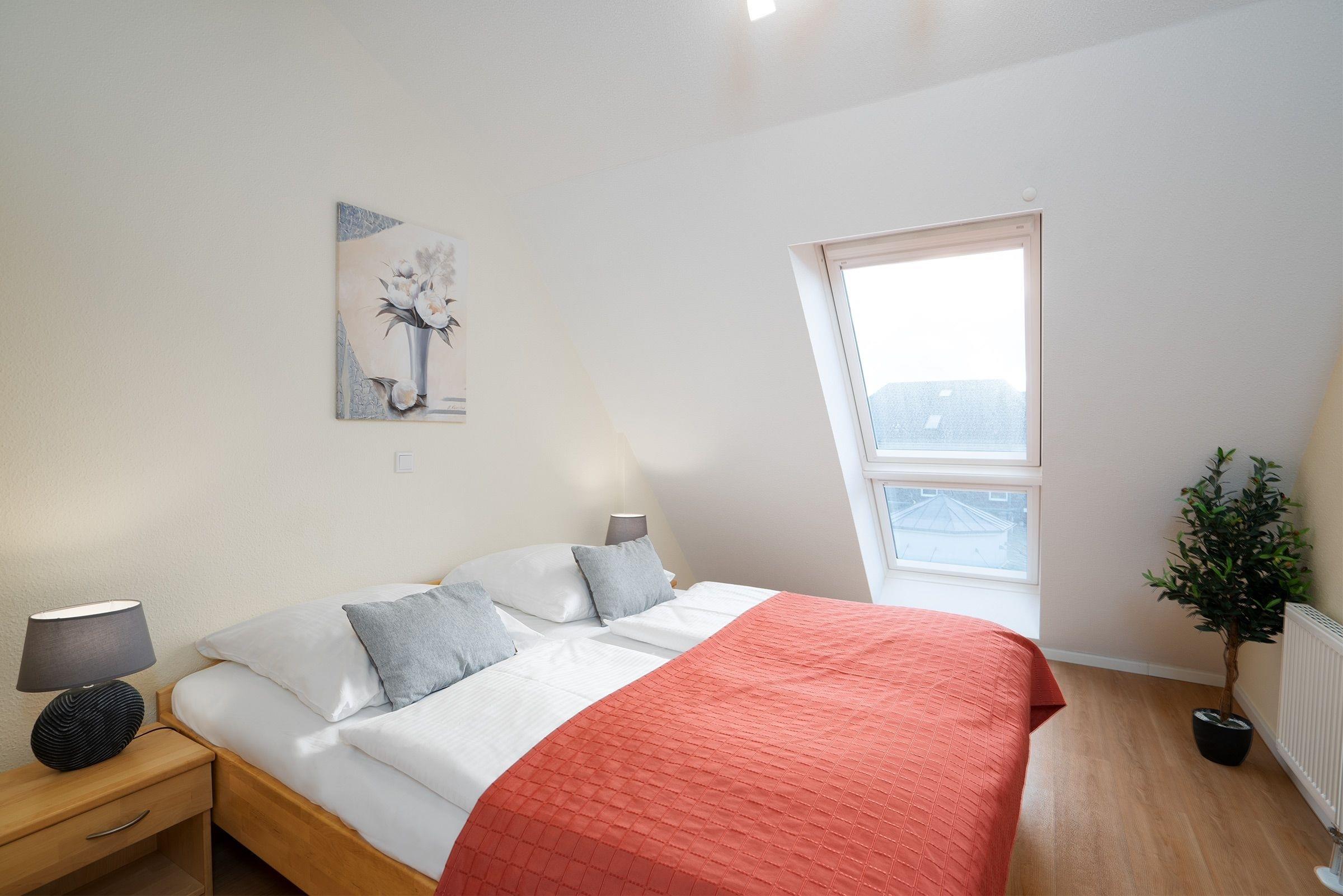 Neben einer gemütlichen Einrichtung überzeugt das Urlaubsdomizil durch einen großzügigen, möblierten Südbalkon. Das helle Wohnzimmer empfängt Sie mit einer gemütlichen Couchecke zum Entspannen. Der angrenzende Essbereich und die gut ausgestattete Küche bieten ausreichend Platz für gesellige Kochabende. Die beiden Schlafräume verfügen über jeweils ein Doppelbett (je 2x 90x200 cm) und einen großen Kleiderschrank für Ihre Urlaubsgarderobe. Zudem gibt es in einem der Schlafzimmer einen zusätzlichen Fernseher. In beiden Schlafzimmern kann man die Fenster mit Rollos verdunkeln für einen ungestörten Schlaf. Das geräumige Badezimmer verfügt über eine große, bodengleiche Dusche, ein WC und ein Waschbecken.