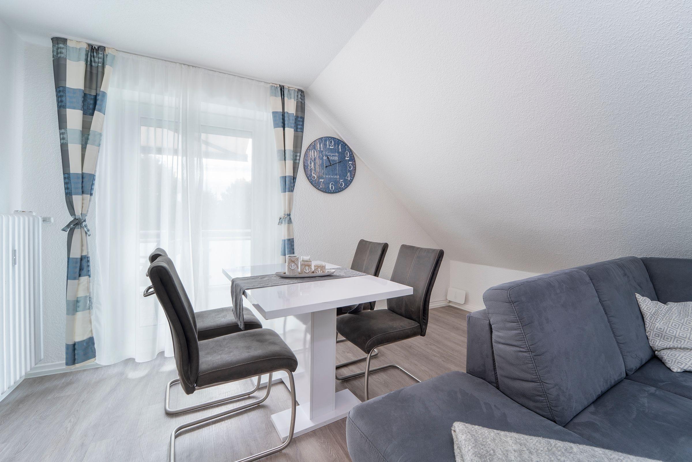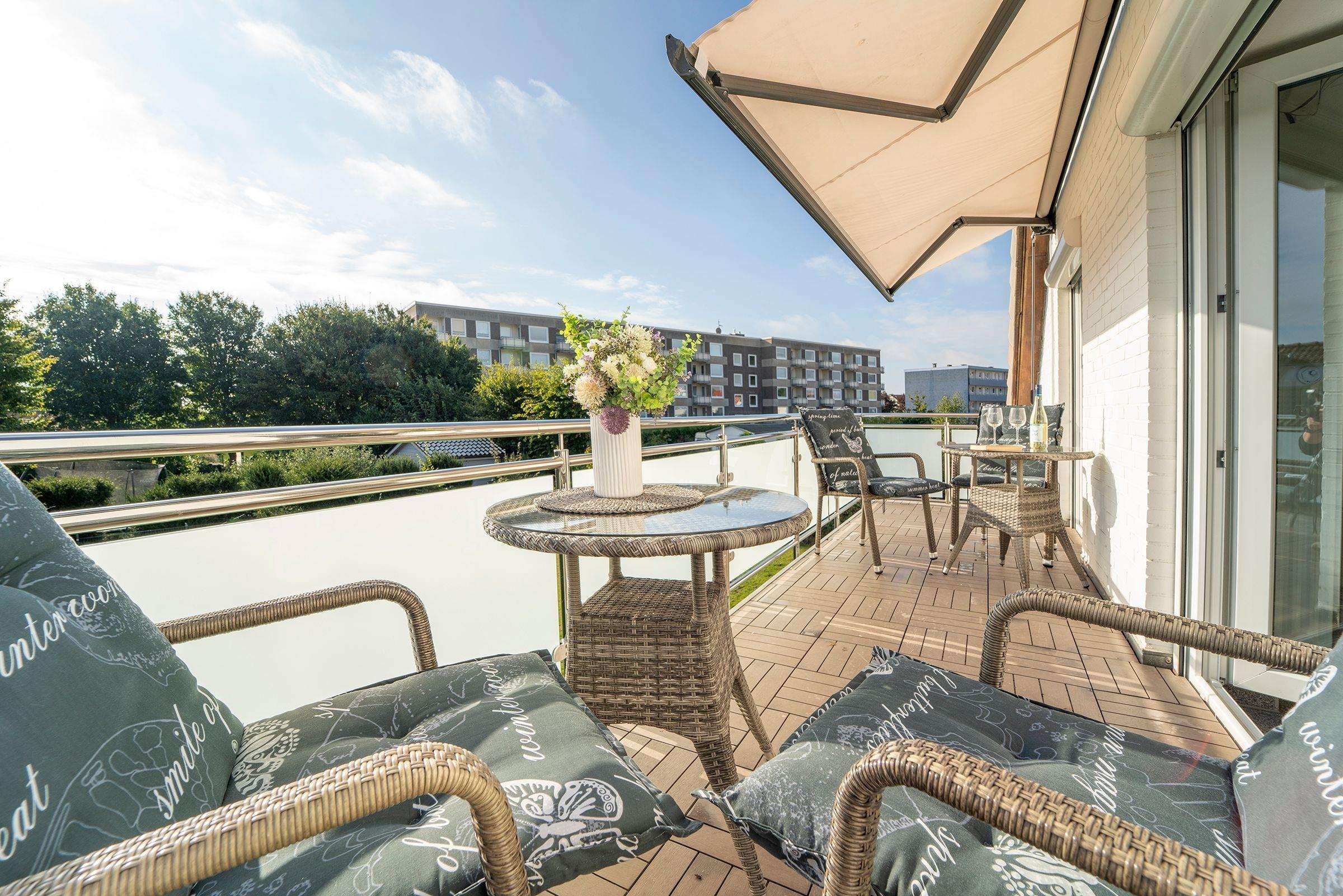 Gemütliche Ferienwohnung mit Balkon und Strandkorb in Grömitz, nur 350 m vom Ostseestrand entfernt.