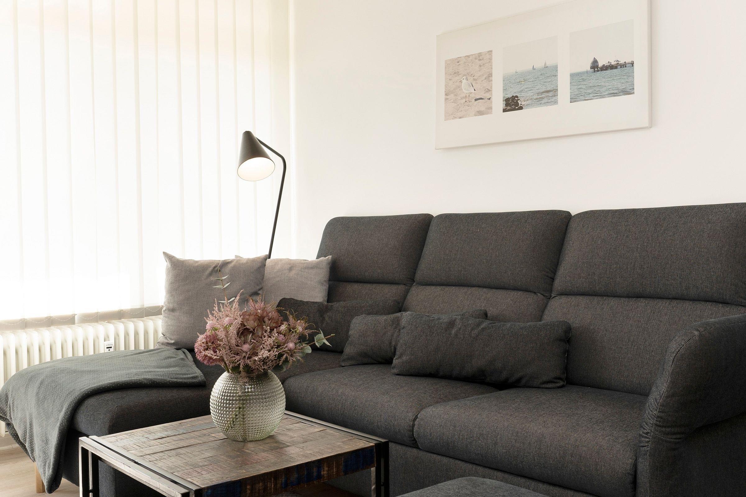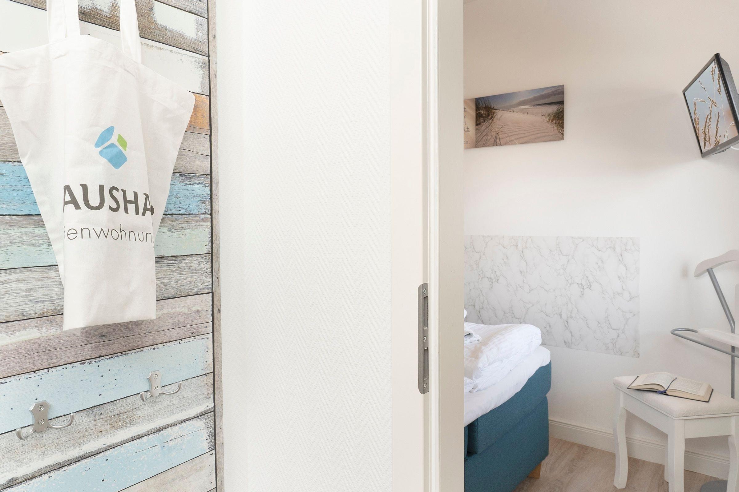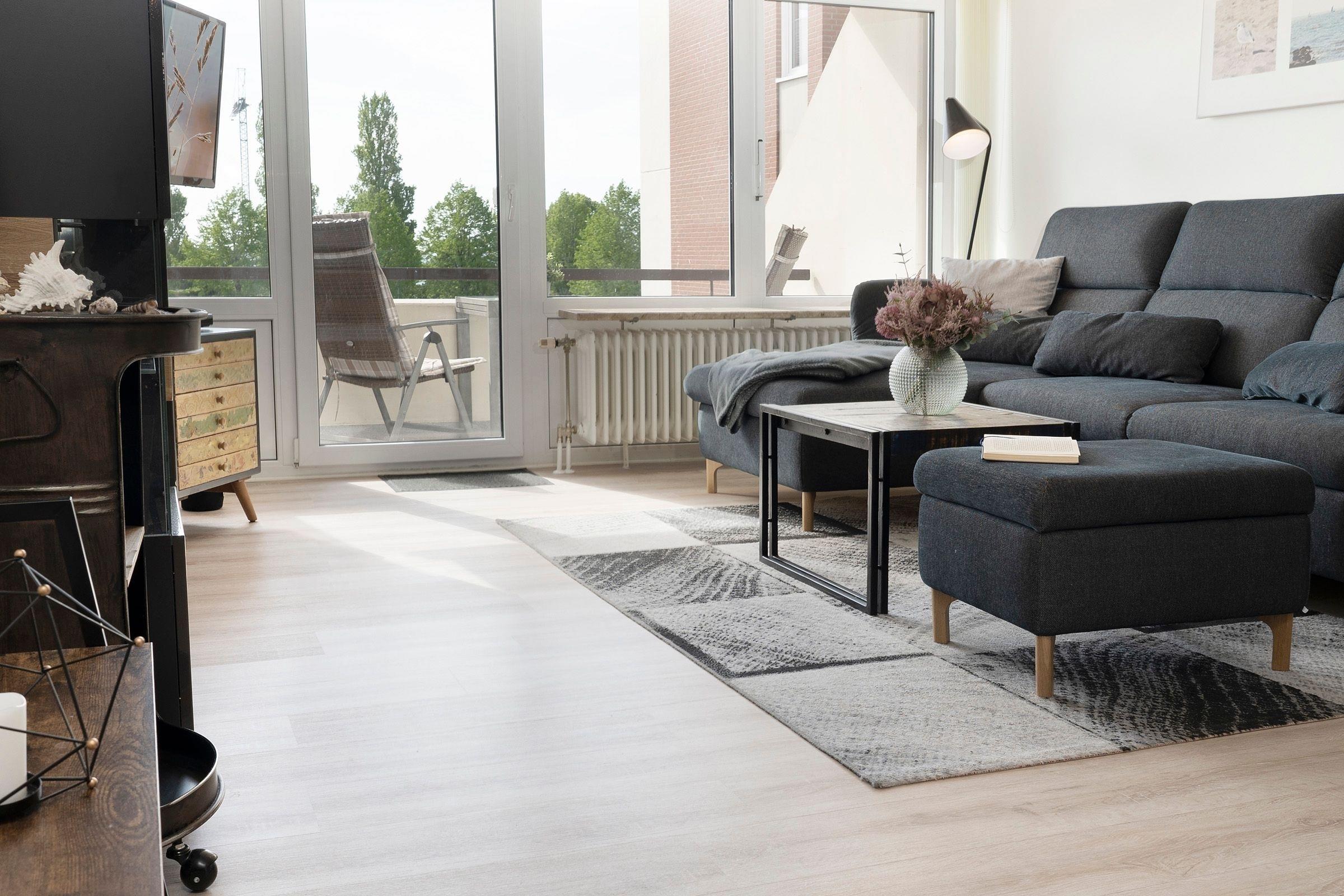 Der geschmackvolle Wohn- und Kochbereich empfängt Sie mit einer hochwertigen und individuellen Ausstattung. Hier können Sie sich eine Auszeit vom Alltag nehmen und auf dem bequemen Sofa abschalten. Dieses lässt sich bei Bedarf in eine gemütliche Schlafstätte (140 cm) für eine Person verwandeln. Hinter der großen, lichtbringenden Fensterfront befindet sich Ihr möblierter Balkon mit saisonal eingeschränktem Meerblick. Die moderne Küche mit Essplatz ist offen gestaltet und perfekt in den Wohnbereich integriert. Sie bietet alles, was Hobby-Koch-Herzen höher schlagen lässt -ein Ceranherd mit Backofen, Spülmaschine, Kühlschrank inkl. Gefrierfach, Mikrowelle, Kaffeemaschine und Senseo Padmaschine, Toaster und Wasserkocher. Bereiten Sie problemlos Ihre Mahlzeiten zu und genießen Sie gesellige Kochabende. Über einen kostenlosen WLAN-Anschluss streamen Sie Ihre Lieblingsmusik und bleiben mit Ihren Lieben daheim in Verbindung. In einem separaten Schlafzimmer lädt ein komfortables Boxspring-Bett (160x200cm, Einstieg von einer Seite und über Fußende) mit TV-Gerät und verdunkelnden Außenrollos zu erholsamen Nächten ein. Im Flur befindet sich ein geräumiger Kleiderschrank, in dem Ihre Urlaubsgarderobe ausreichend Platz findet.
