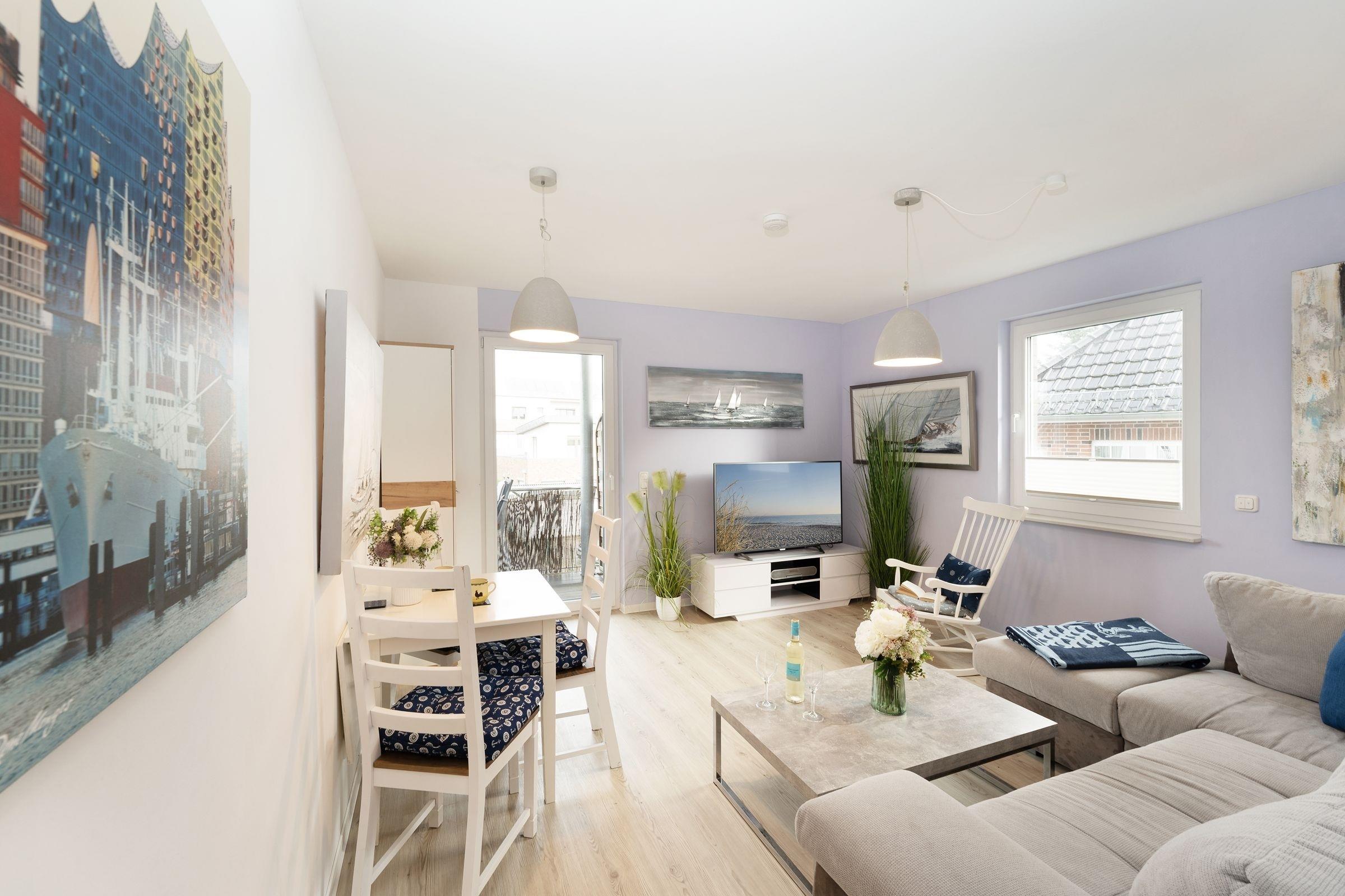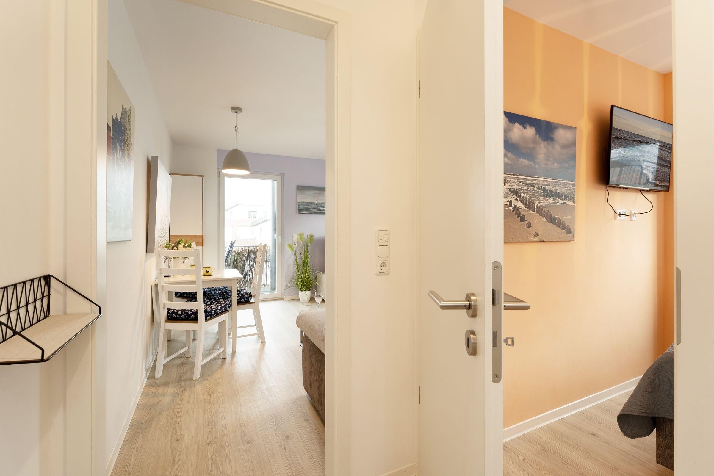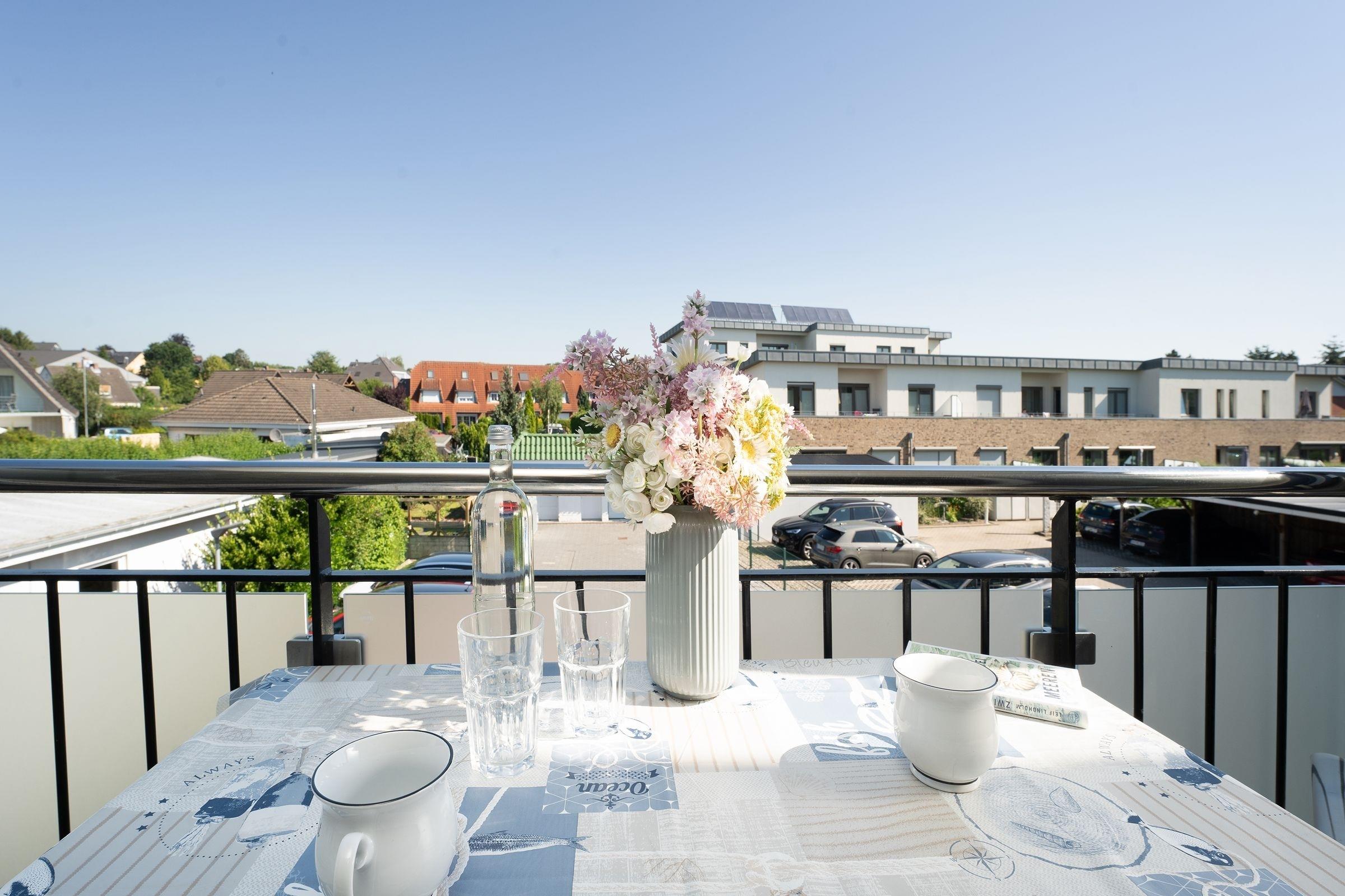 Moderne 2-Zimmer-Ferienwohnung mit Balkon nahe dem feinsandigen Grömitzer Strand, ideal für erholsame Urlaubstage.