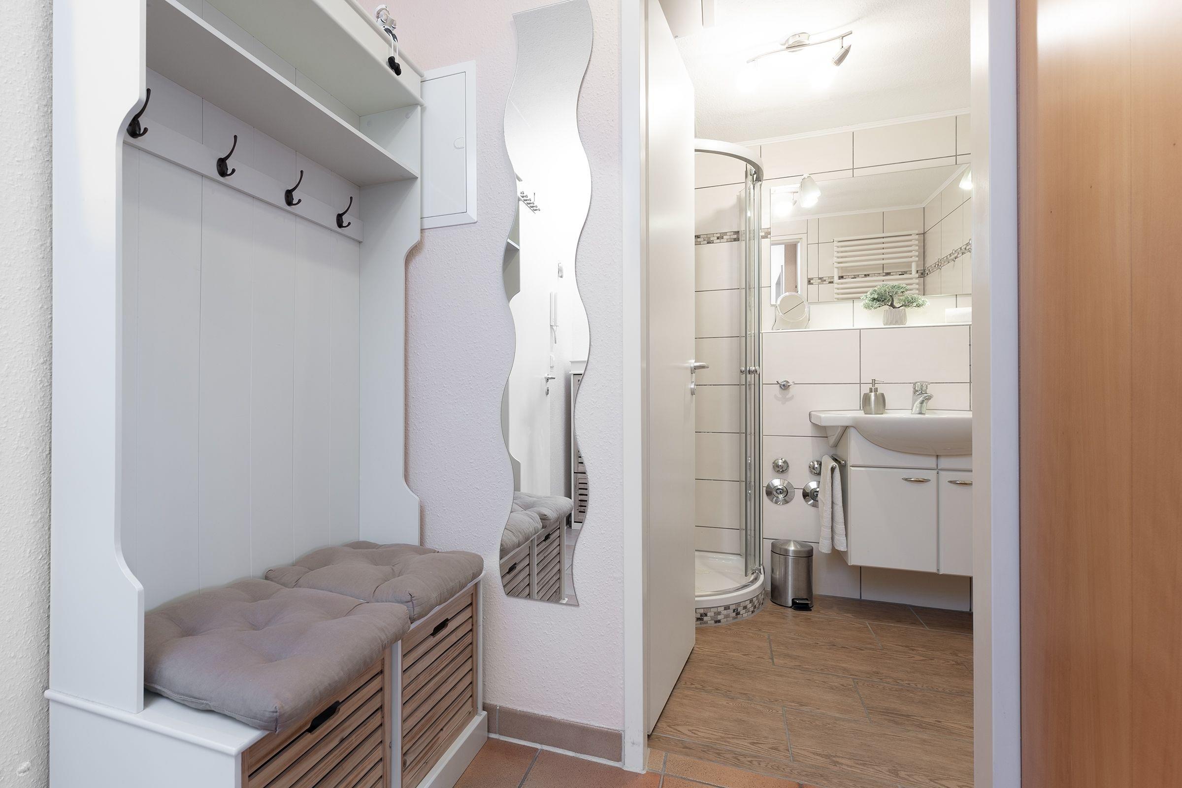 In der Anlage befindet sich ein Fahrstuhl, der Sie bequem in jede Etage bringt. Zur allgemeinen Nutzung stehen im Keller Waschmaschine und Trockner mit Münzbetrieb zur Verfügung. Die entsprechenden Münzen liegen kostenfrei für sie in der Wohnung bereit. Ein WLAN-Anschluss, sowie ein Kinderhochstuhl, Bettgitter und ein Kinderreisebett gehören hier ebenfalls zur Grundausstattung.
