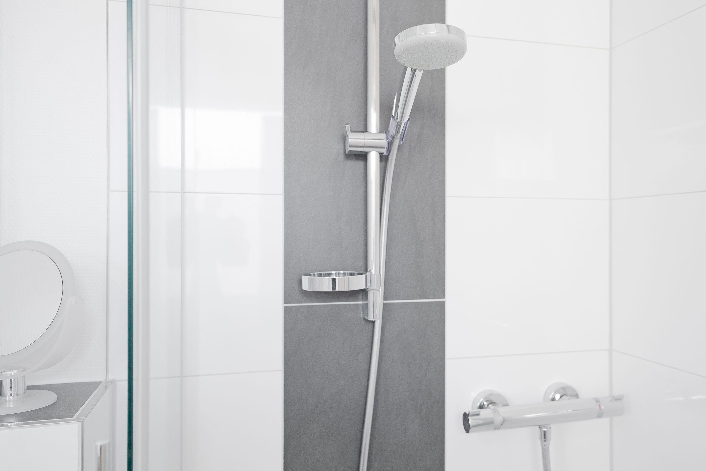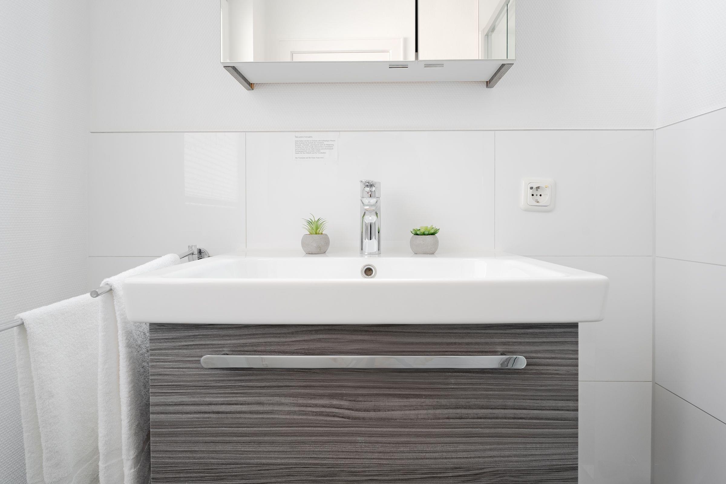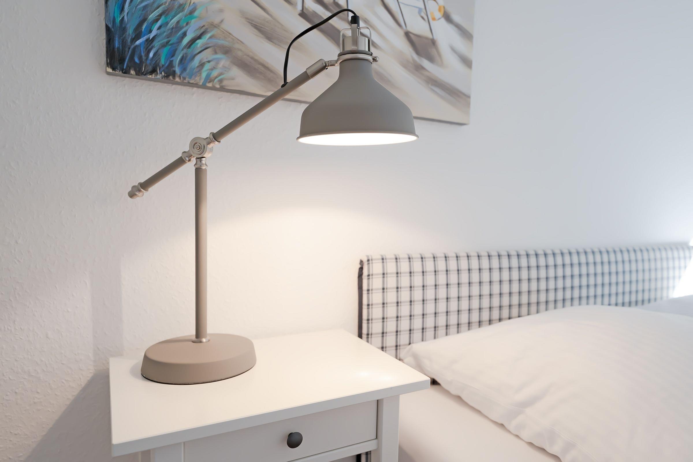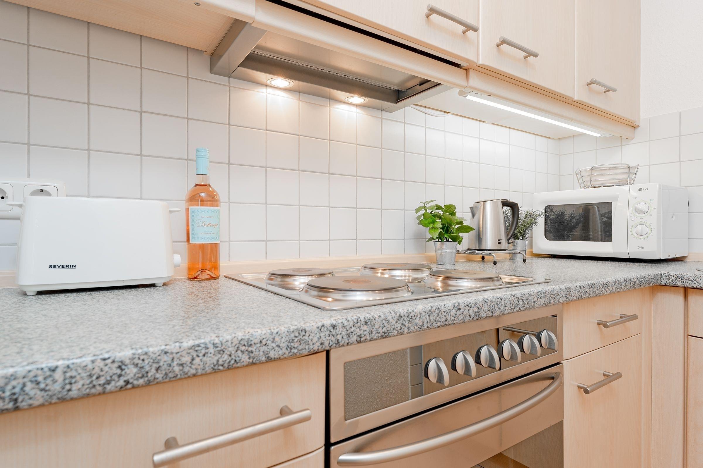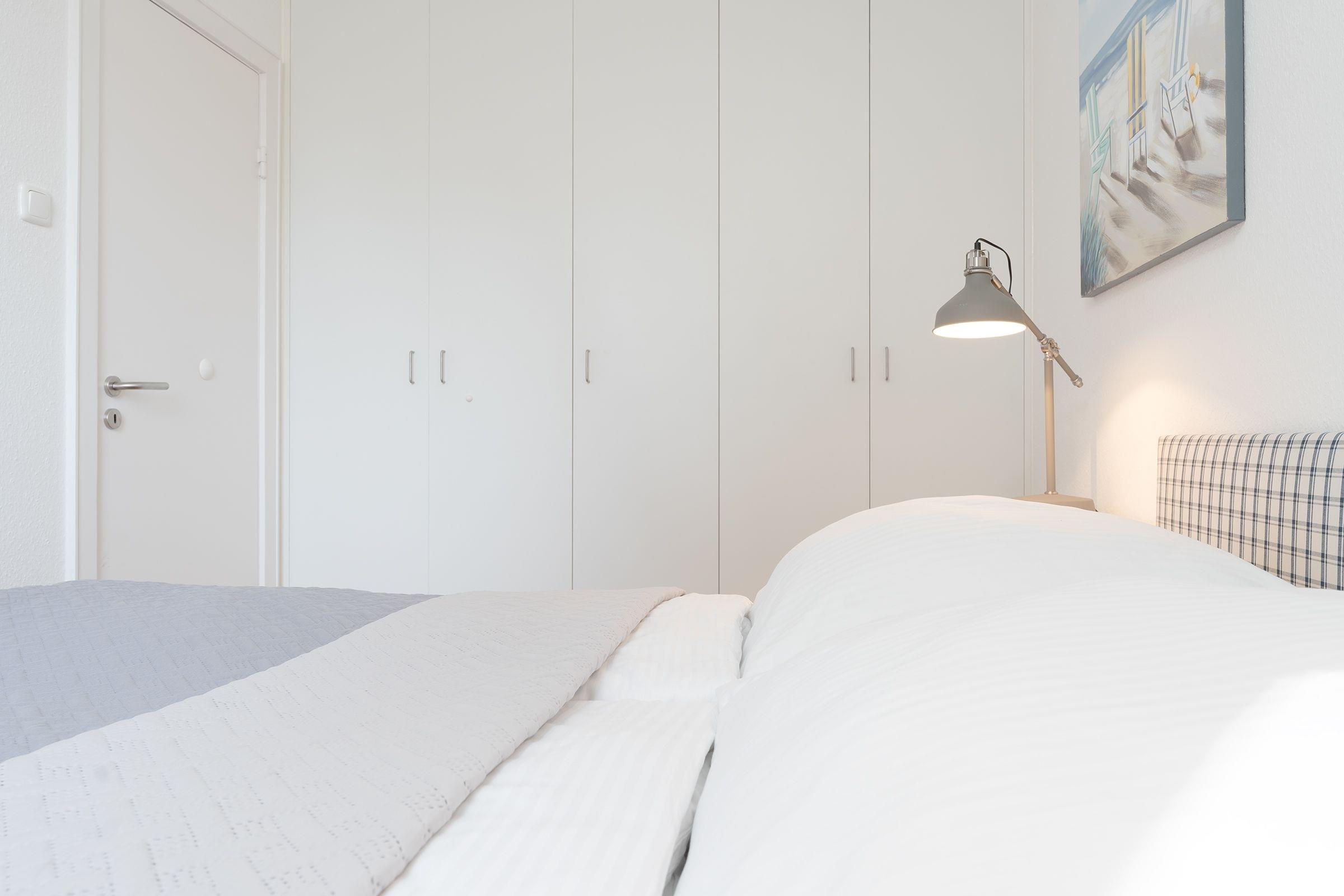 Hochwertige Möbel im modernen Landhaus-Stil strahlen maritime Gemütlichkeit aus. Lichtdurchflutet und hell begrüßt Sie der Wohnraum mit integriertem Essbereich und ausziehbarem Tisch. Zwei bequeme Sofas und ein Flachbild-TV sorgen nach langen Strandspaziergängen für Entspannung. Vom Wohnzimmer führt ein direkter Zugang auf den möblierten Balkon mit Westausrichtung und seitlichem Blick Richtung Ostsee. In der kleinen separaten Küche ist von der Mikrowelle, über den Backofen und den 4-Plattenherd alles vorhanden und die Spülmaschine erledigt den Abwasch. Das größere der beiden Schlafzimmer ist mit einem Doppelbett ausgestattet (2x 90x200 cm), hier sorgen Plissee-Rollos und Vorhänge für Verdunklung. Das zweite Schlafzimmer ist mit einem Etagenbett (je 90x195 cm), sowie einer Kommode für die Unterbringung der Feriengarderobe ausgestattet. Auch hier sorgen Plissee-Rollos für Verdunklung und erholsamen Schlaf. Im modernen und geschmackvollen Designbad kann man Dank Eckdusche, WC und Waschtisch mit Spiegel wunderbar in den Tag starten.