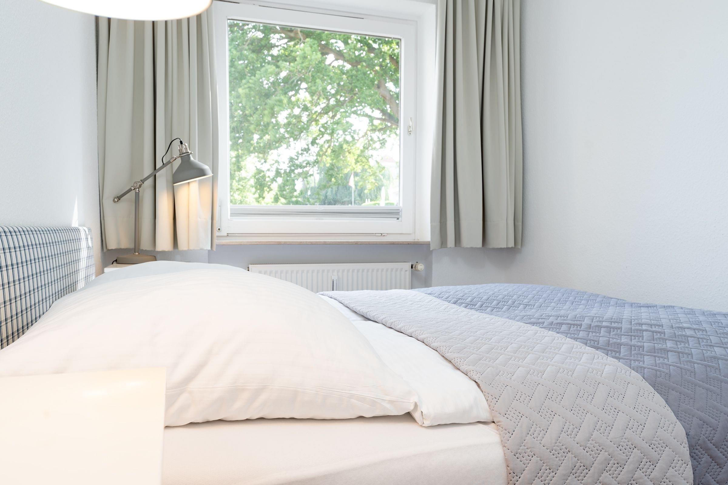 Schlafzimmer 1: 1 Doppelbett (2x 90x200 cm), Kleiderschrank, Verdunkelungsmöglichkeit