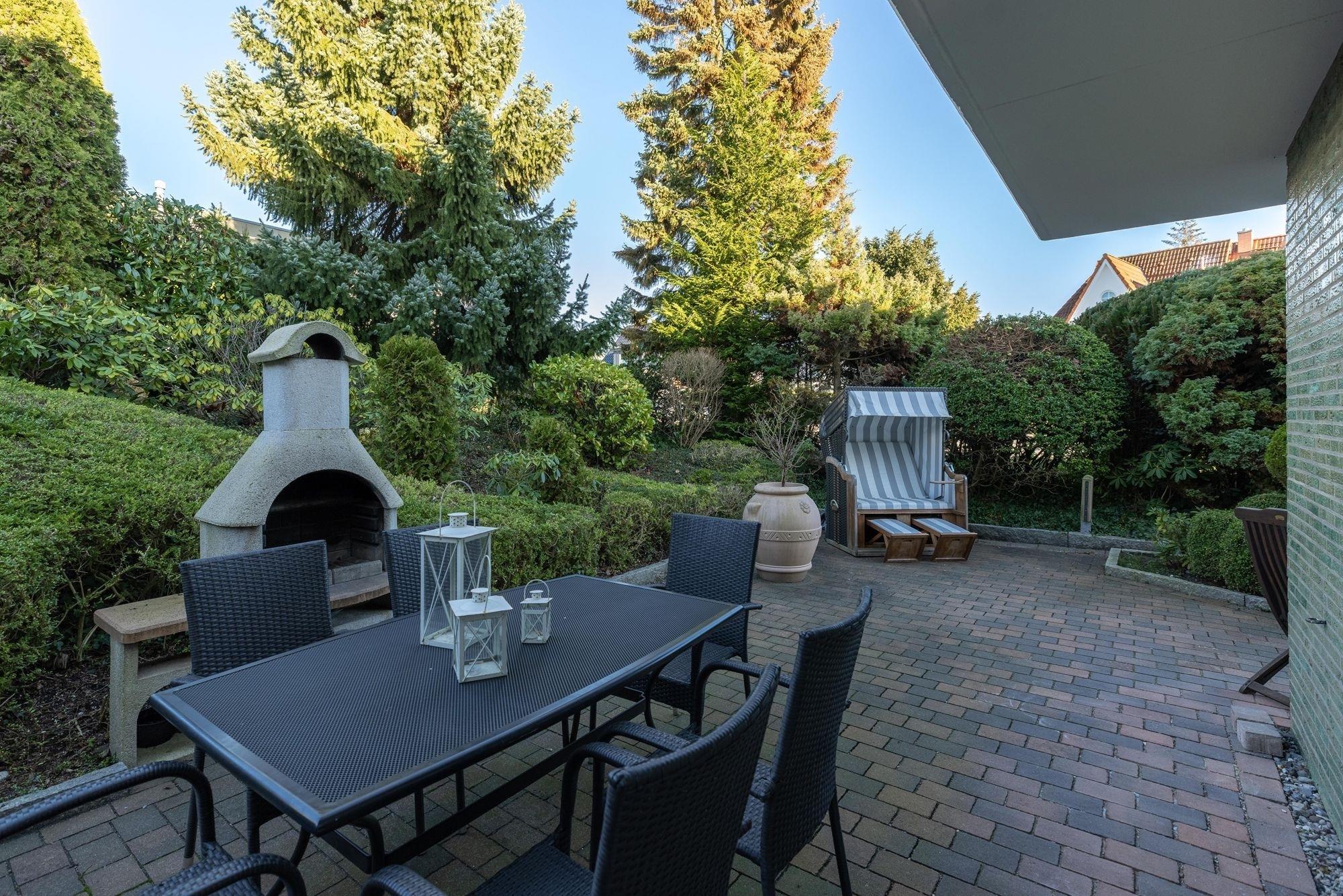Gemütliche Ferienwohnung in Grömitz mit Terrasse, Strandkorb und kinderfreundlicher Ausstattung.