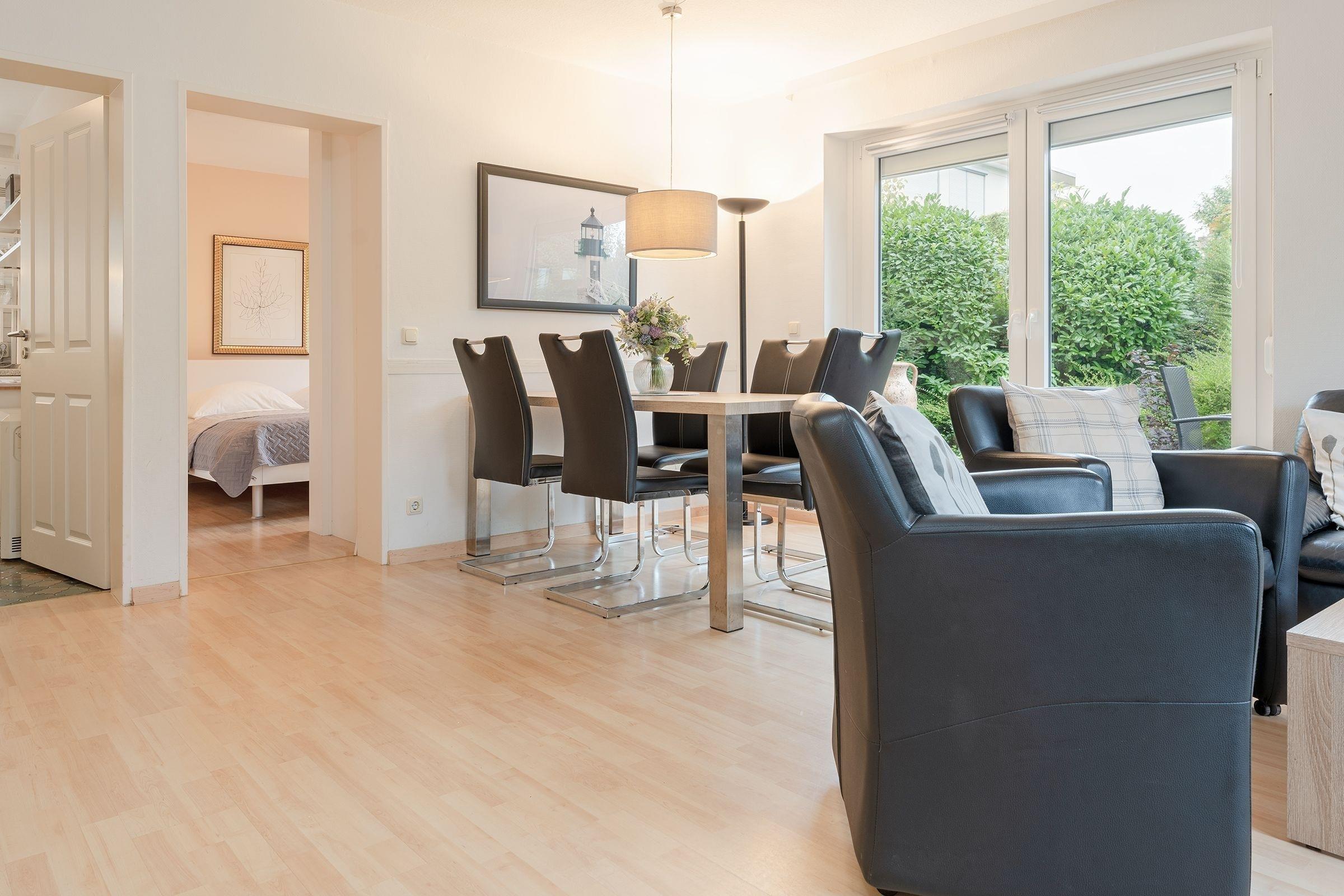 Die lichtdurchflutete 4-Zimmer-Ferienwohnung Familienkoje umfasst eine Wohnfläche von ca. 62 m² und bietet ausreichend Platz für bis zu 5 Personen. Die Wohnung befindet sich im Erdgeschoss einer kleinen Wohneinheit in einer verkehrsberuhigten Straße.
