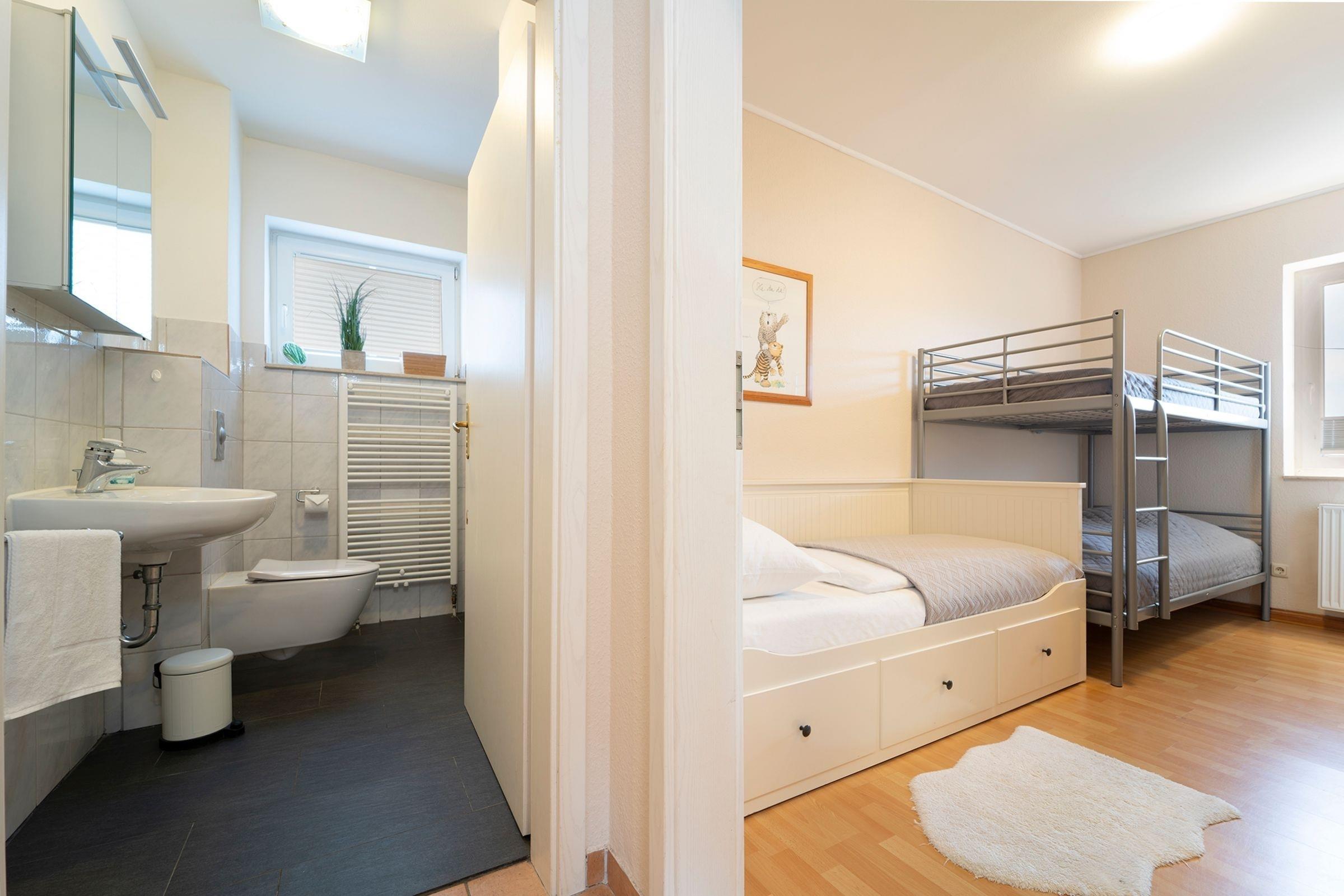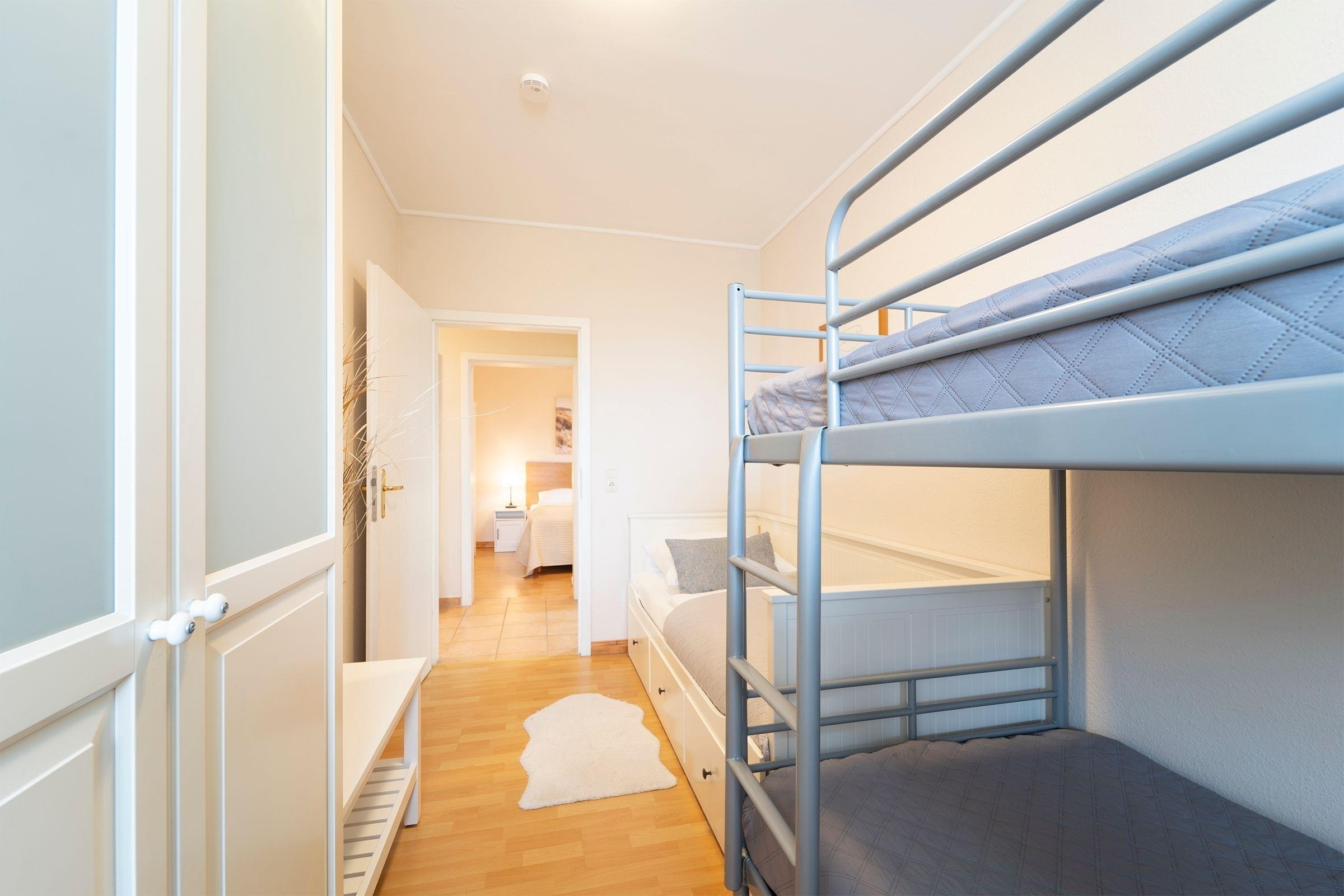 Schlafzimmer 2: 1 Etagenbett (2x 90x200 cm) und ein Einzelbett (90x200 cm)