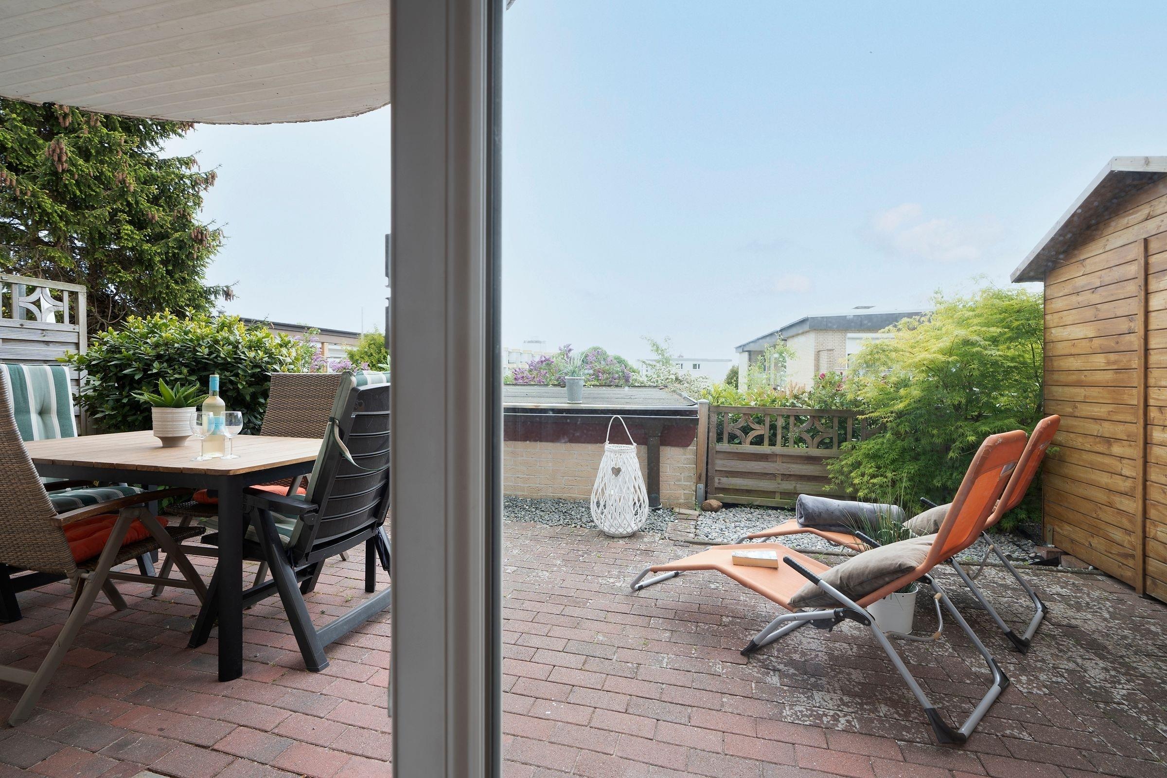 Gemütliche Ferienwohnung im Erdgeschoss in Grömitz, strandnah mit Terrasse, Fußbodenheizung und WLAN, ideal für Familien und Hunde.