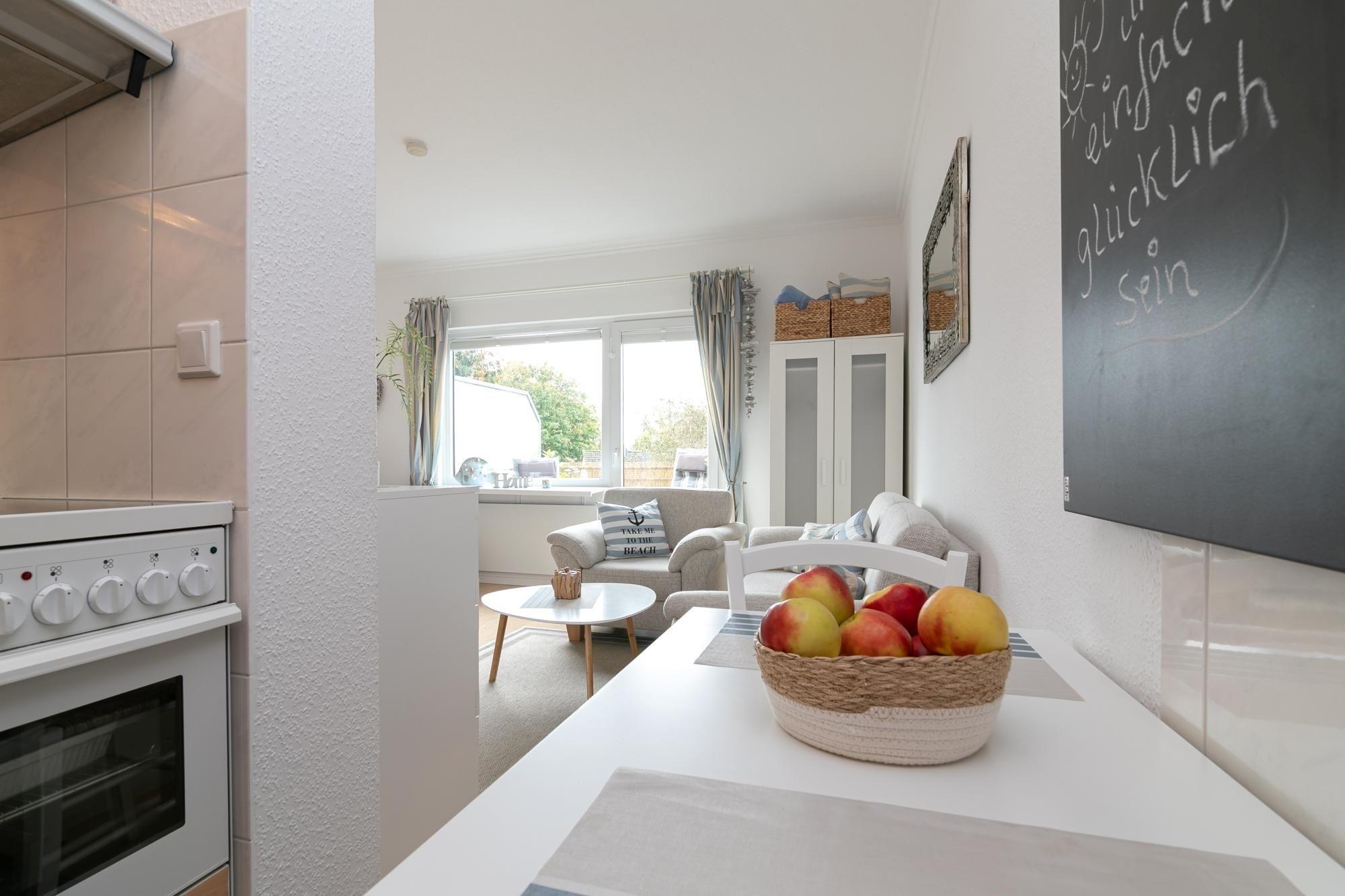 Von Ihrem Wohn-Schlafbereich mit Doppelbett (180x200 cm), Sofa, Sessel und Fernsehecke abgehend, befindet sich die angrenzende Küche (separat, jedoch mit offenem Zugang) die mit guter Ausstattung vom Ceranherd bis zur Spülmaschine begeistert. Vom Wohnbereich aus geht es direkt auf den möblierten Balkon, eine Markise schützt vor zu starker Sonneneinstrahlung. Starten Sie in den Tag in Ihrem freundlichen Duschbad. Ihr Feriendomizil ist durchgehend geschmackvoll ausgestattet und hat ein angenehmes Wohnambiente.