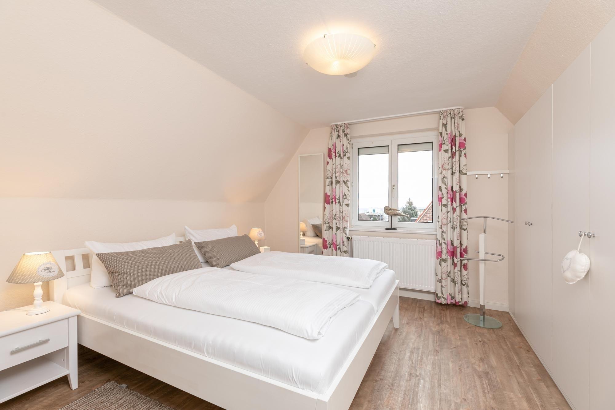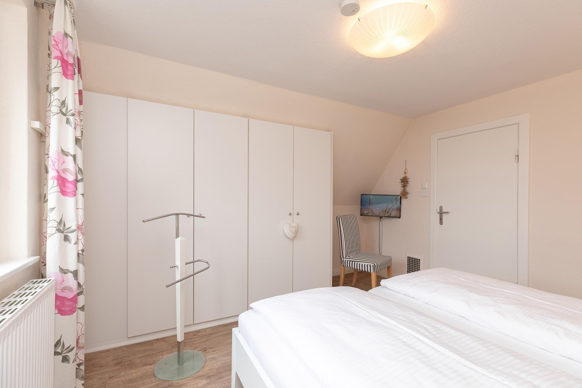 Schlafzimmer 1: 1 Doppelbett (180x200 cm), TV, Kleiderschrank, Verdunkelung (Außenrolllade)