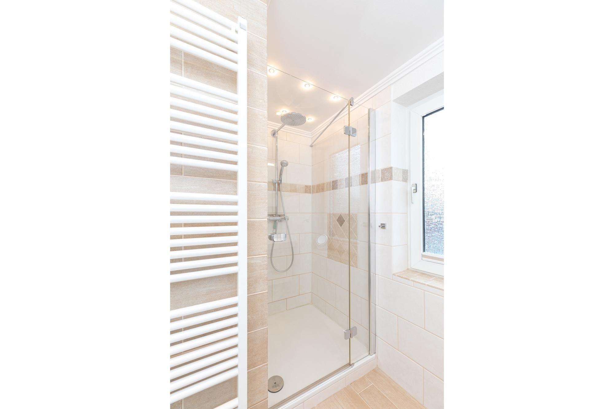 Neben dem Badezimmer mit bodentiefer Dusche, Fußbodenheizung und beheizbarem Handtuchhalter verfügt diese Wohnung über ein Gäste-WC was für reichlich Komfort sorgt. Im Wohn-/Esszimmer mit Sofalandschaft und Kamin sind kuschlige Abende bei jedem Wetter garantiert. TV, CD- und DVD-Player stehen hier selbstverständlich zur Verfügung.