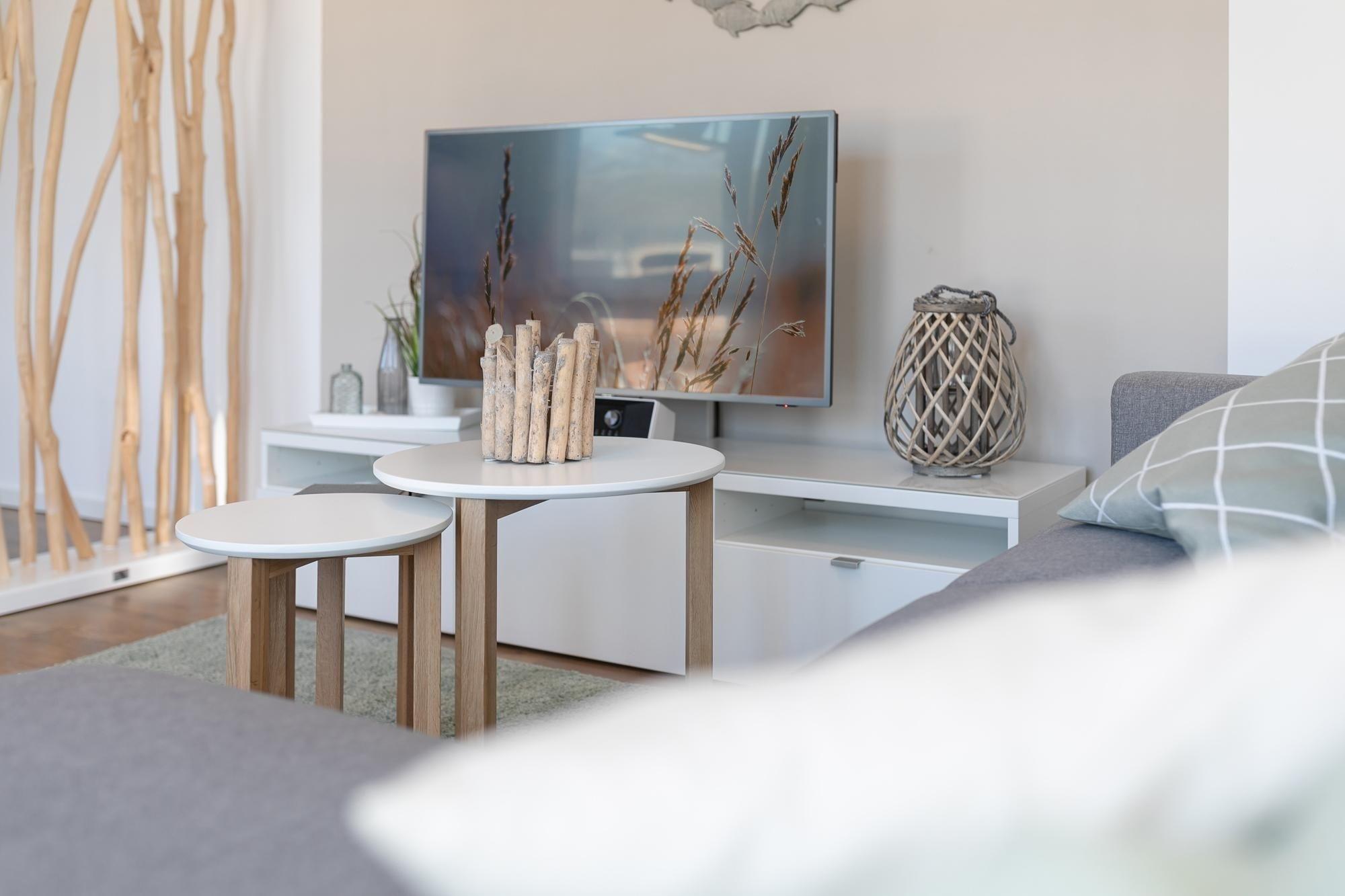 Für 4 Personen stehen hier 45 m² zur Verfügung. Dieses Ferienappartement liegt in der 1. Etage und hat ein Schlafzimmer mit Doppelbett (180x200cm) und TV und ein Wohn-/Schlafzimmer mit Schlafcouch (140x200 cm) und Philipps 4K TV mit Ambilight und kostenfreiem Netflix-Zugang. Außerdem stehen zur Unterhaltung ein Radio mit Internetzugang und Bluetoothfunktion und natürlich WLAN zur Verfügung. Und auch die im Wohnraum integrierte Küche lässt keine Wünsche offen. Spülmaschine, Wasserkocher, Kühlschrank mit Gefrierfach und sogar eine kombinierte Senseo Kaffeepad-/Filtermaschine stehen bereit. Das Badezimmer mit bodentiefer Dusche, Handtuchheizung und Fußbodenheizung vervollständigt diese schöne Wohnung.