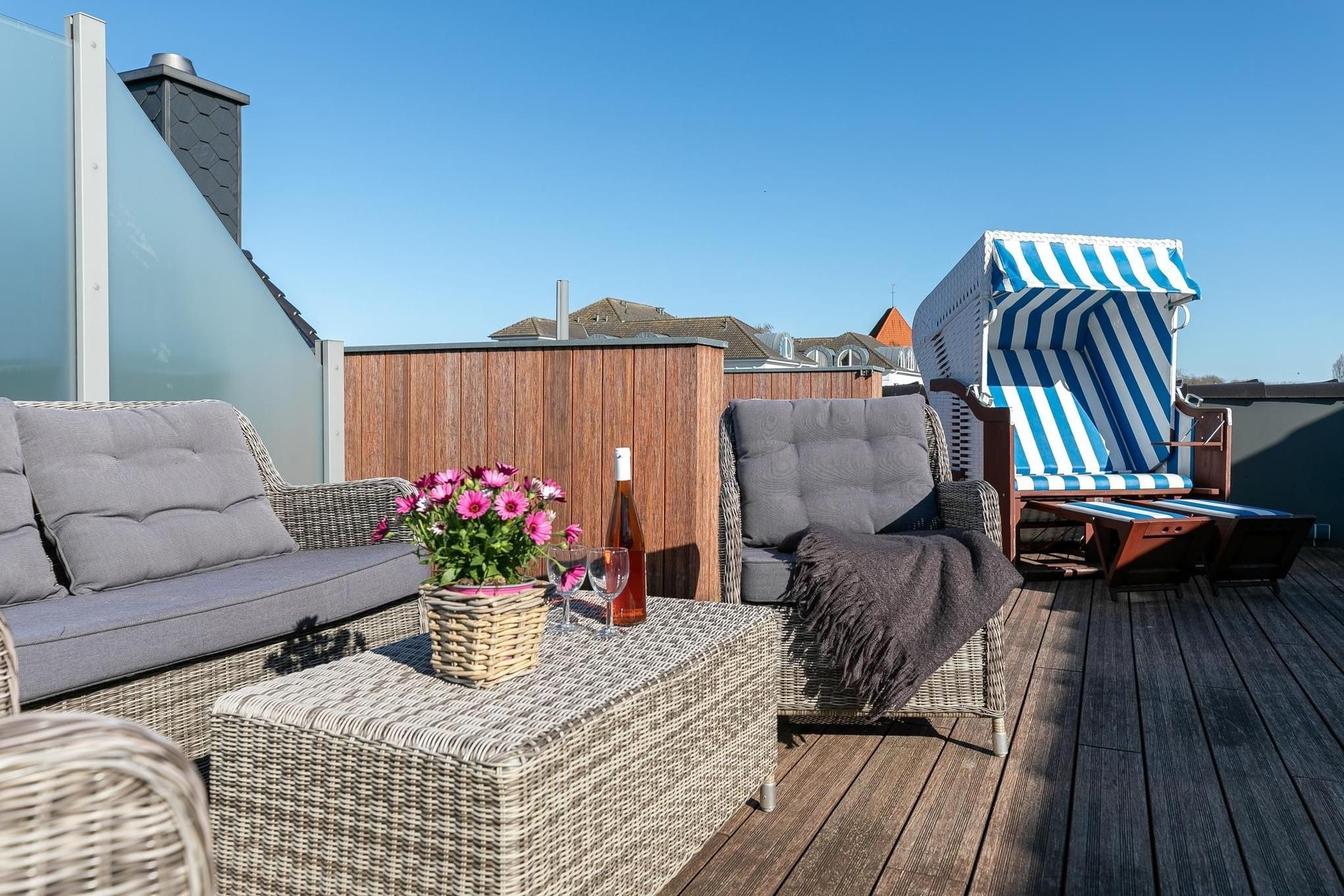 Exklusive Maisonette-Ferienwohnung mit Dachterrasse und Balkon nahe Strand in Grömitz.