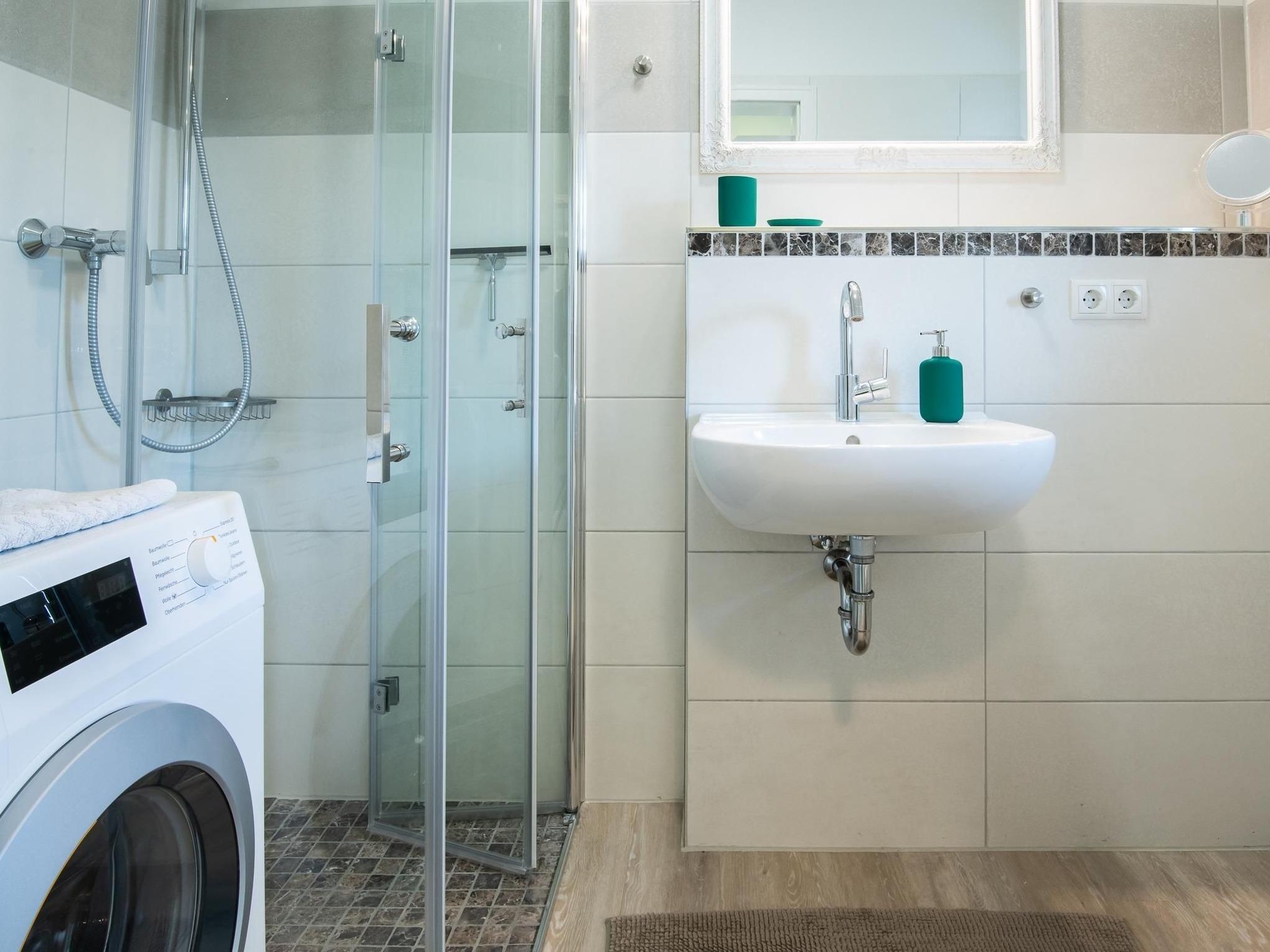 1. OG: Das helle Entrée ist mit Garderobenhaken und Spiegel ausgestattet. Der Flur führt linkerhand in eines der Schlafzimmer im modernen Landhausstil mit Doppelbett (2x 90x200 cm), Kommode und begehbarer Kammer zur Unterbringung Ihrer Ferienkleidung. Rechterhand befindet sich ein stilvolles Designbad mit Annehmlichkeiten wie bodentiefer Eckdusche, Waschmaschine und Fußbodenheizung. Der kombinierte Wohn- und Essbereich wurde mit sehr viel Gespür für Stil und Wohlfühlatmosphäre gestaltet. Die traumhafte Küchenecke überzeugt u.a. mit Ausstattungsmerkmalen wie einem großen Kühlschrank mit Gefrierfach, Spülmaschine, Mikrowelle, Backofen und 4-Platten Cerankochfeld. Der Essbereich direkt am Fenster bietet einen wunderbaren Panoramablick über die Dächer von Grömitz. Machen Sie es sich in der komfortablen Sofaecke mit Sofa, Sesseln und großem, wertigen Flat-TV, sowie Blu-Ray-Player bequem. Das gesamte Domizil ist nach Süden hin ausgerichtet, es ist daher lichtdurchflutet und hell und sorgt rundum für ein gutes Wohngefühl! Dazu trägt auch die angenehme Fußbodenheizung bei. Vom Wohnbereich aus treten Sie direkt auf Ihren großzügigen Balkon und genießen von hier einen saisonalen Ostsee-Fernblick. Der erste Kaffee am Morgen, ein guter Tropfen um abends den Tag ausklingen zu lassen - dieser Balkon sorgt zu jeder Tageszeit für gute Laune. Urlauben auf hohem Niveau mit einer Prise frischer Ostseeluft und zahlreichen Sonnenstunden!